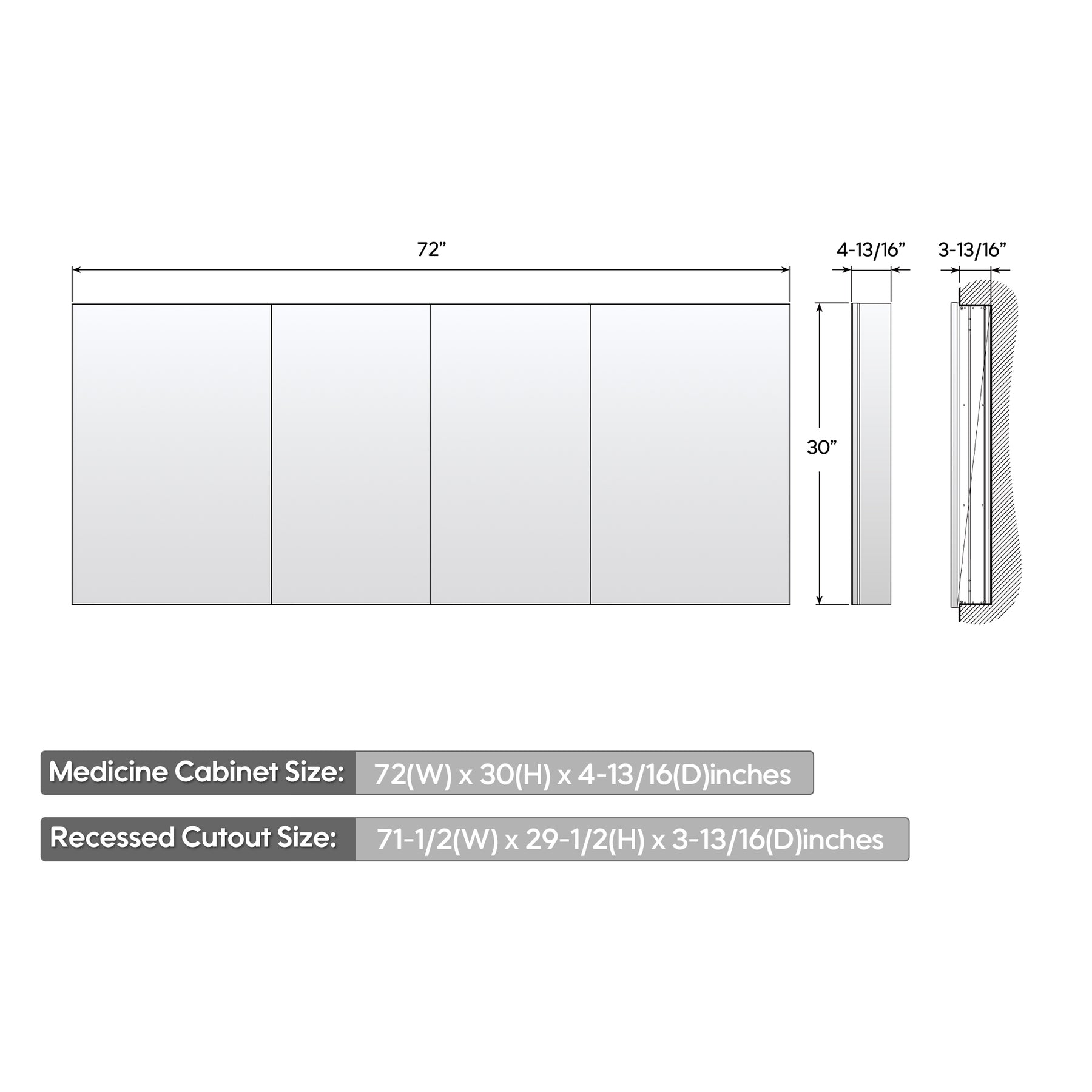 Cabinet Dimensions: 72" W x 4 13/16" D x 30" H;