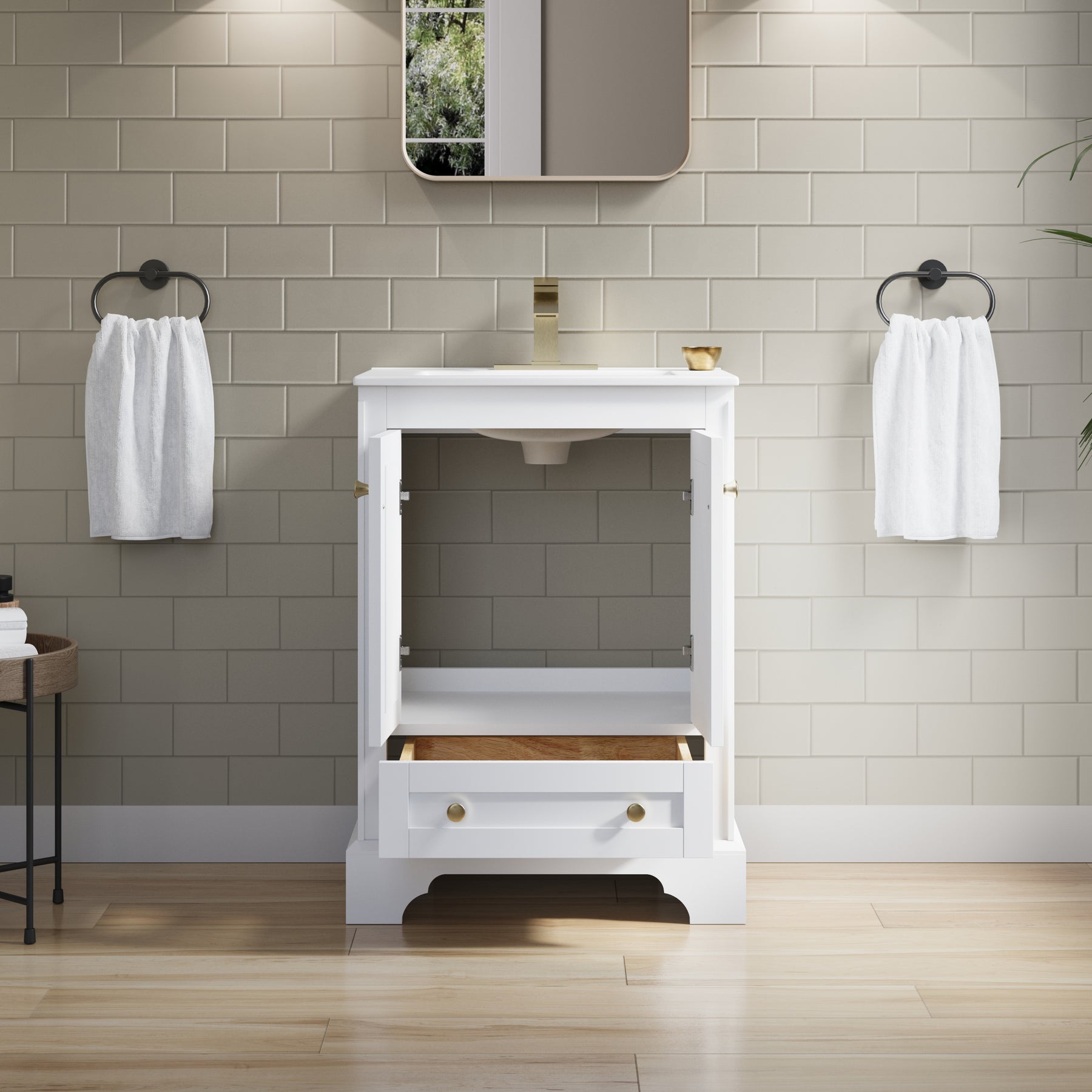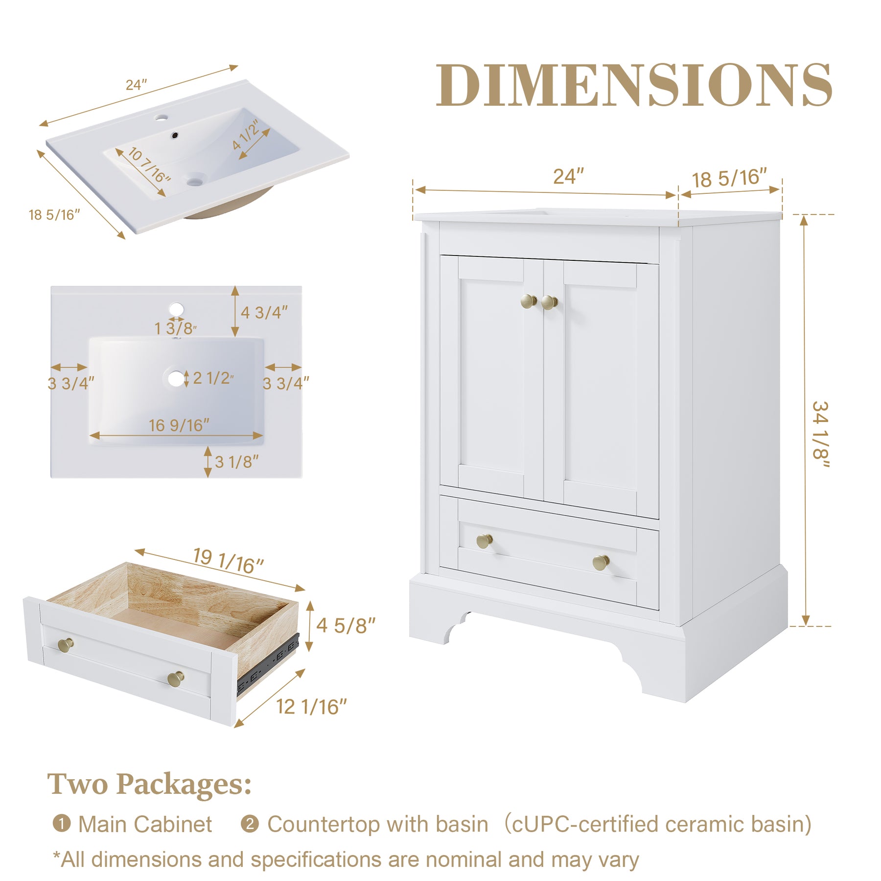 - Versatile and Functional: This 24-inch white bathroom vanity set fits beautifully in both small and large bathrooms. Its compact footprint and smart storage layout help you make the most of limited space, while the generous storage capacity and elegant design also make it a stylish choice for spacious bathrooms.