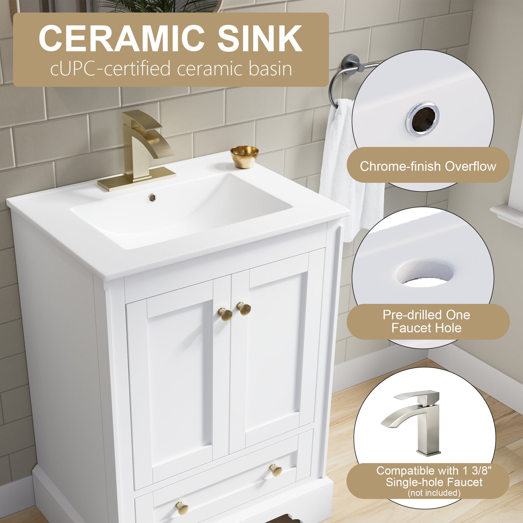 - Upgrade Ceramic Material Basin: Our bathroom vanity with sink include a premium cUPC-certified ceramic basin for easy maintenance and lasting shine. Features pre-drilled faucet hole and a drain hole, making it easy to install your faucet and drainage system.