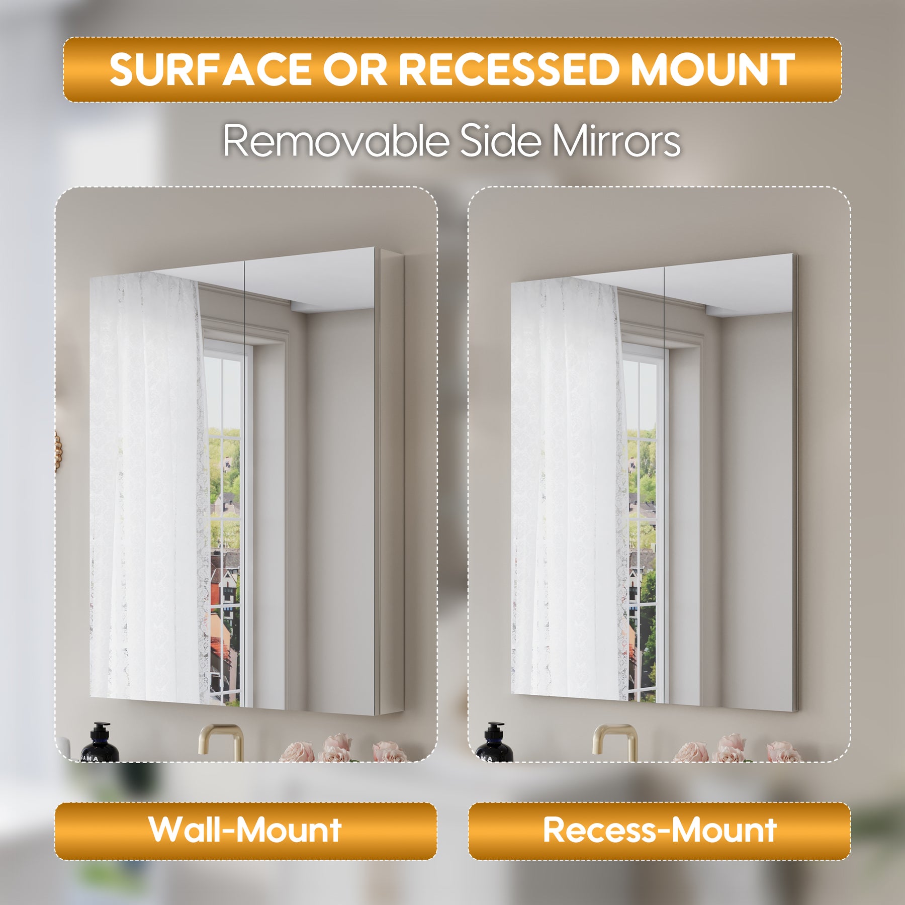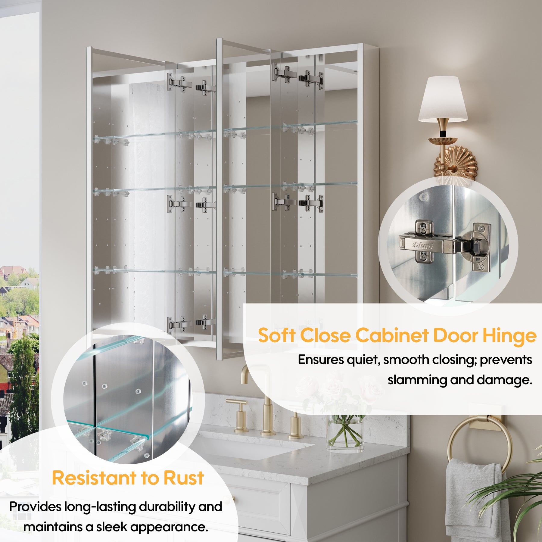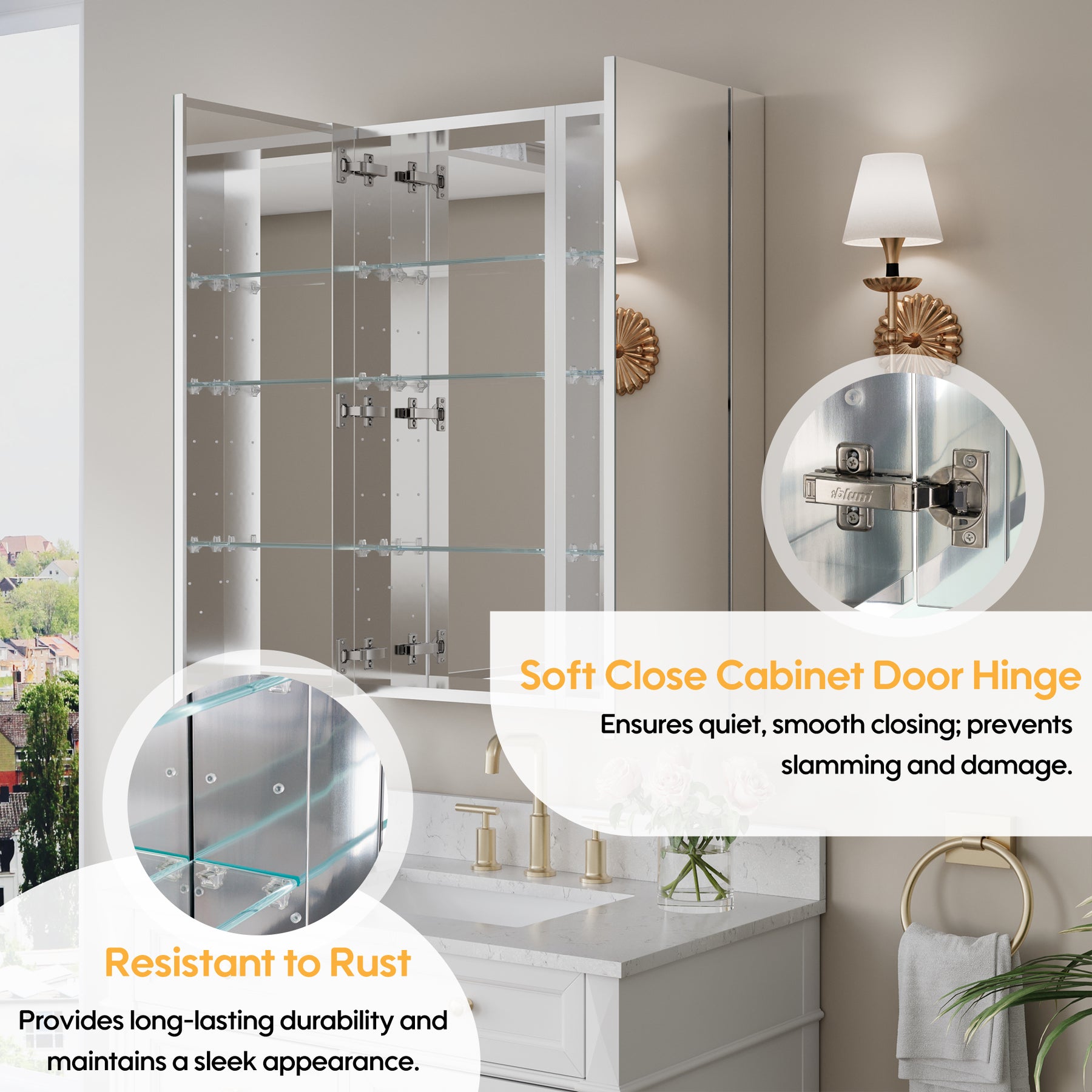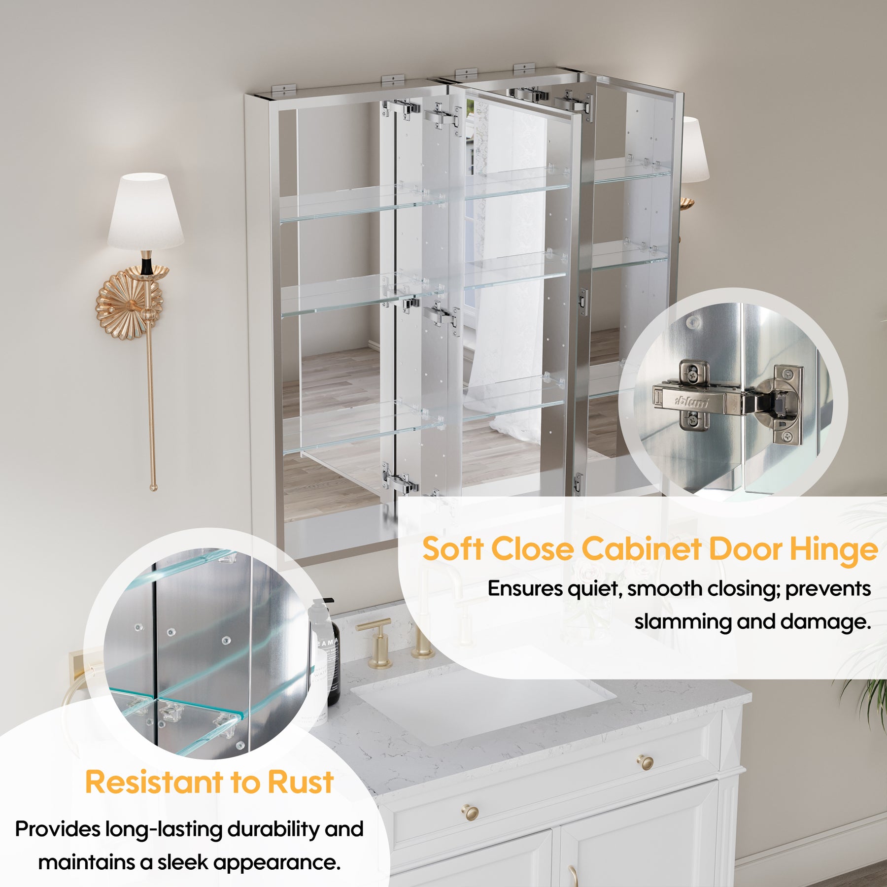 - Reversible Door Design: Copper-free tri-view mirror cabinet with 180° reversible installation, allowing the door to open from either the left or right side for flexible bathroom layouts.