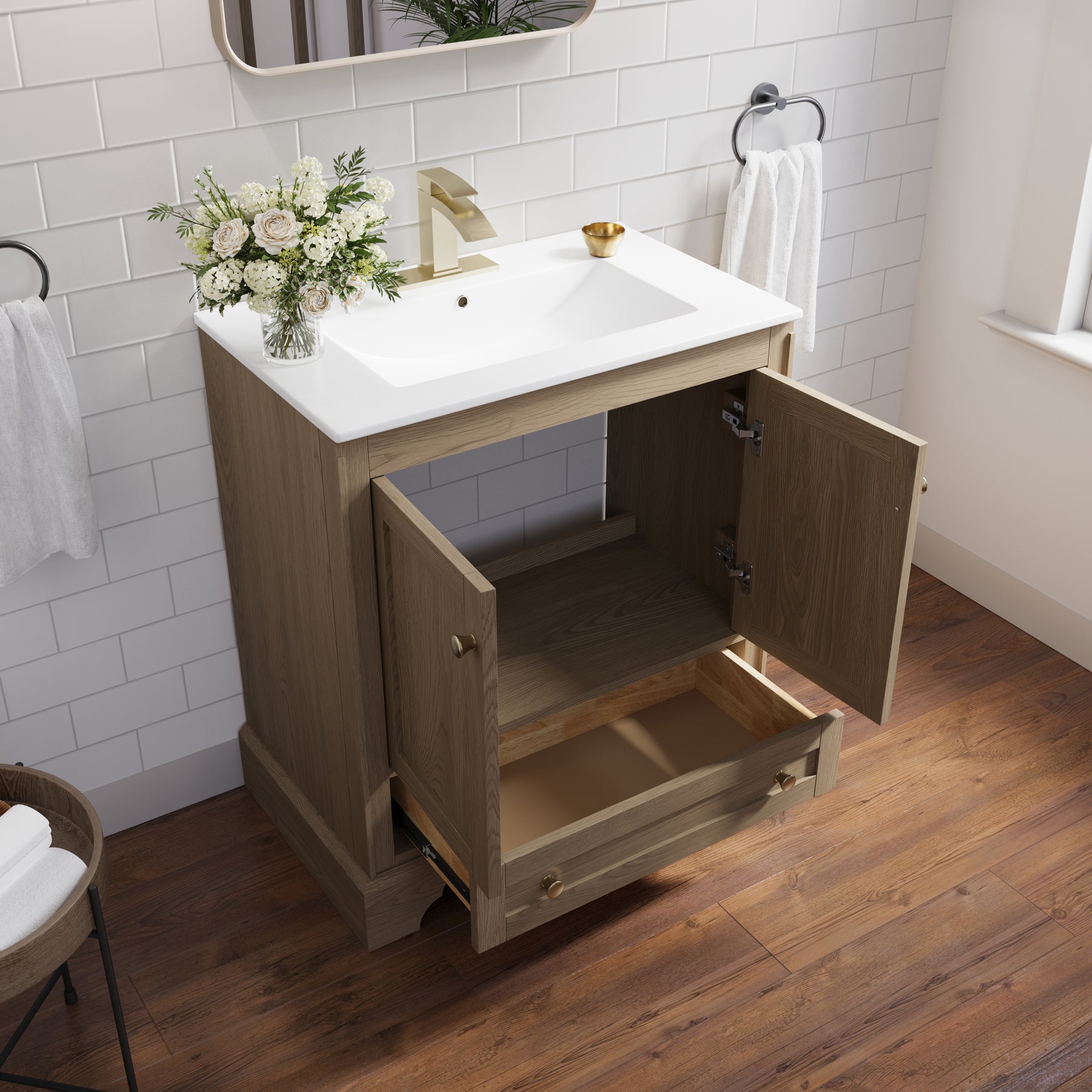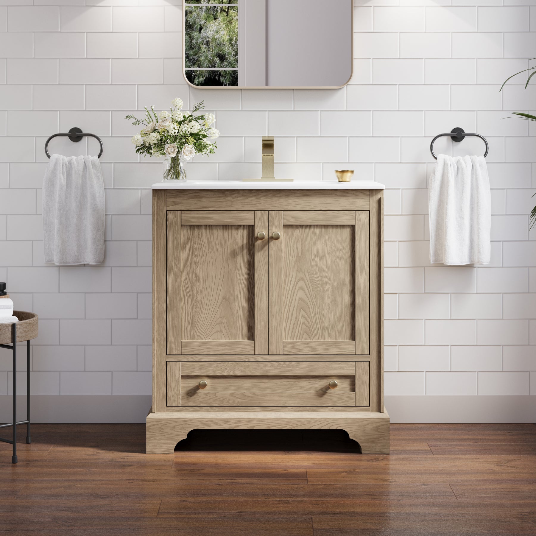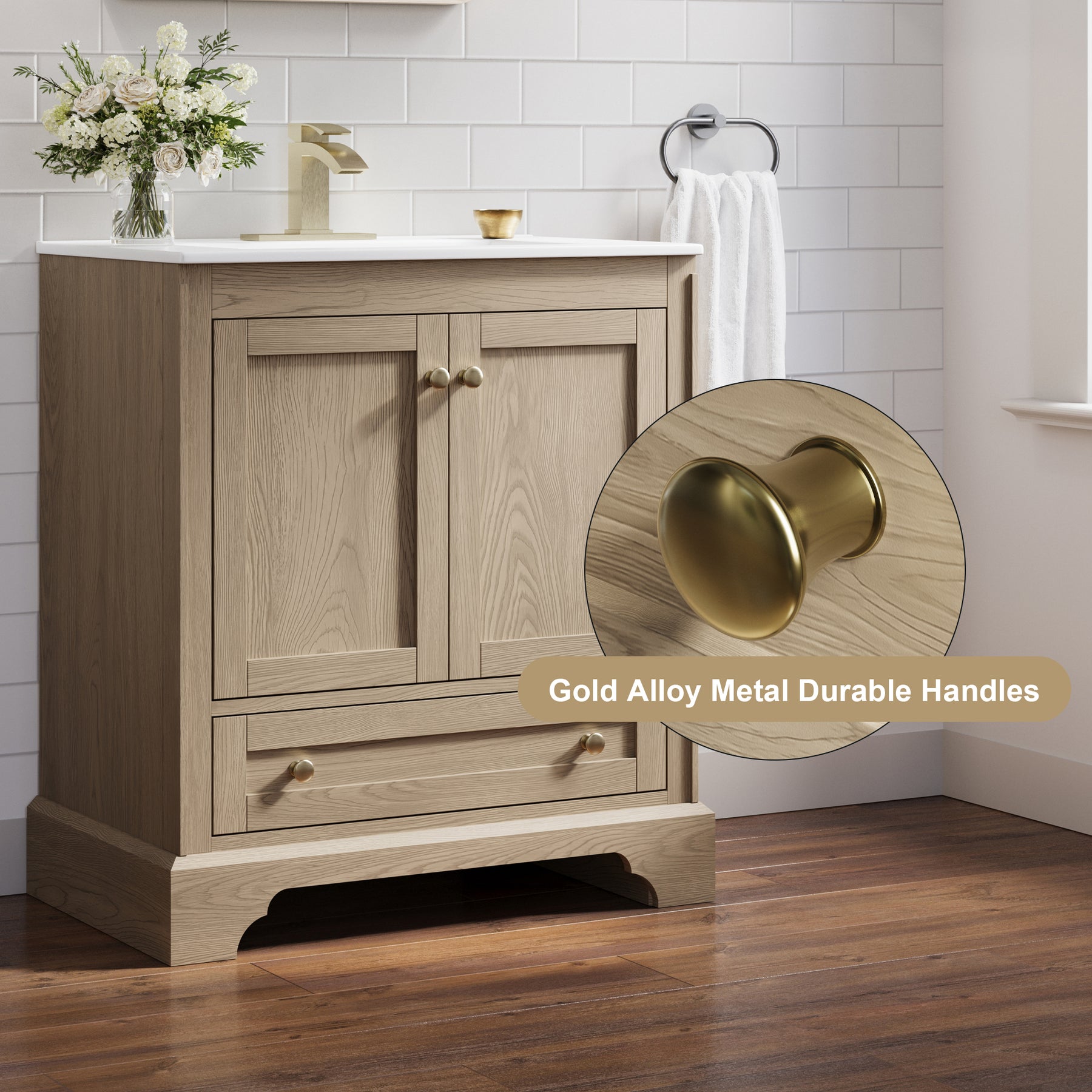 - Versatile and Functional: This 30-inch oak bathroom vanity set fits beautifully in both small and large bathrooms. Its compact footprint and smart storage layout help you make the most of limited space, while the generous storage capacity and elegant design also make it a stylish choice for spacious bathrooms.