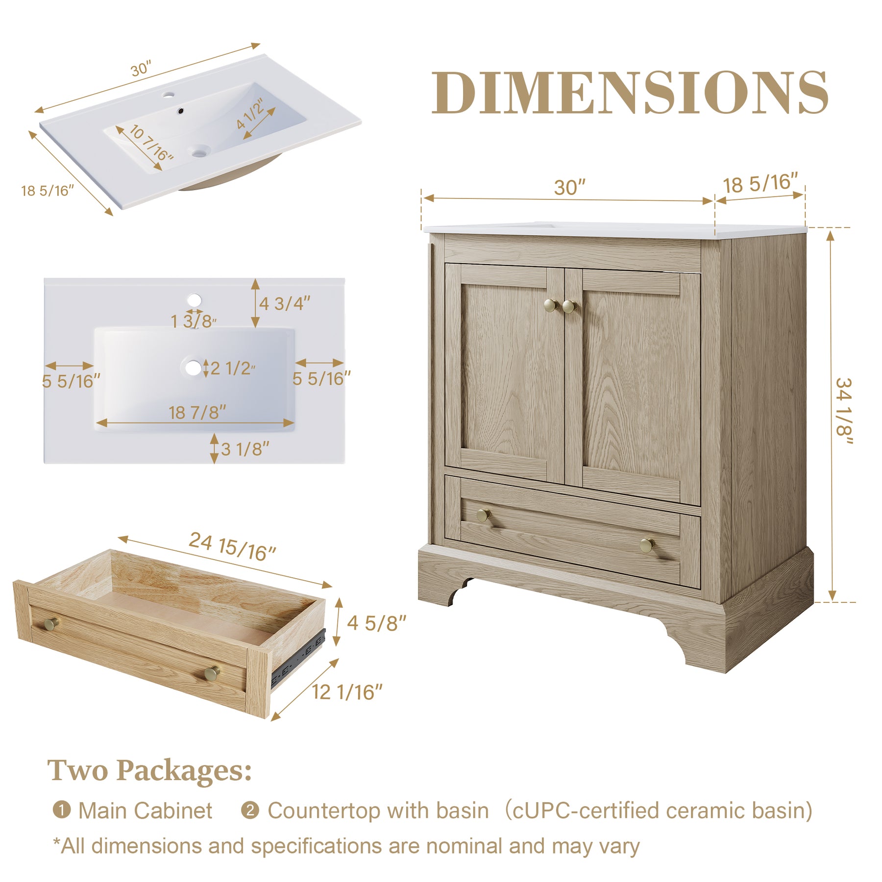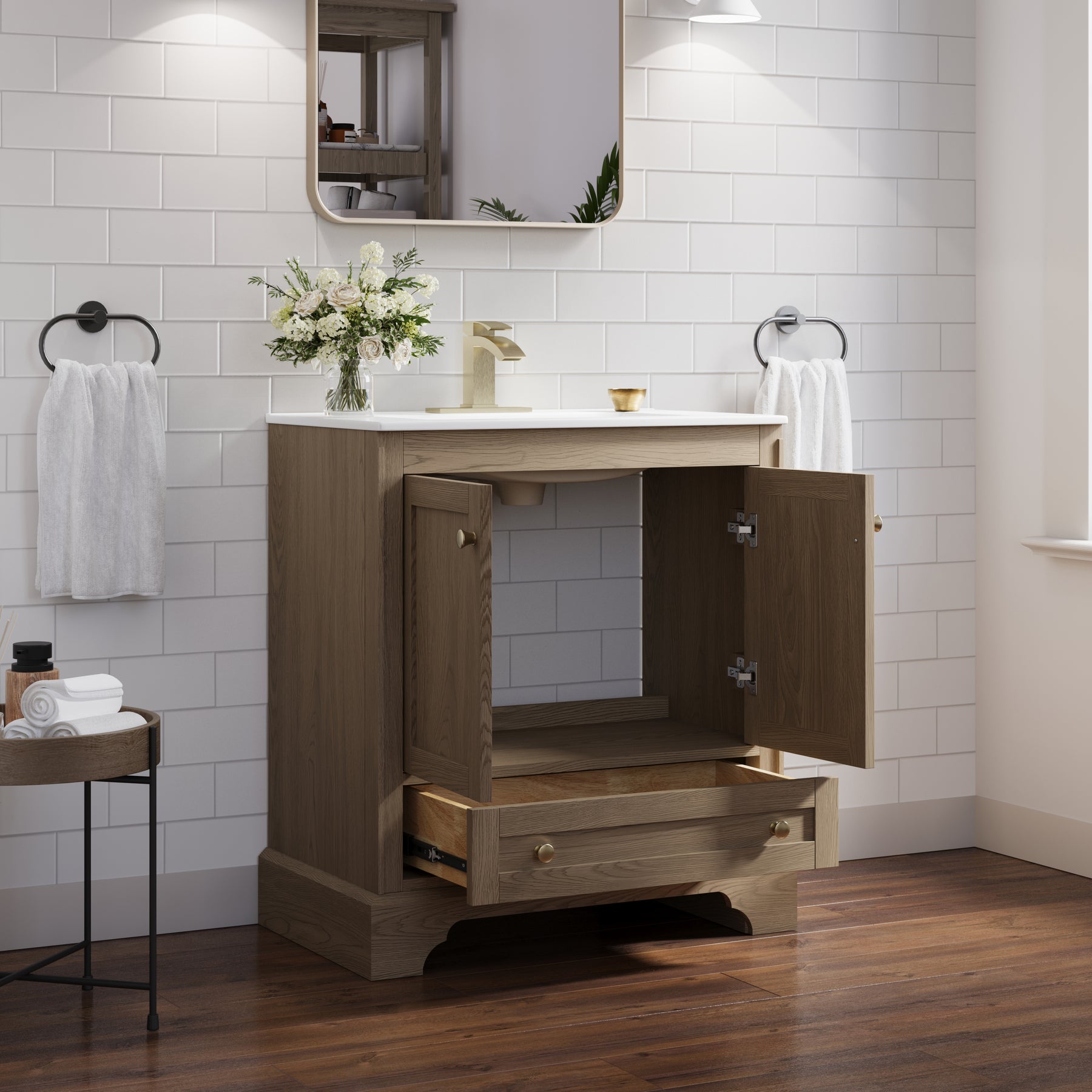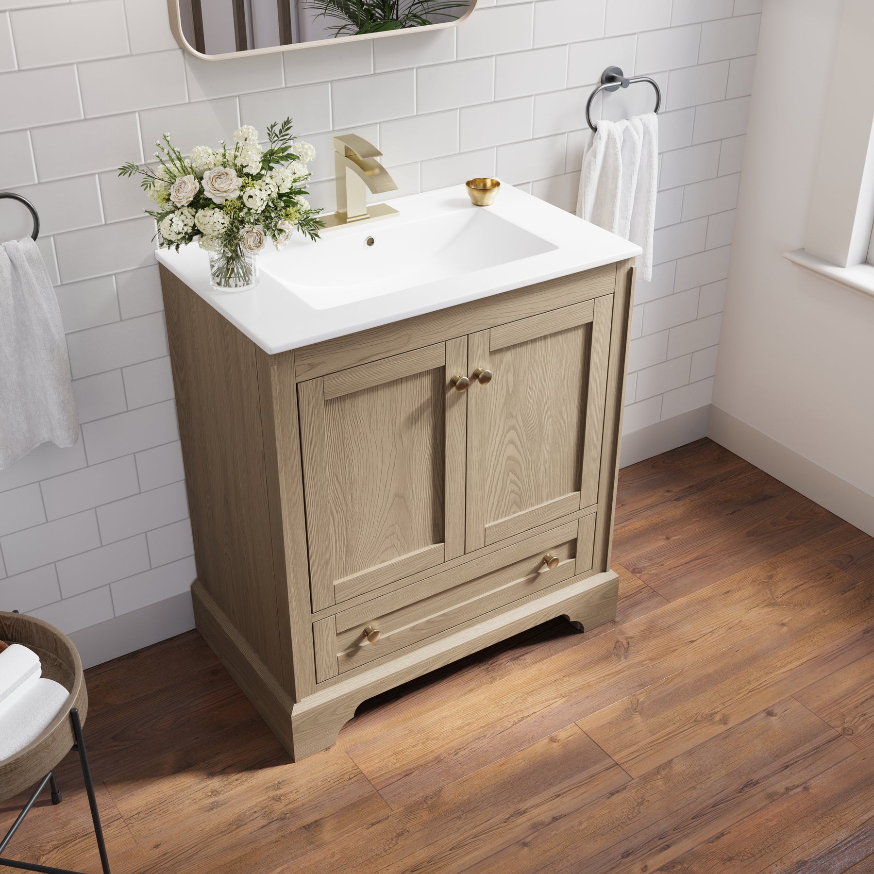 - Versatile and Functional: This 30-inch oak bathroom vanity set fits beautifully in both small and large bathrooms. Its compact footprint and smart storage layout help you make the most of limited space, while the generous storage capacity and elegant design also make it a stylish choice for spacious bathrooms.