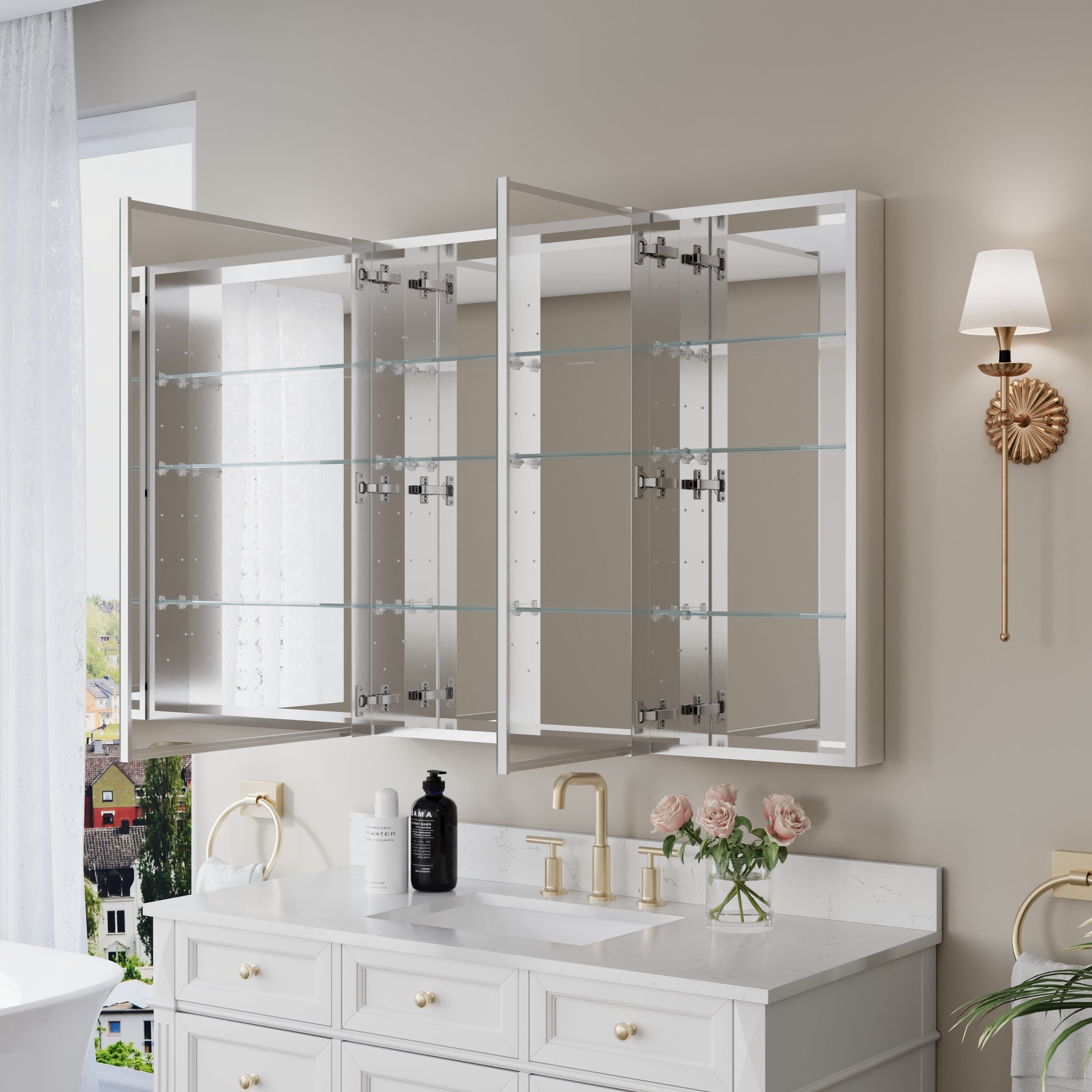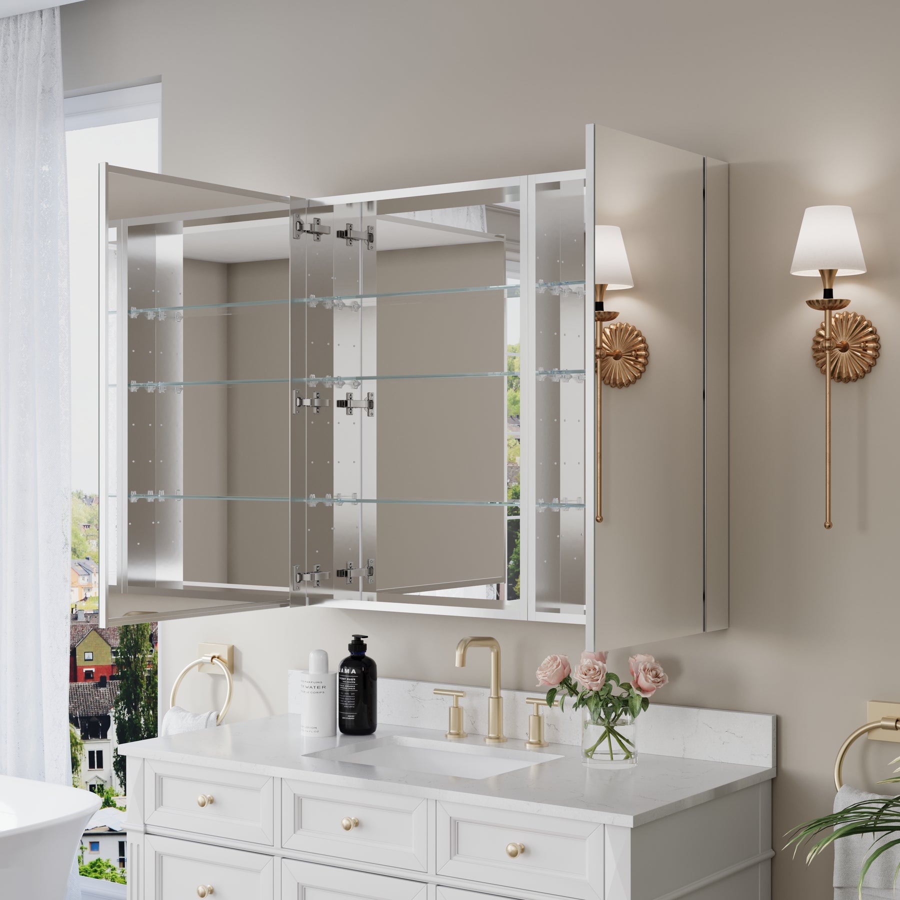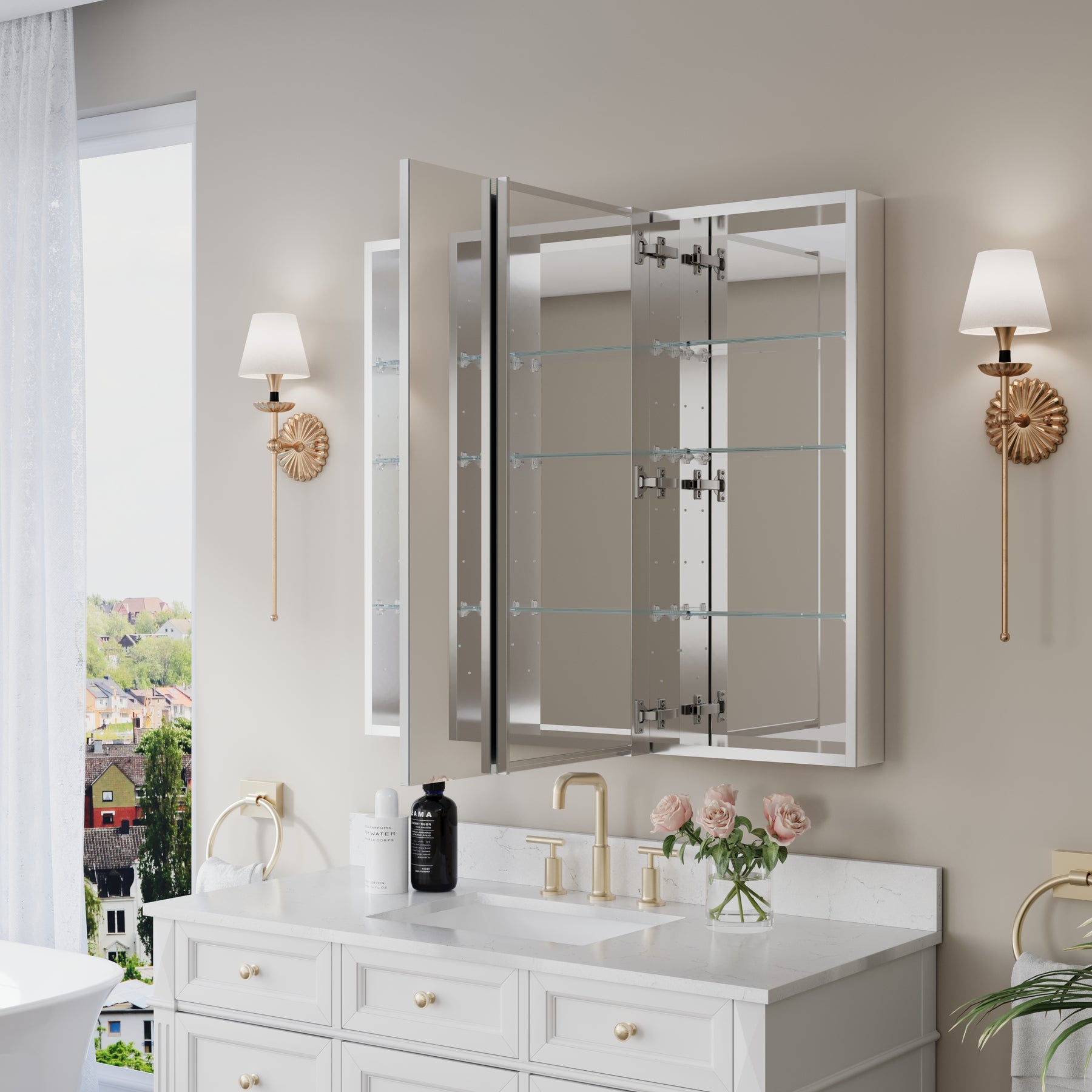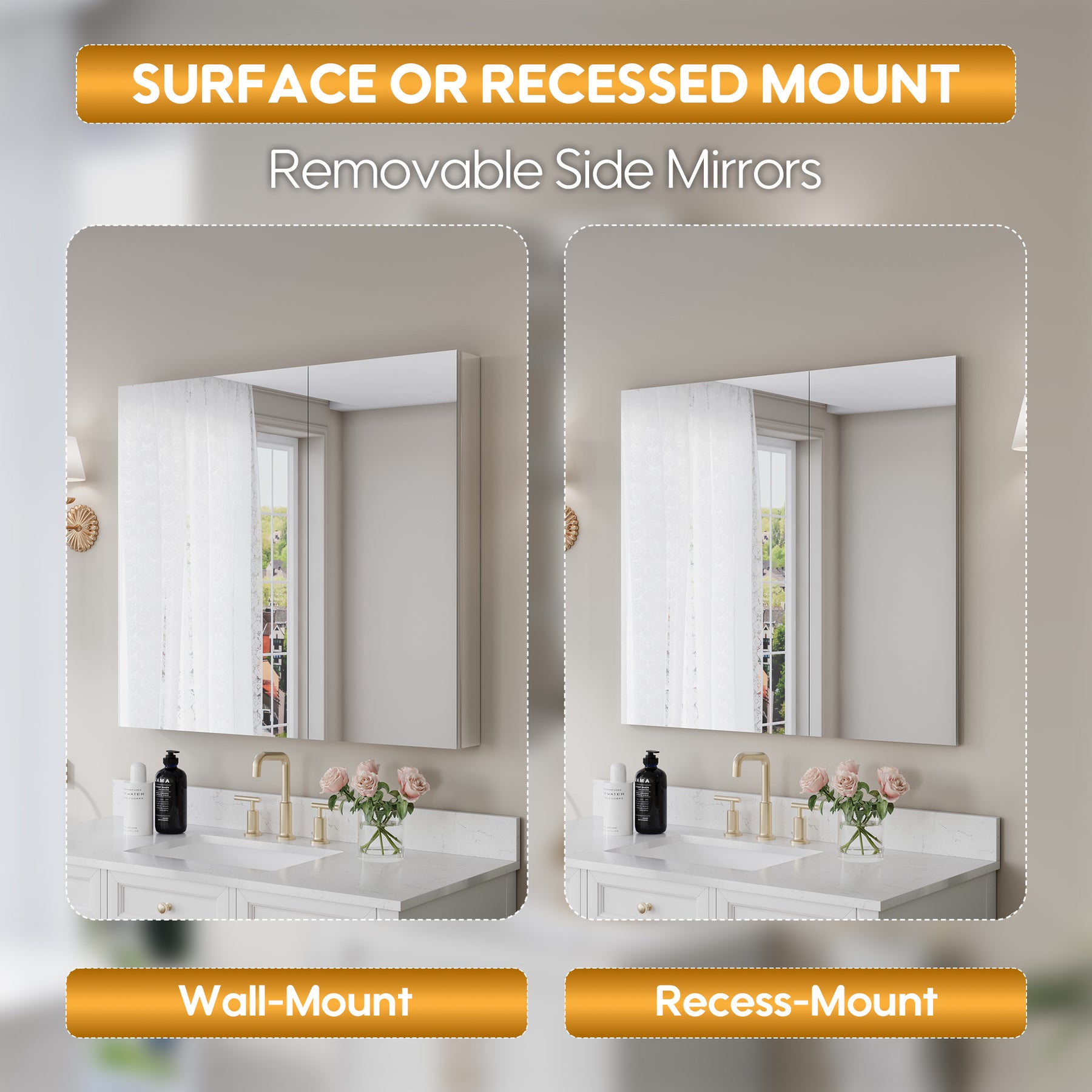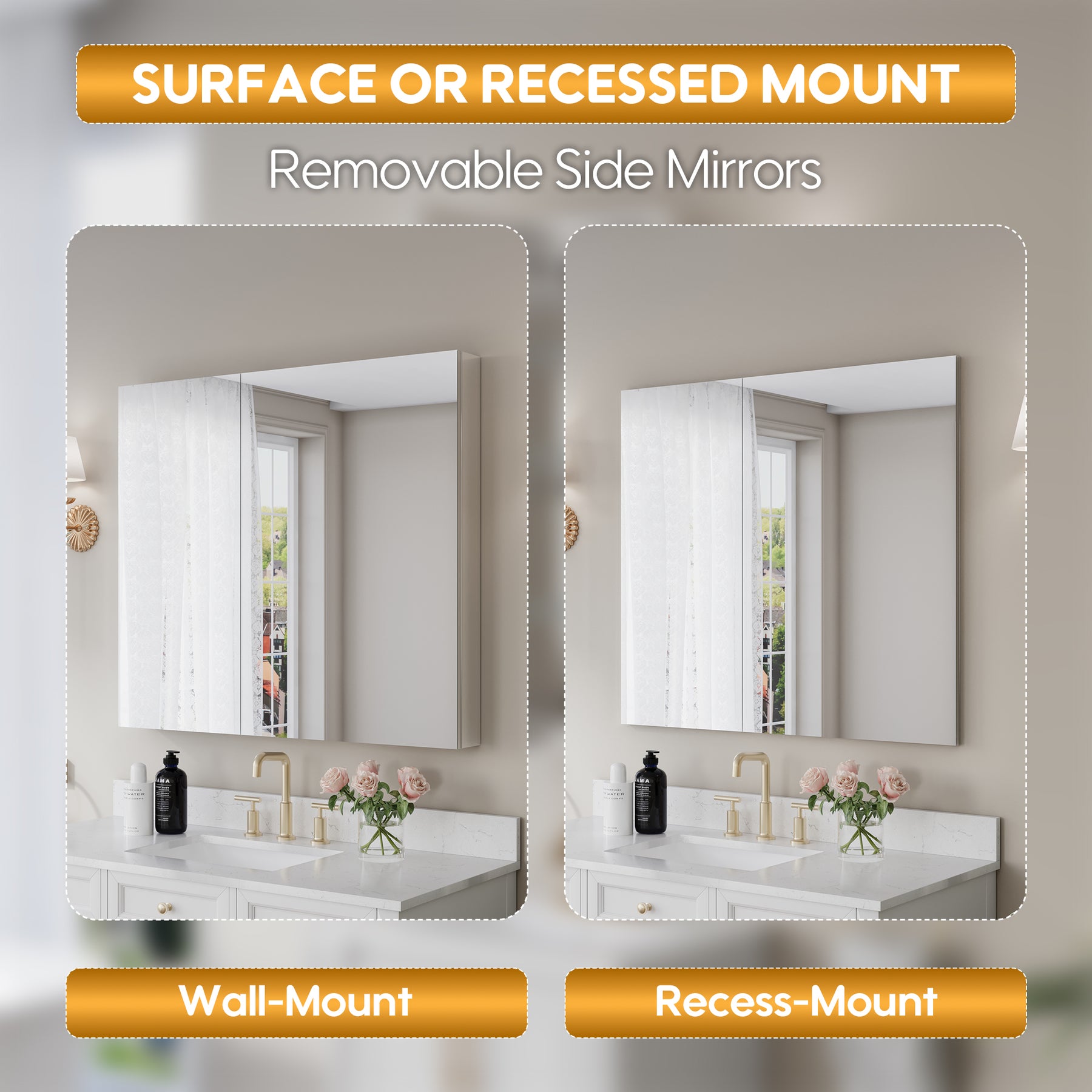 - Reversible Door Design: Copper-free tri-view mirror cabinet with 180° reversible installation, allowing the door to open from either the left or right side for flexible bathroom layouts.