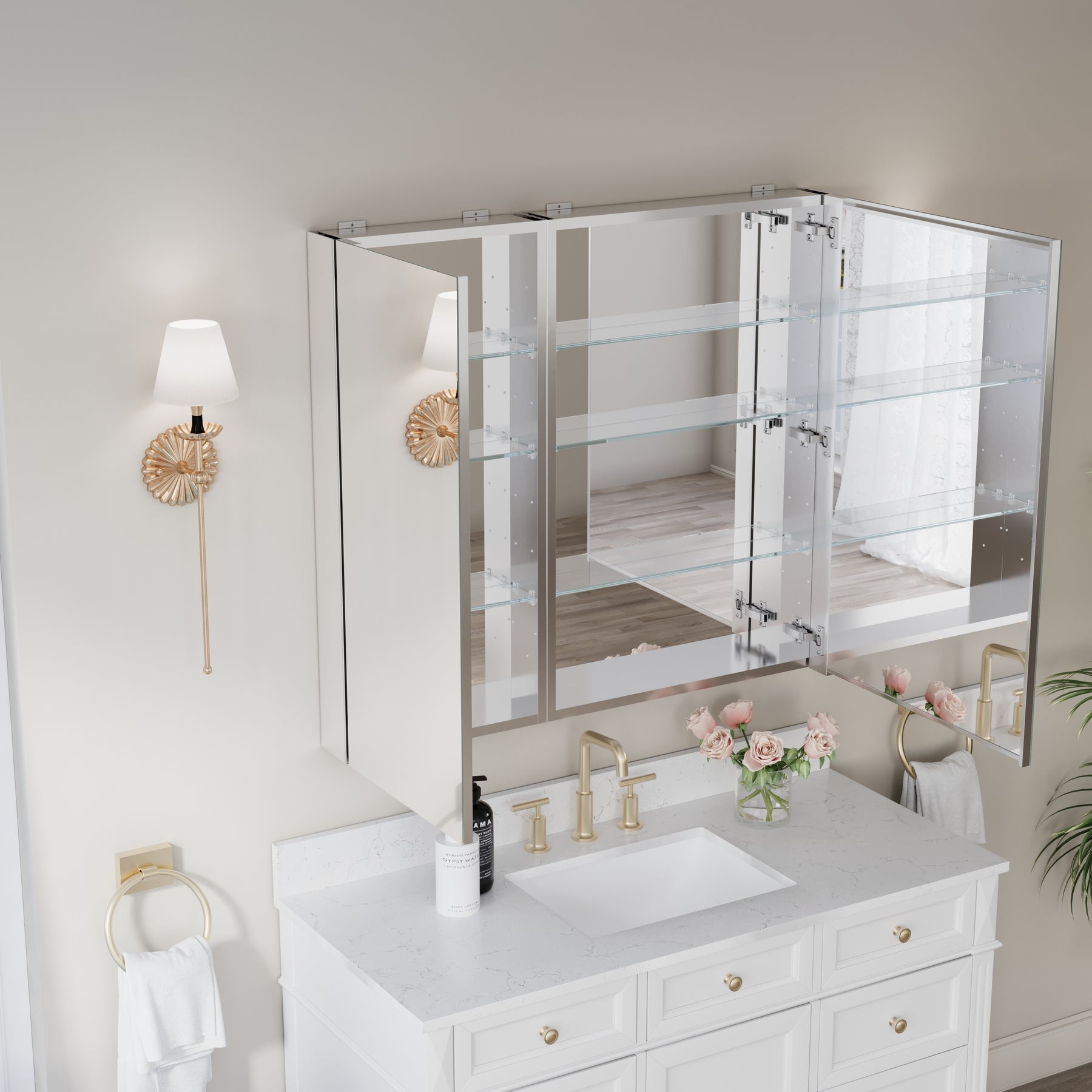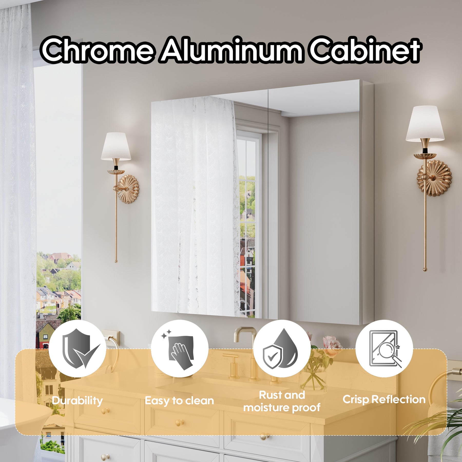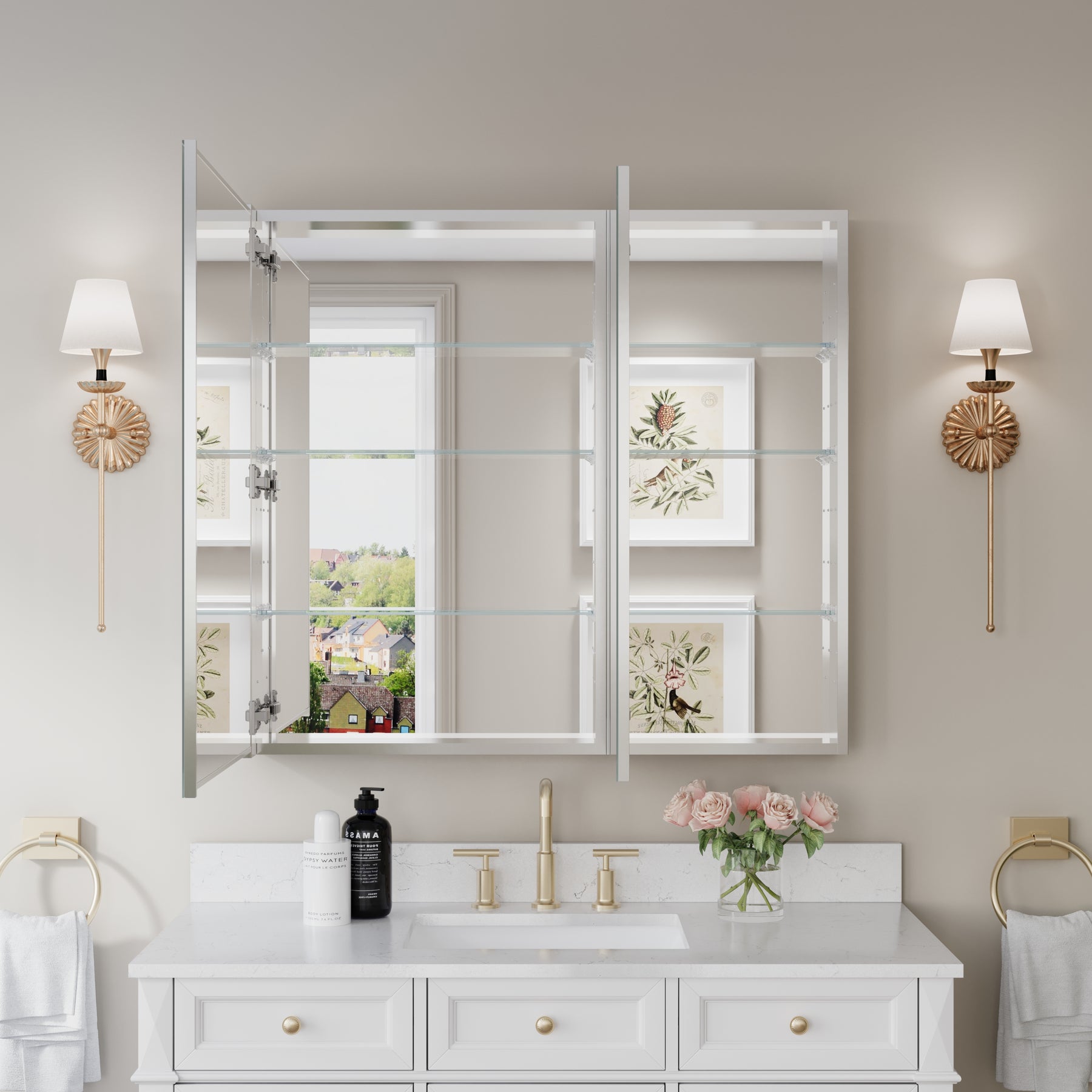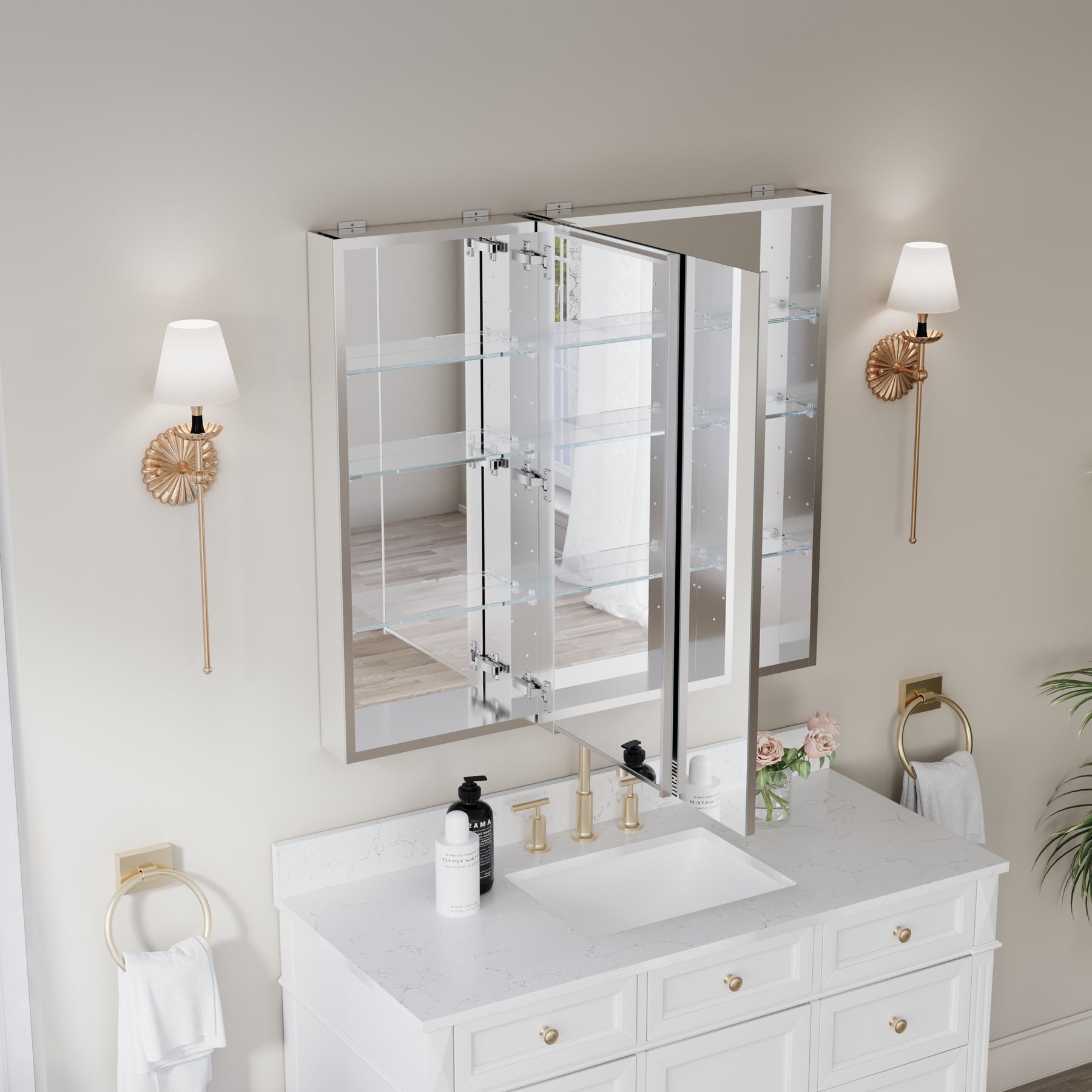 - Reversible Door Design: Copper-free tri-view mirror cabinet with 180° reversible installation, allowing the door to open from either the left or right side for flexible bathroom layouts.