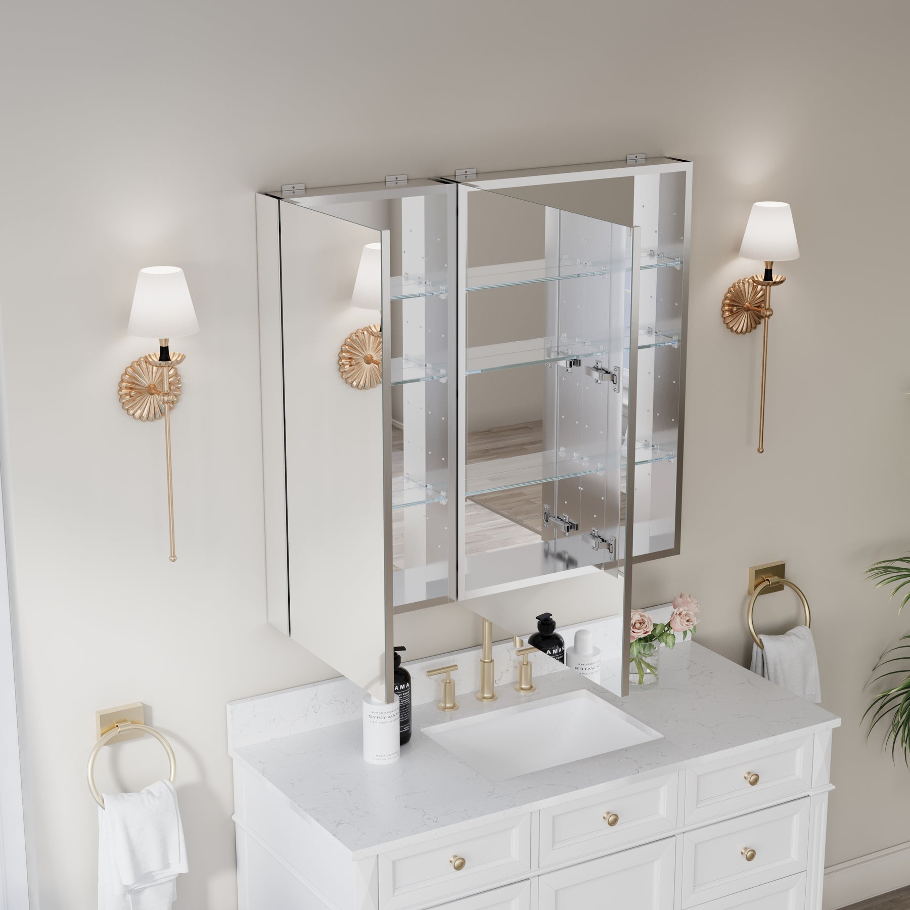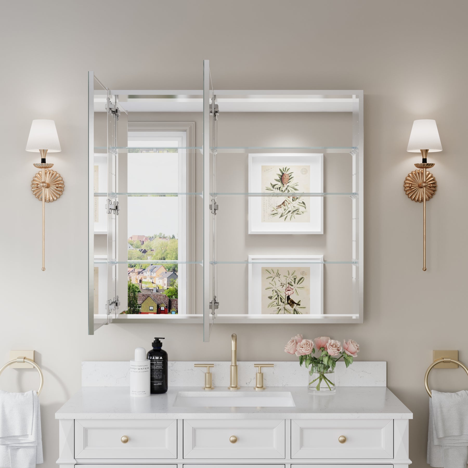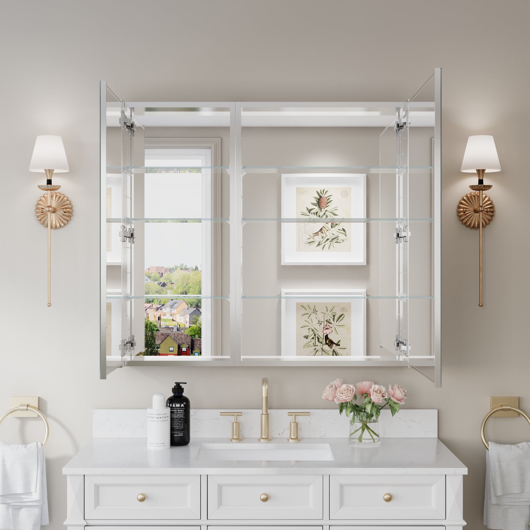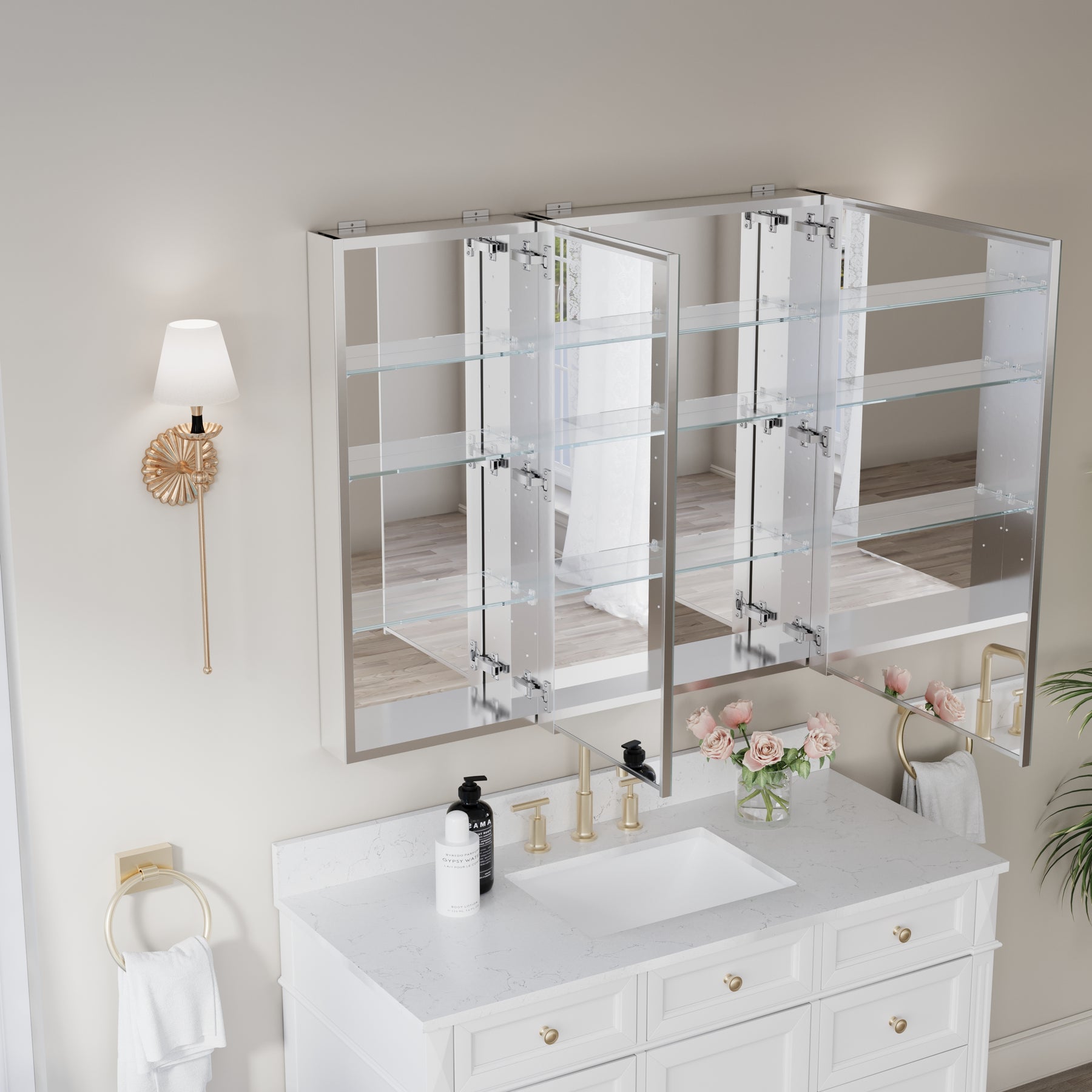 - Reversible Door Design: Copper-free tri-view mirror cabinet with 180° reversible installation, allowing the door to open from either the left or right side for flexible bathroom layouts.