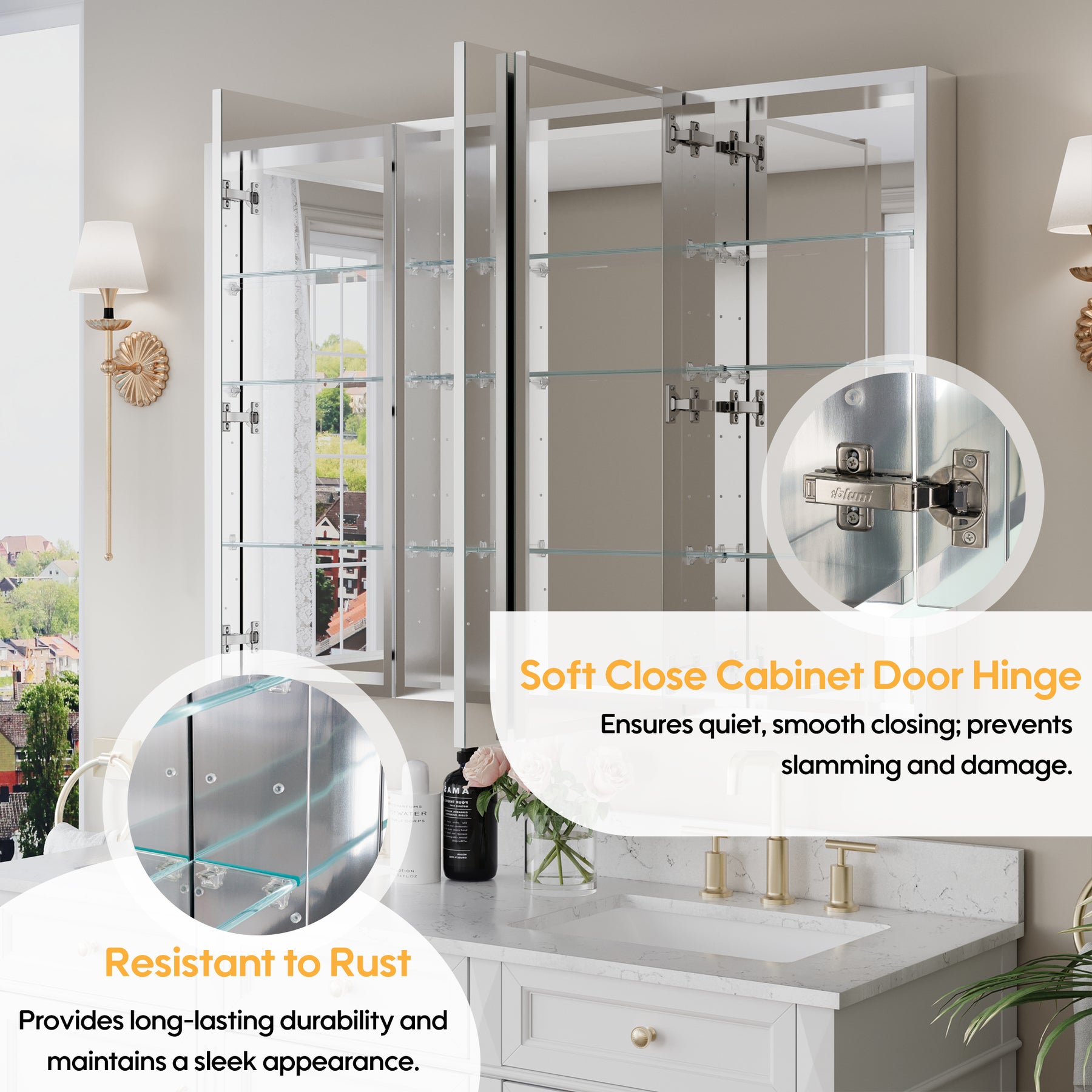 - Reversible Door Design: Copper-free tri-view mirror cabinet with 180° reversible installation, allowing the door to open from either the left or right side for flexible bathroom layouts.