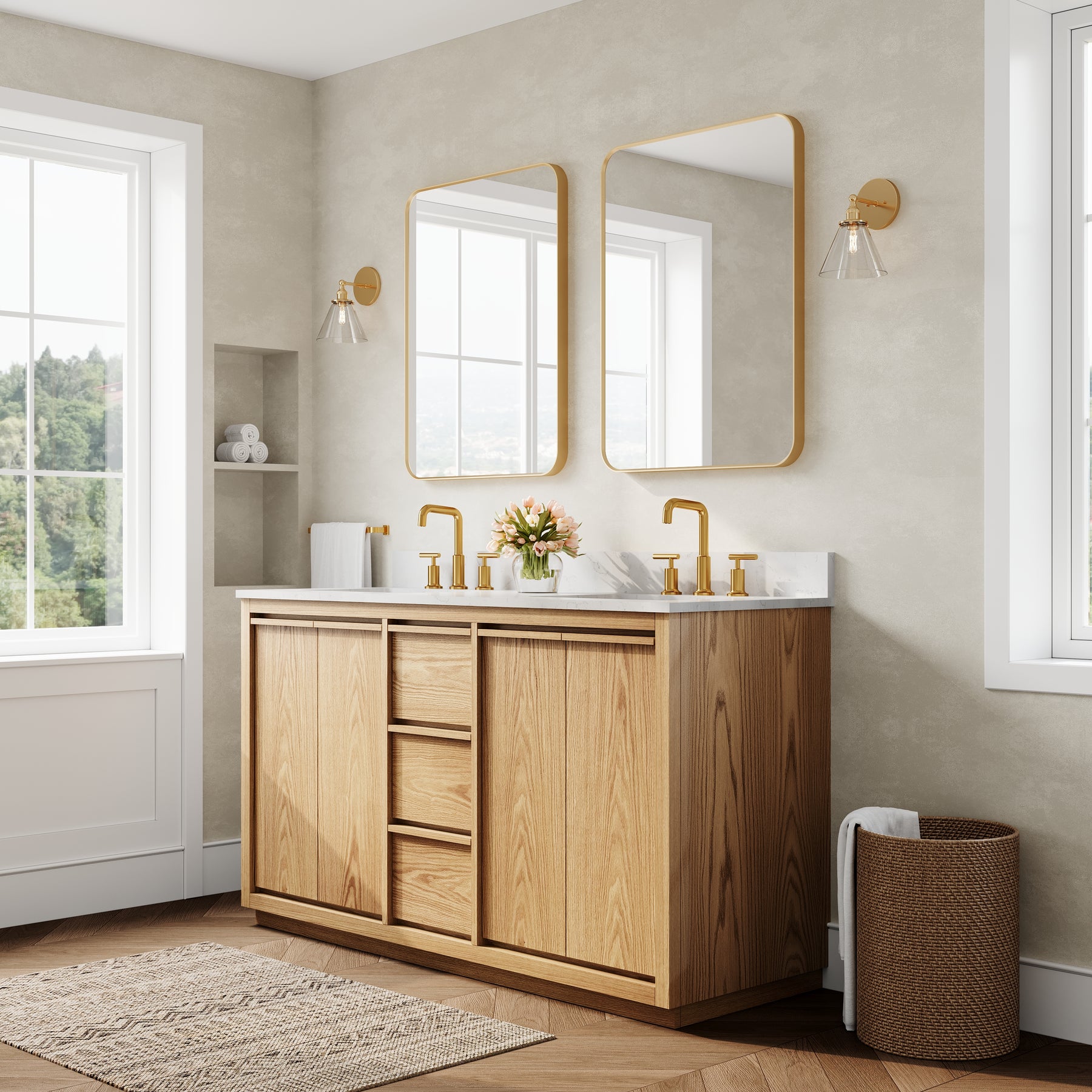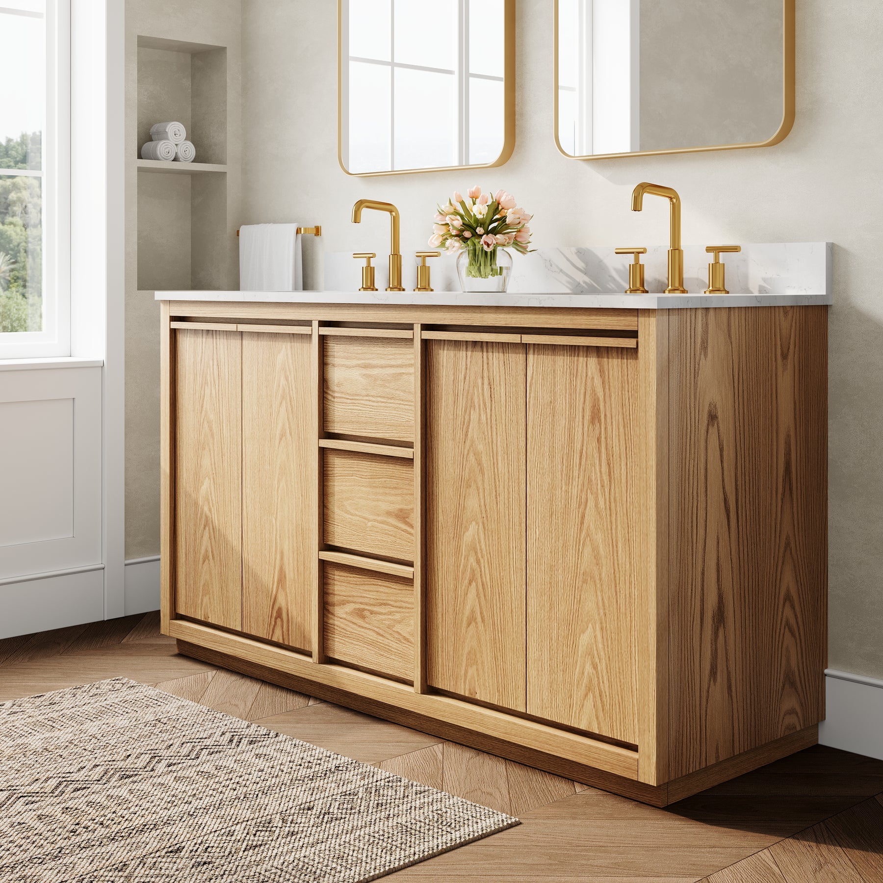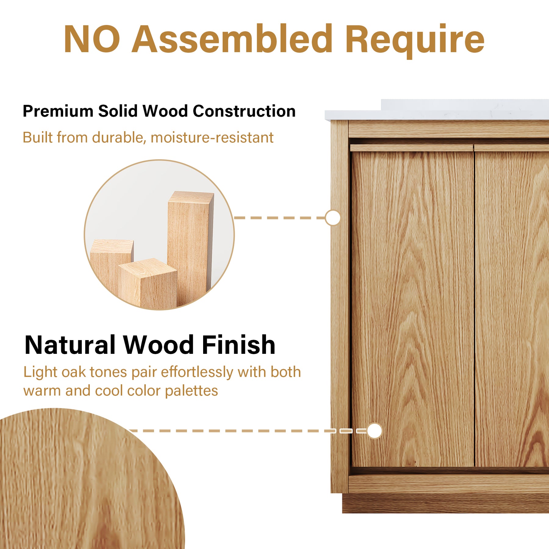 - Premium Oak Wood Construction: Crafted with a solid oak wood frame and high-quality veneer plywood, this bathroom vanity delivers superior durability, stability, and long-lasting performance.