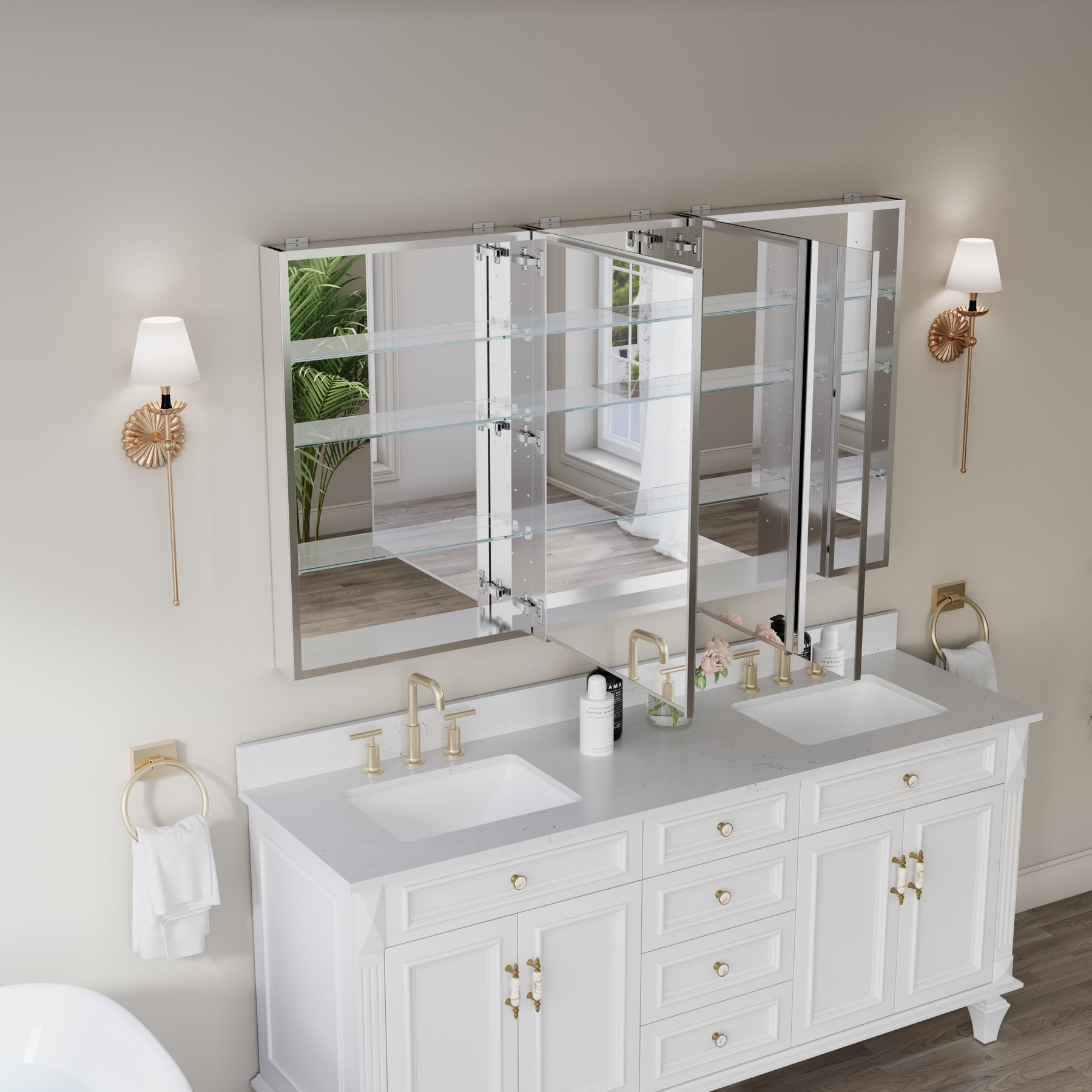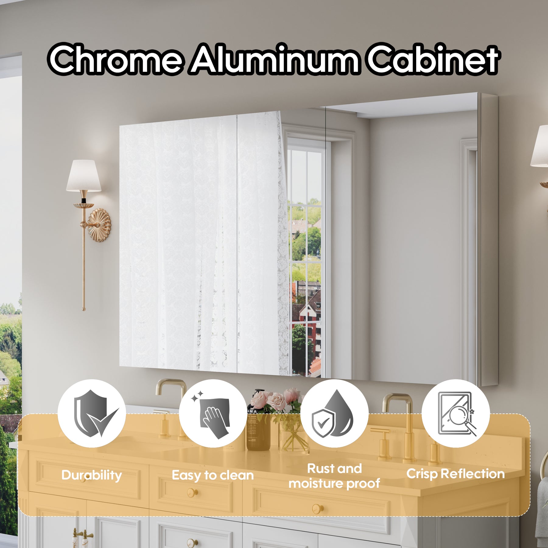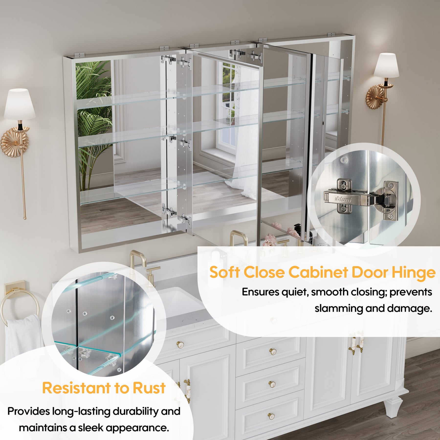 - Reversible Door Design: Copper-free tri-view mirror cabinet with 180° reversible installation, allowing the door to open from either the left or right side for flexible bathroom layouts.