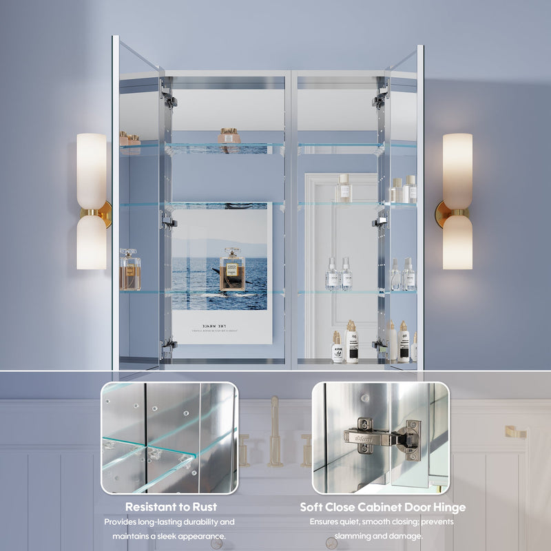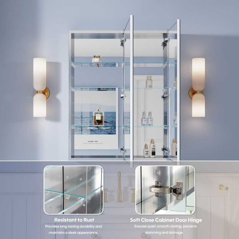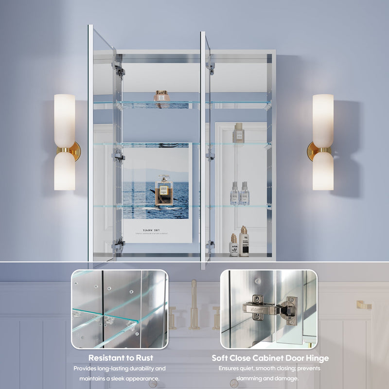 - Reversible Door Design: Copper-free tri-view mirror cabinet with 180° reversible installation, allowing the door to open from either the left or right side for flexible bathroom layouts.