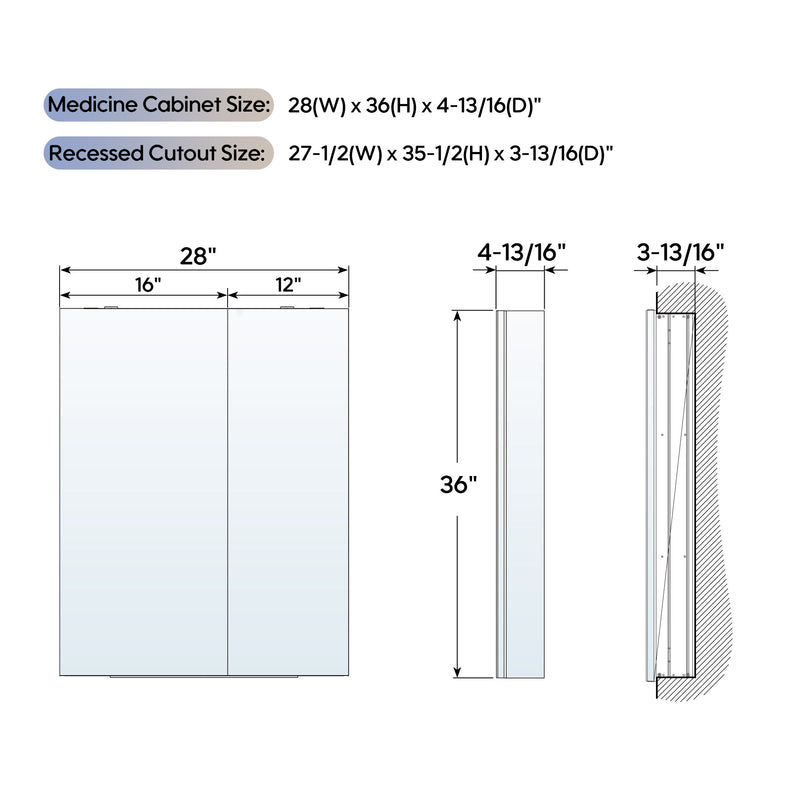 - Cabinet Dimensions: 28" W x 4 13/16" D x 36" H;