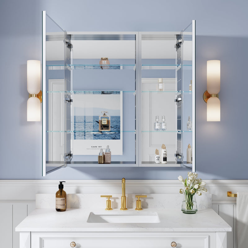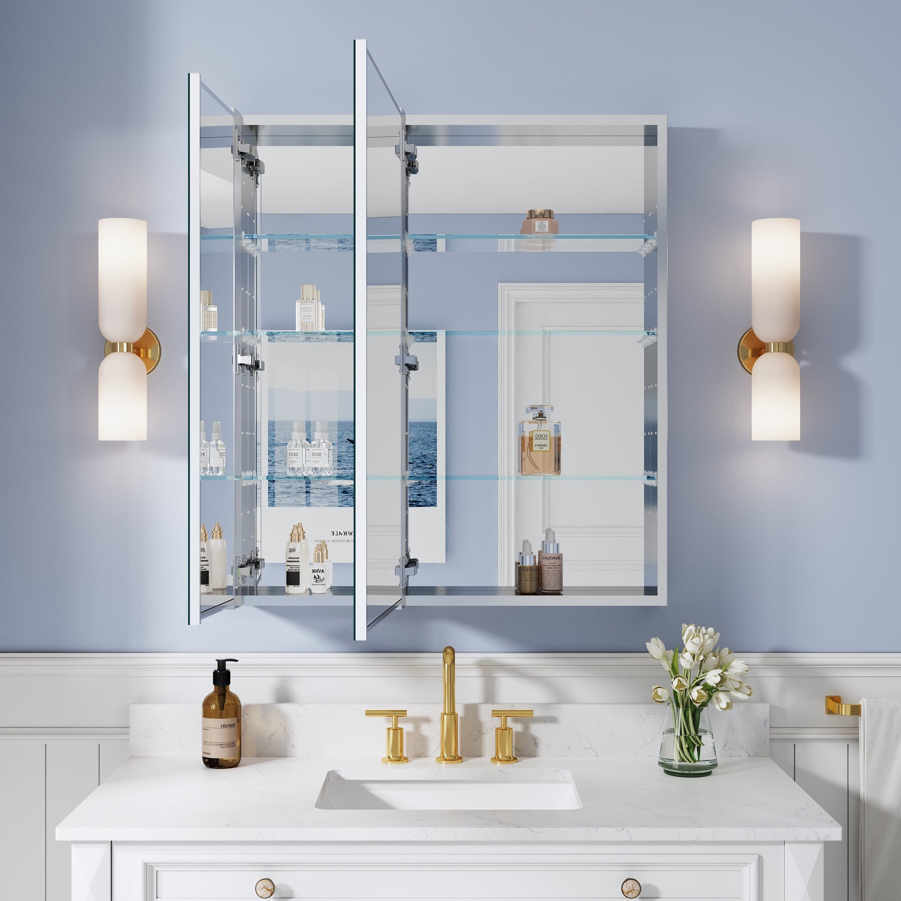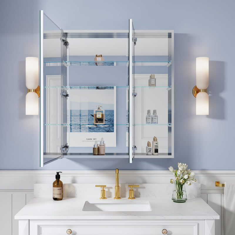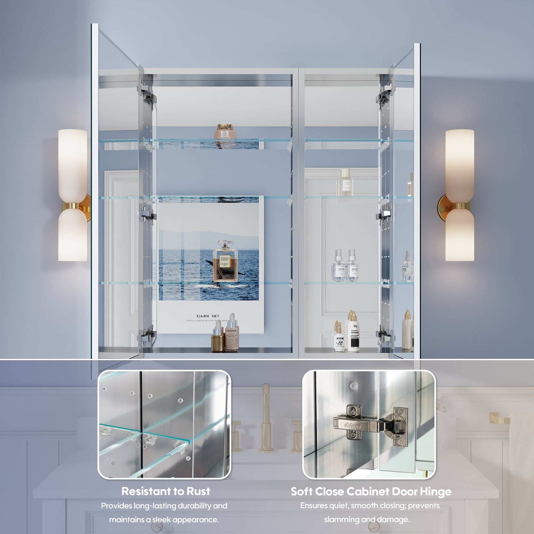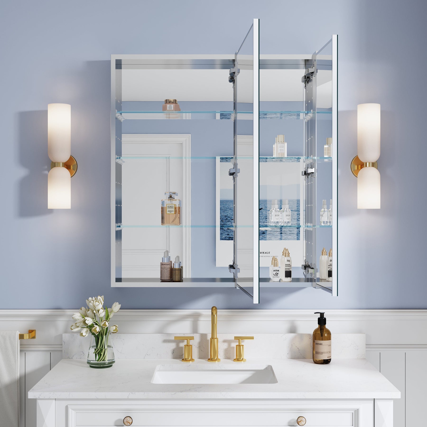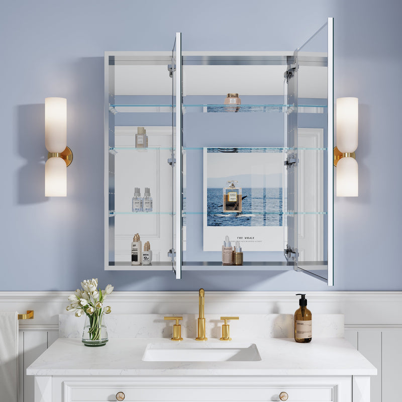 32 in. ×36 in. Copper-Free Tri-Views Mirror Medicine Cabinet with Adjustable Shelves and Dual Swing Doors