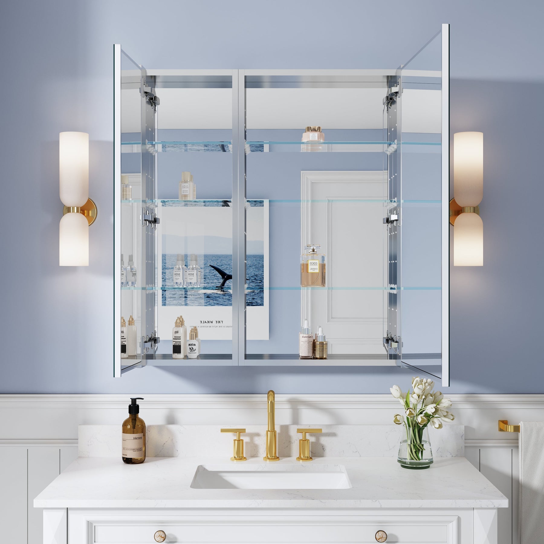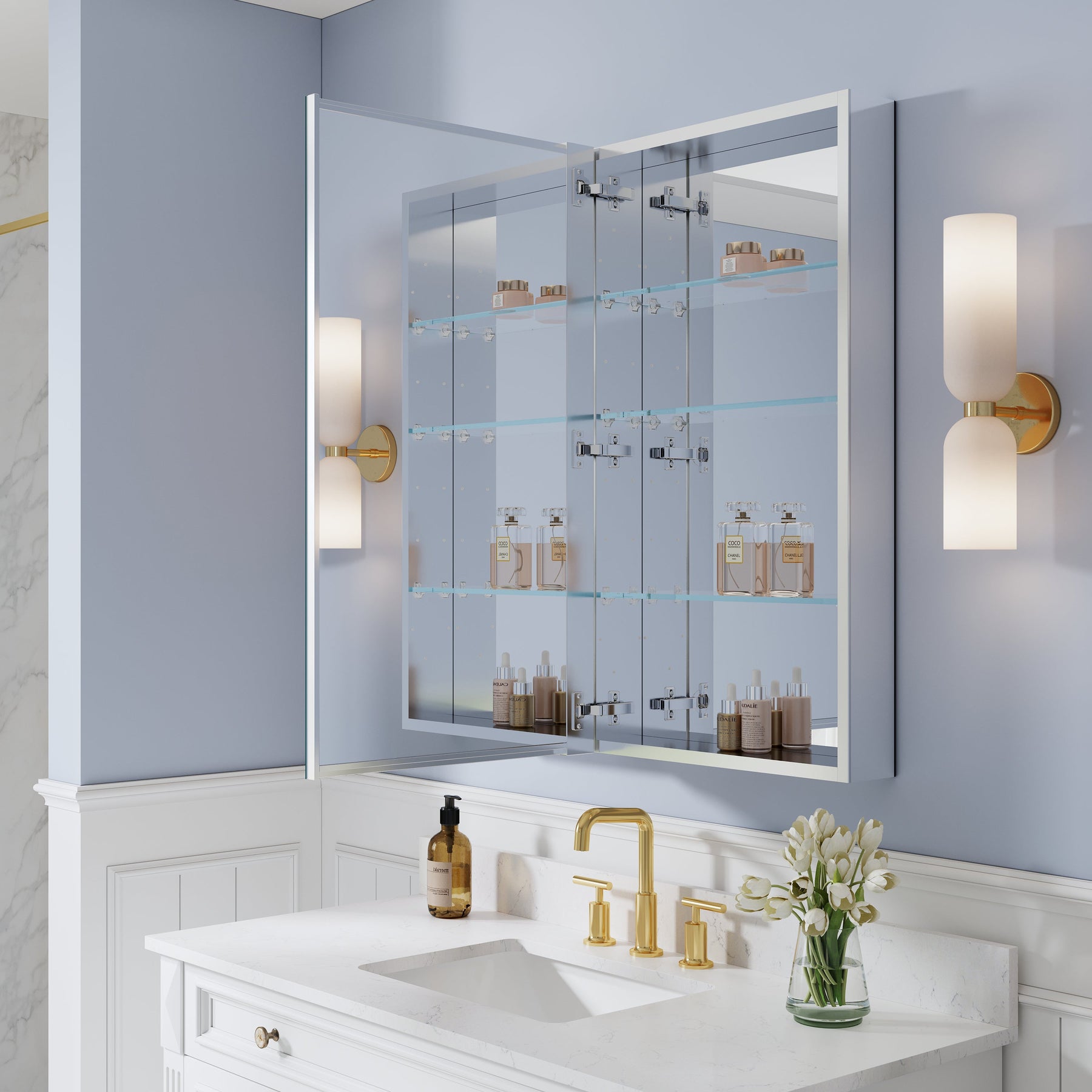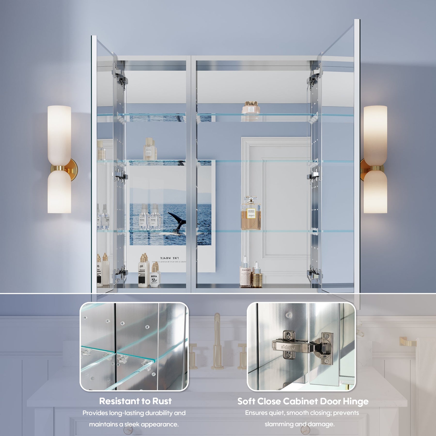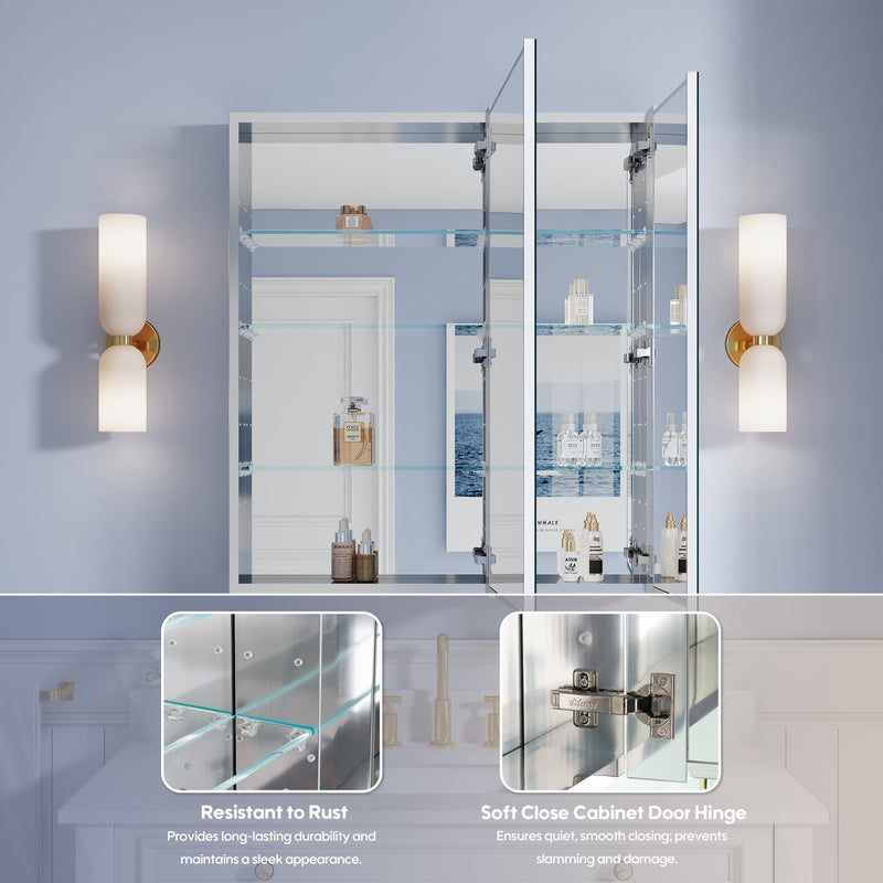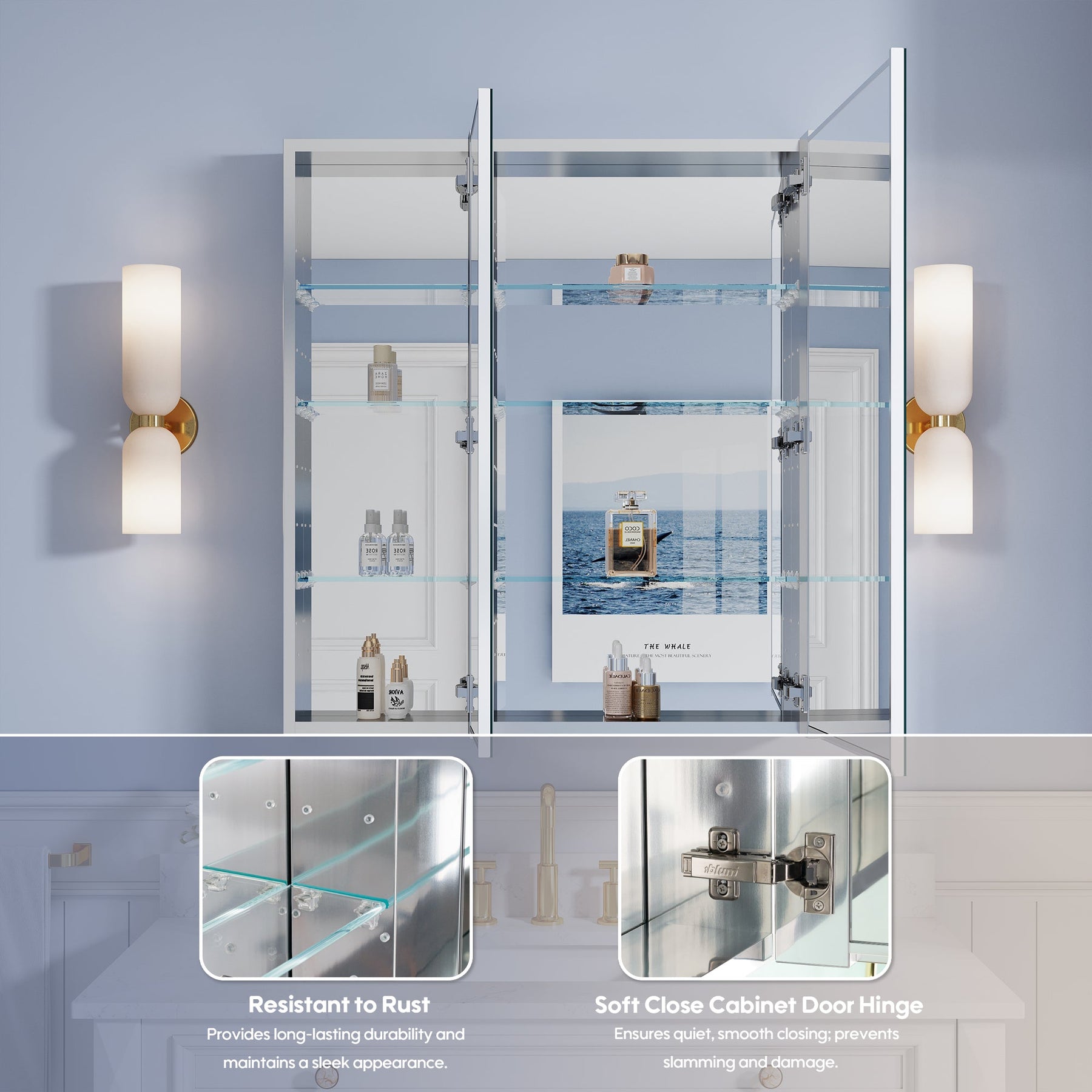 32 in. ×36 in. Copper-Free Tri-Views Mirror Medicine Cabinet with Adjustable Shelves and Dual Swing Doors