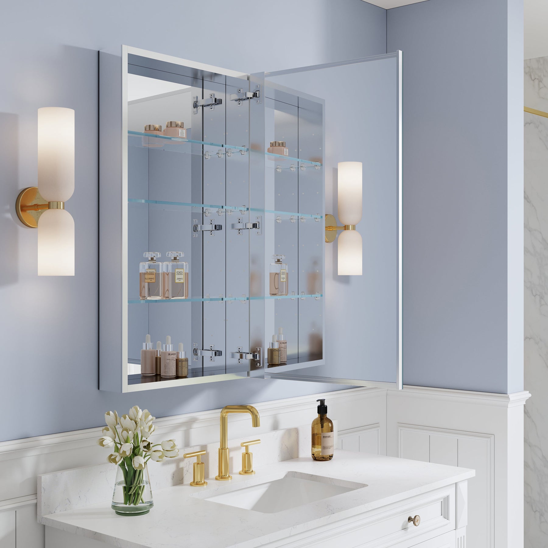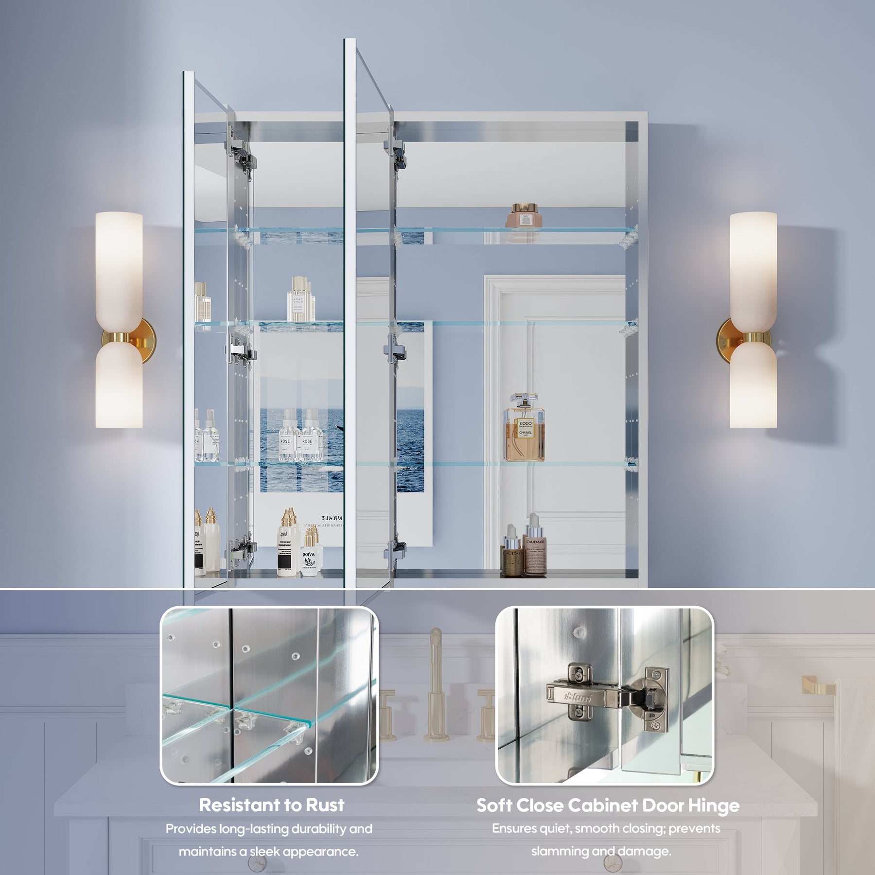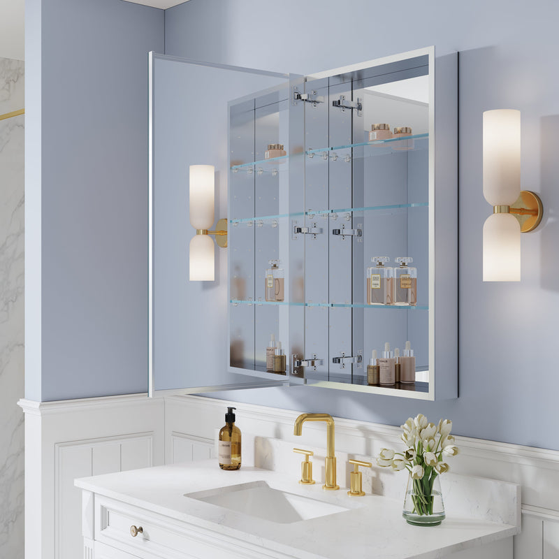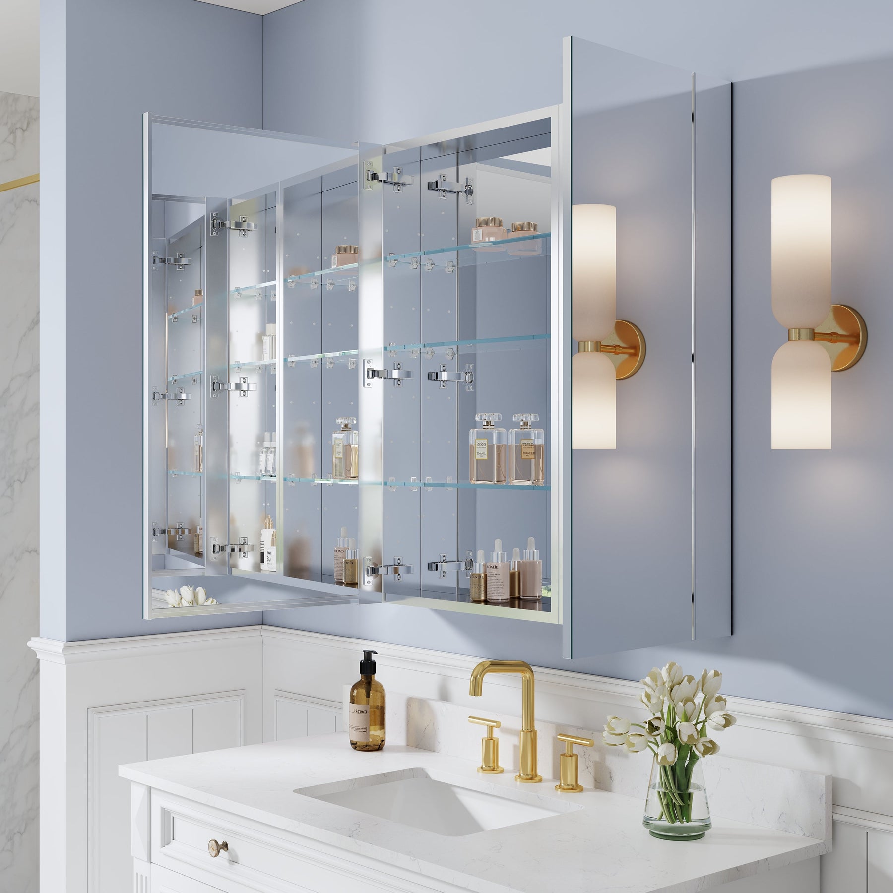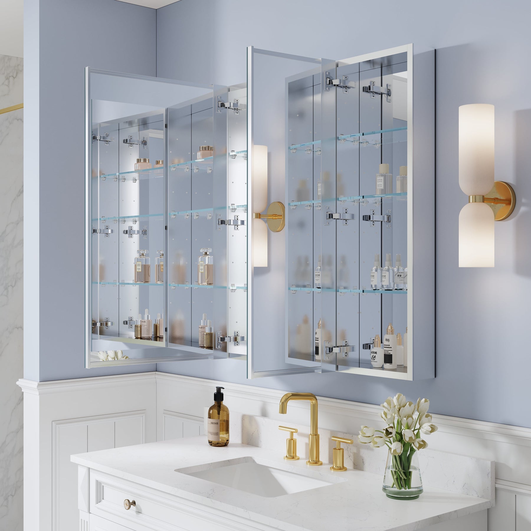 32 in. ×36 in. Copper-Free Tri-Views Mirror Medicine Cabinet with Adjustable Shelves and Dual Swing Doors