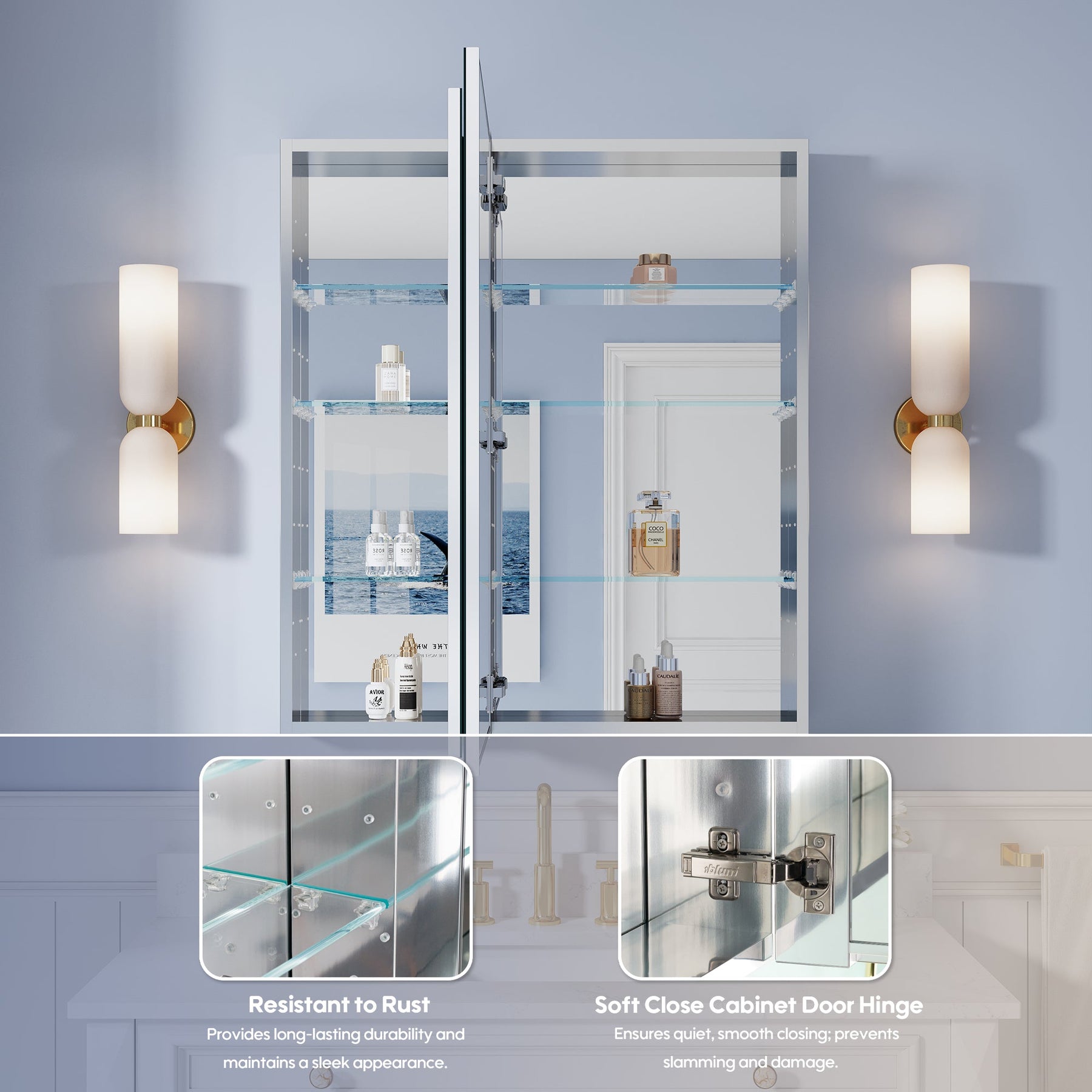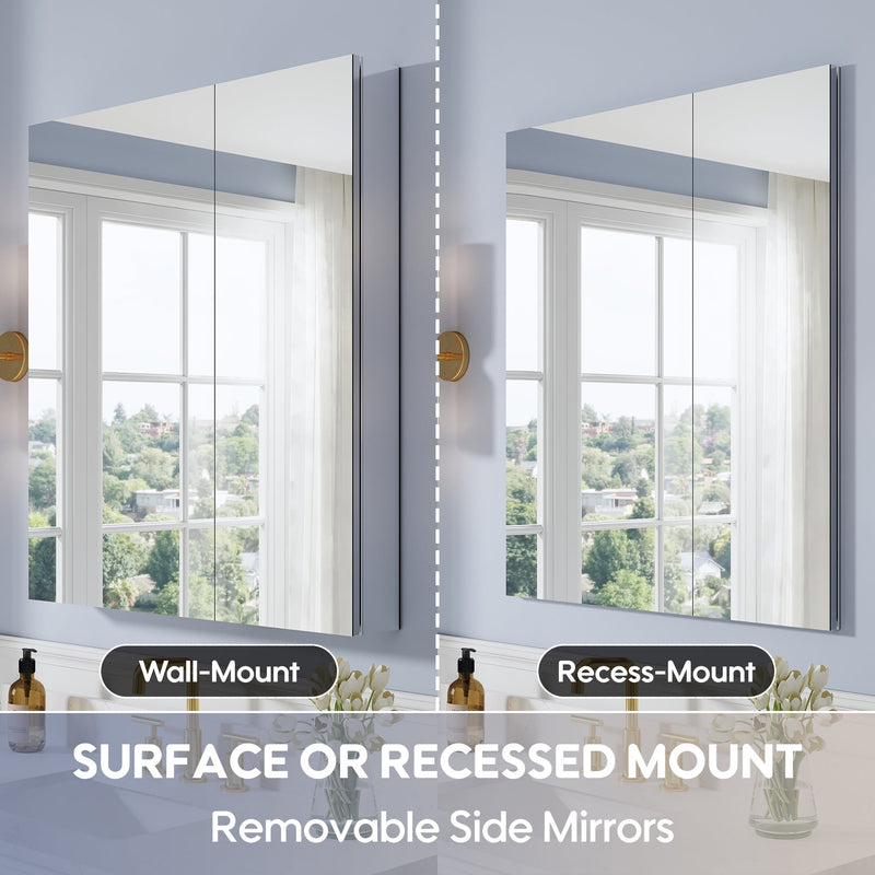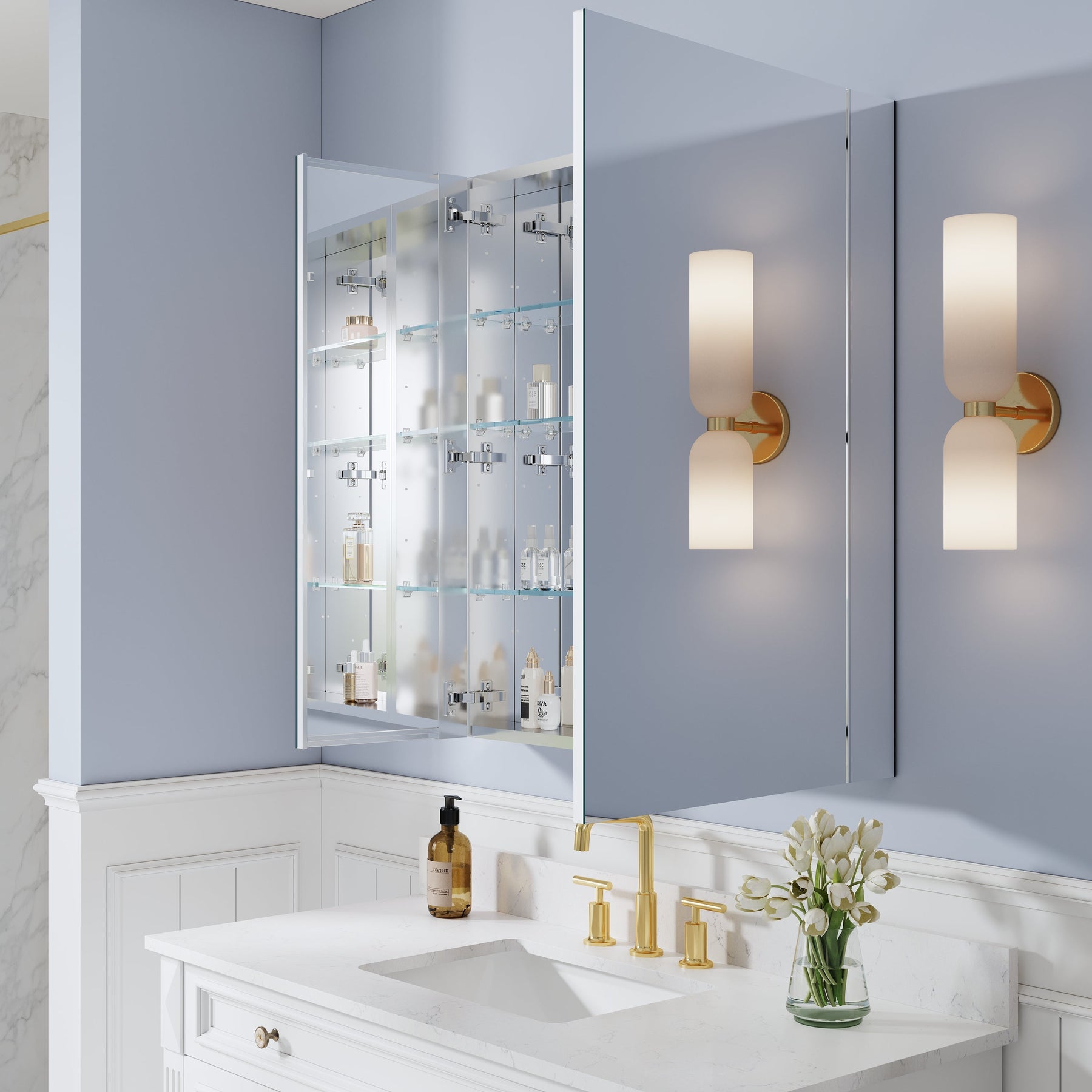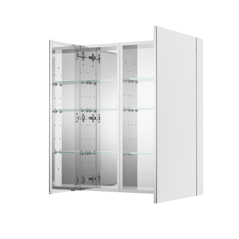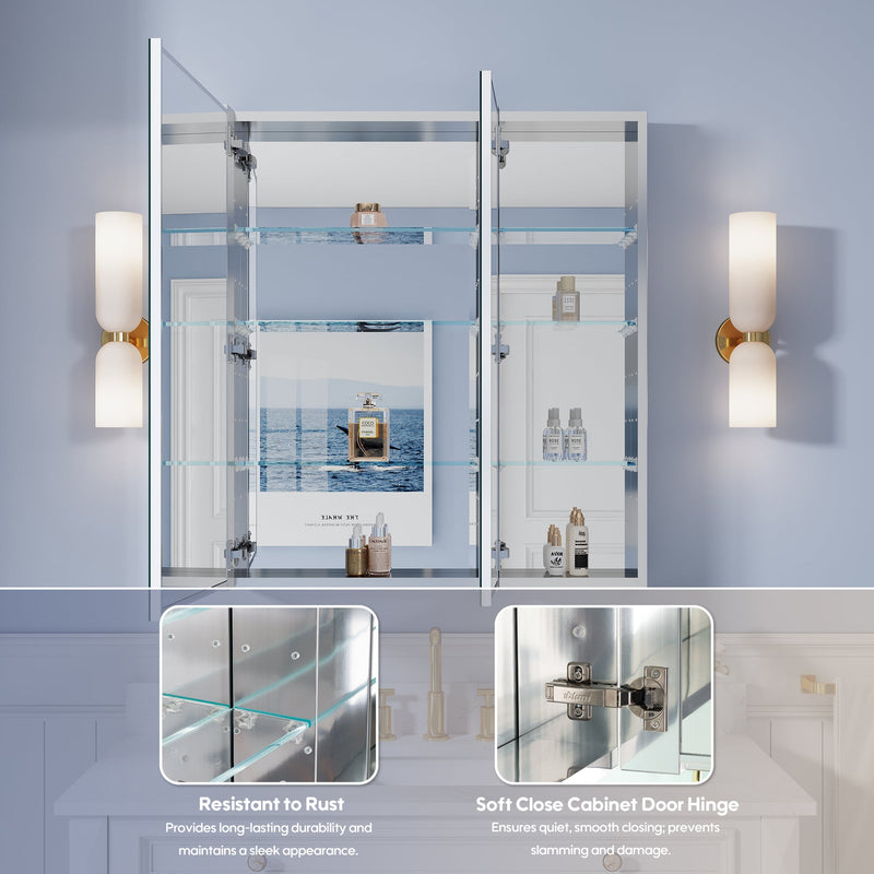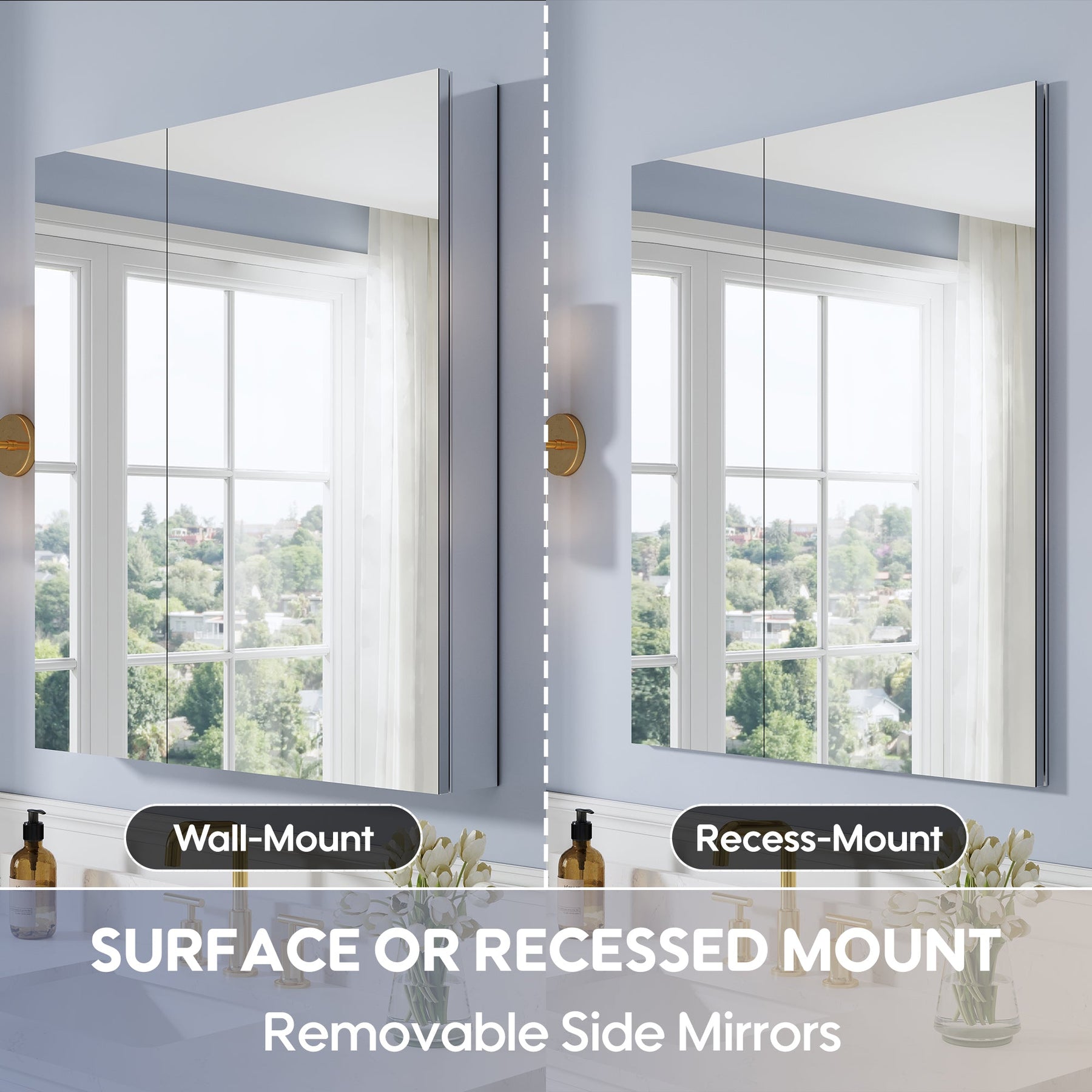 32 in. ×36 in. Copper-Free Tri-Views Mirror Medicine Cabinet with Adjustable Shelves and Dual Swing Doors