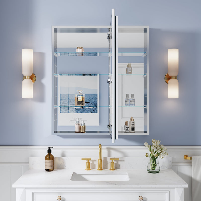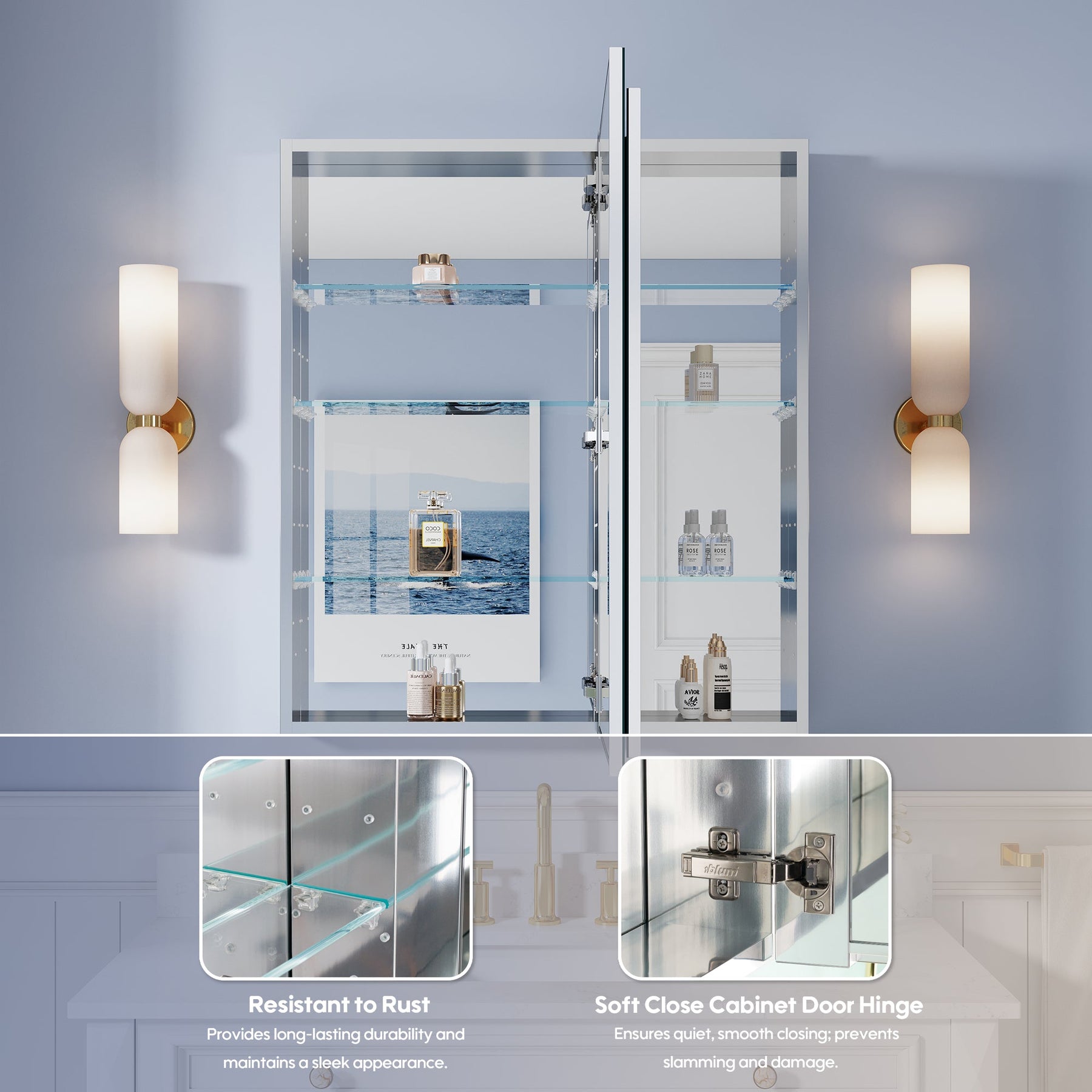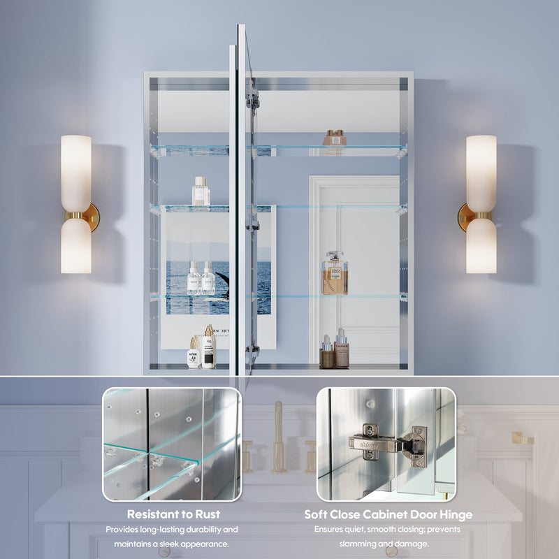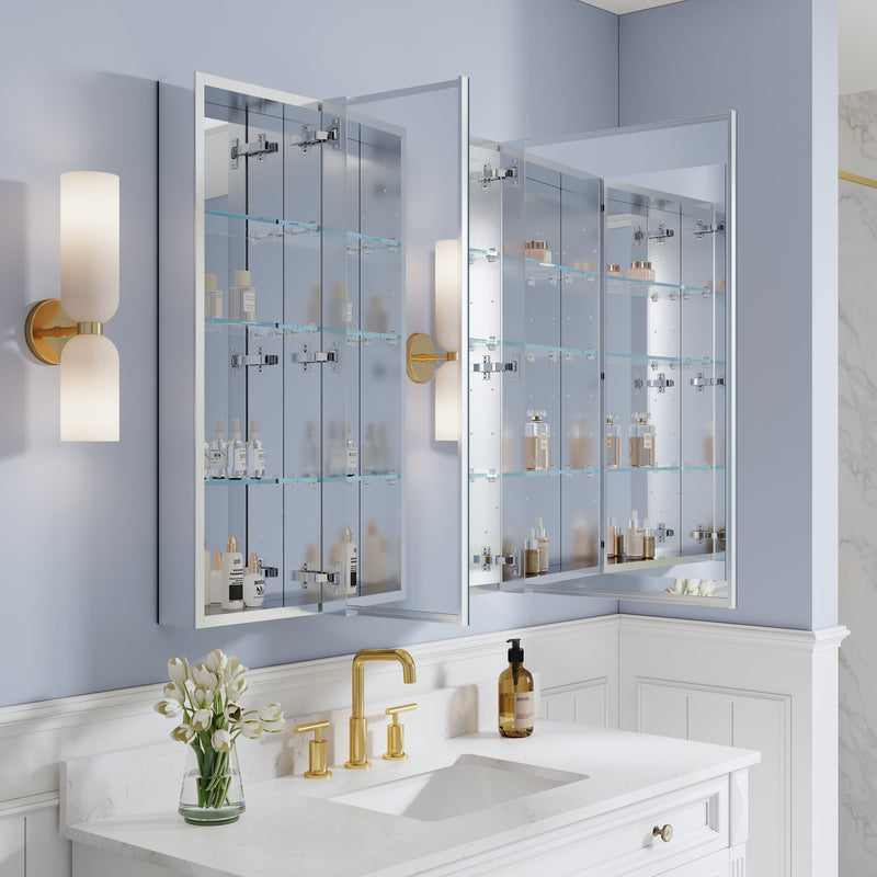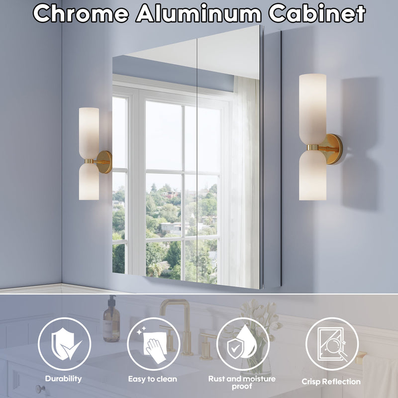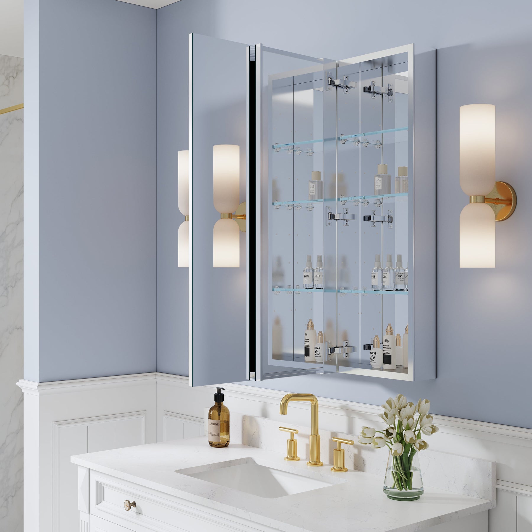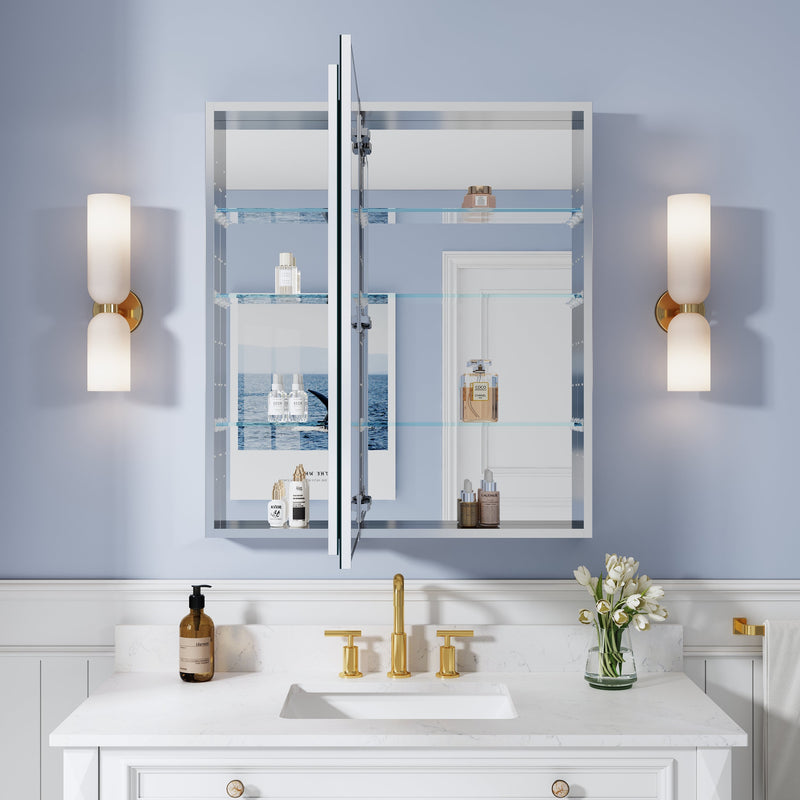 32 in. ×36 in. Copper-Free Tri-Views Mirror Medicine Cabinet with Adjustable Shelves and Dual Swing Doors