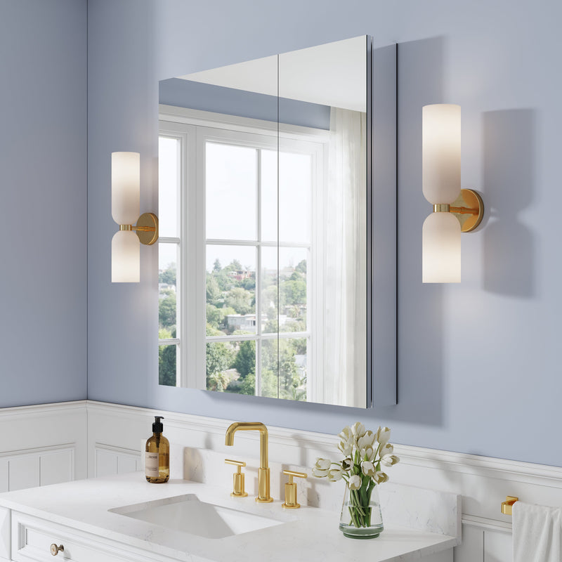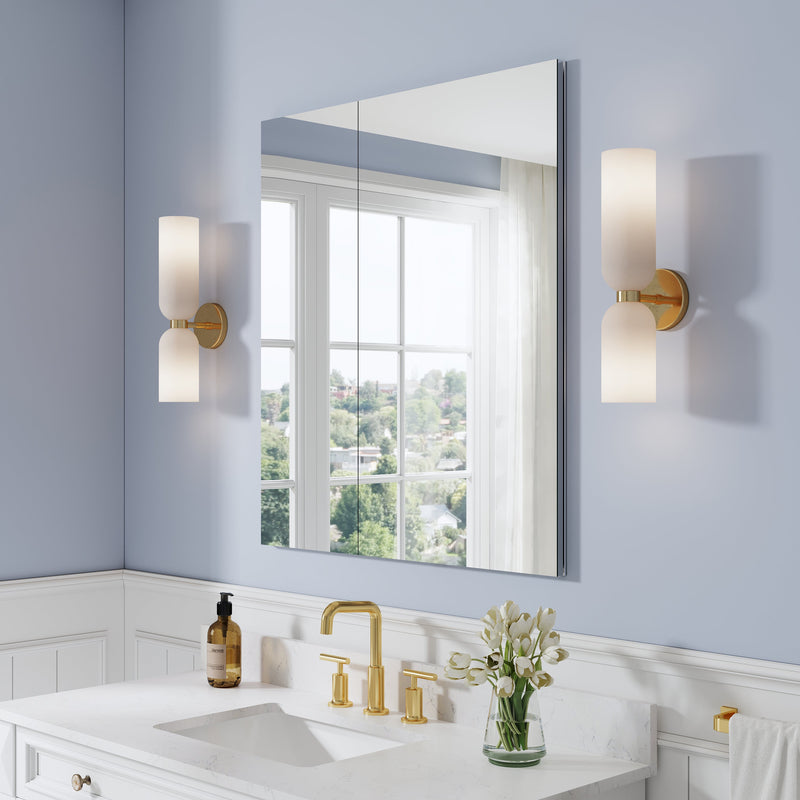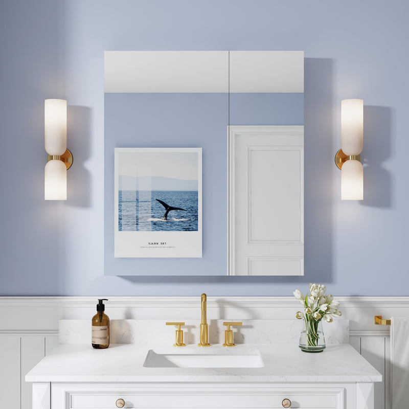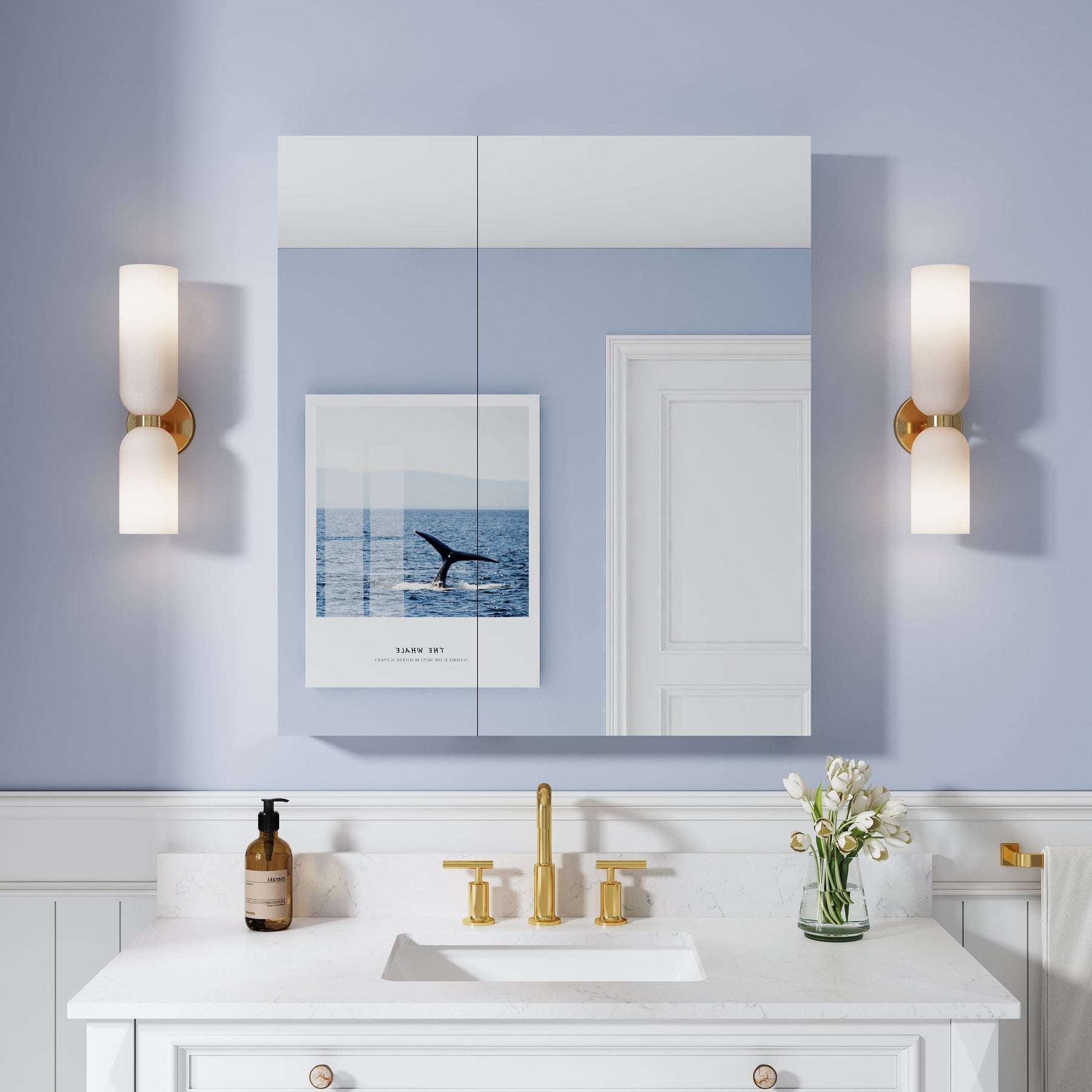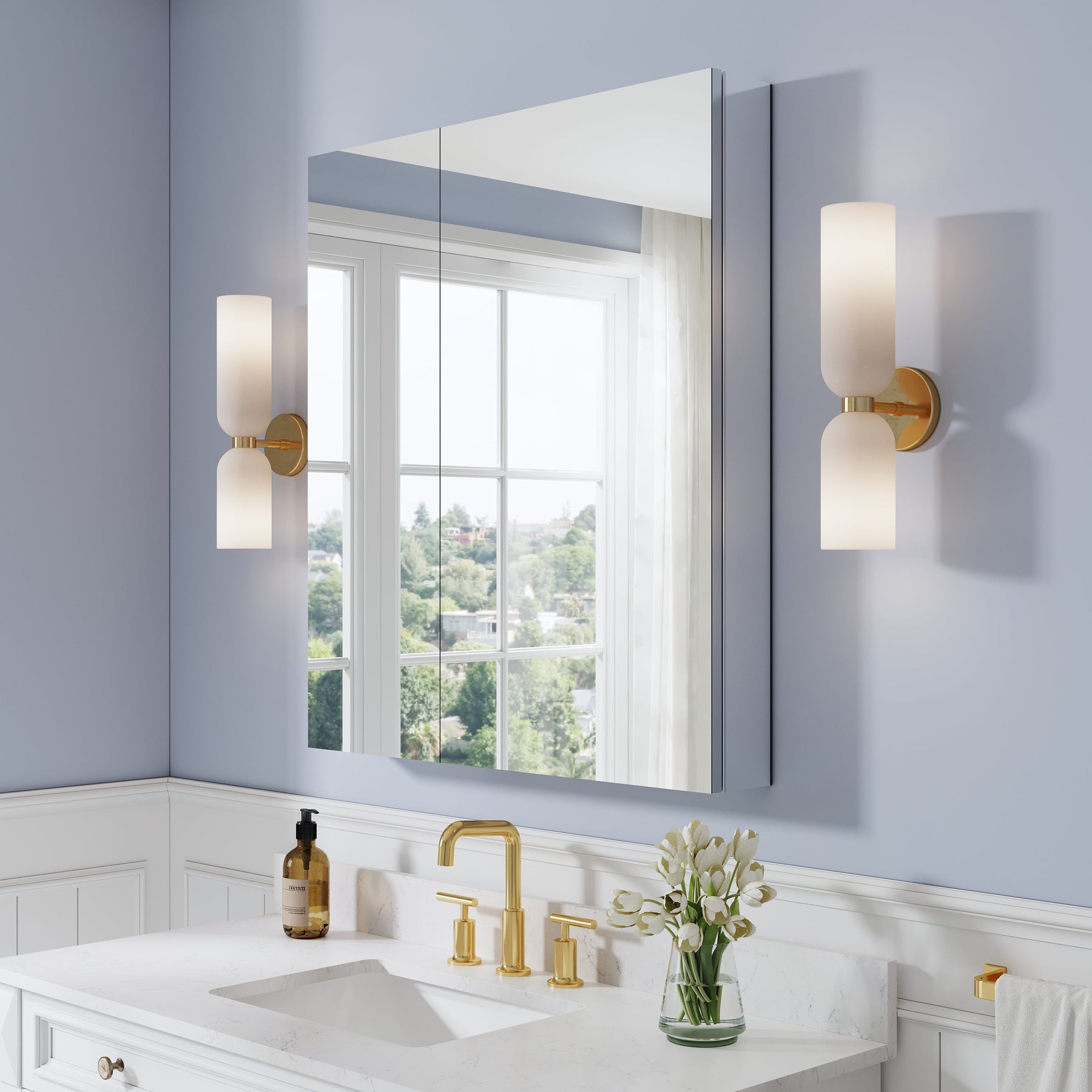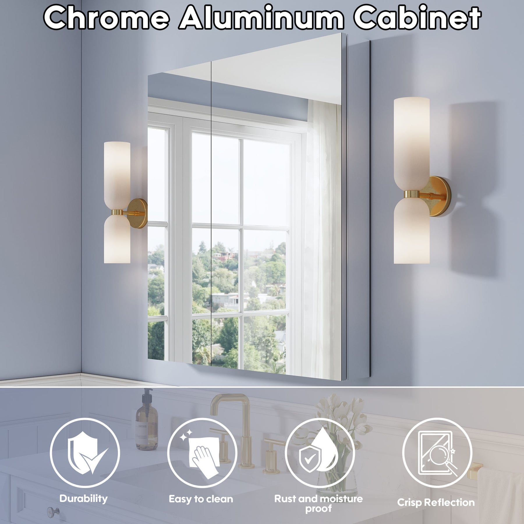 32 in. ×36 in. Copper-Free Tri-Views Mirror Medicine Cabinet with Adjustable Shelves and Dual Swing Doors