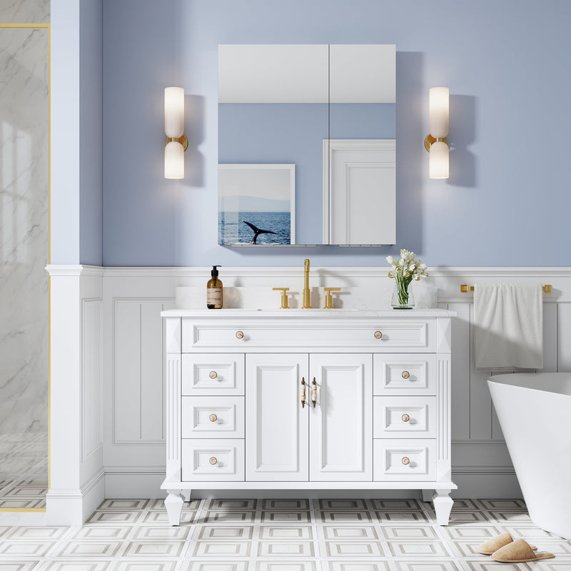 • Reversible Door Design: Copper-free tri-view mirror cabinet with 180° reversible installation, allowing the door to open from either the left or right side for flexible bathroom layouts.