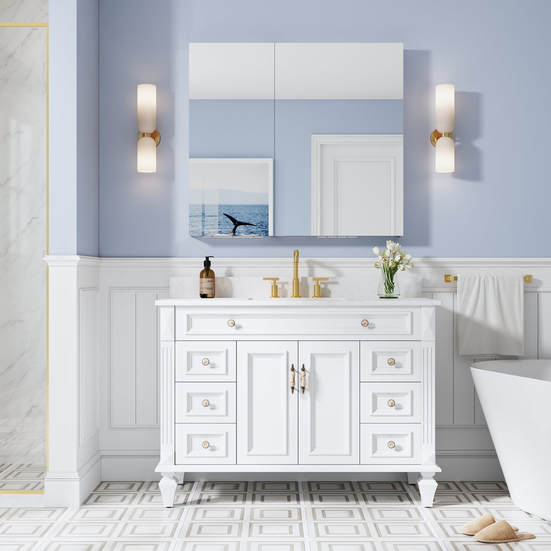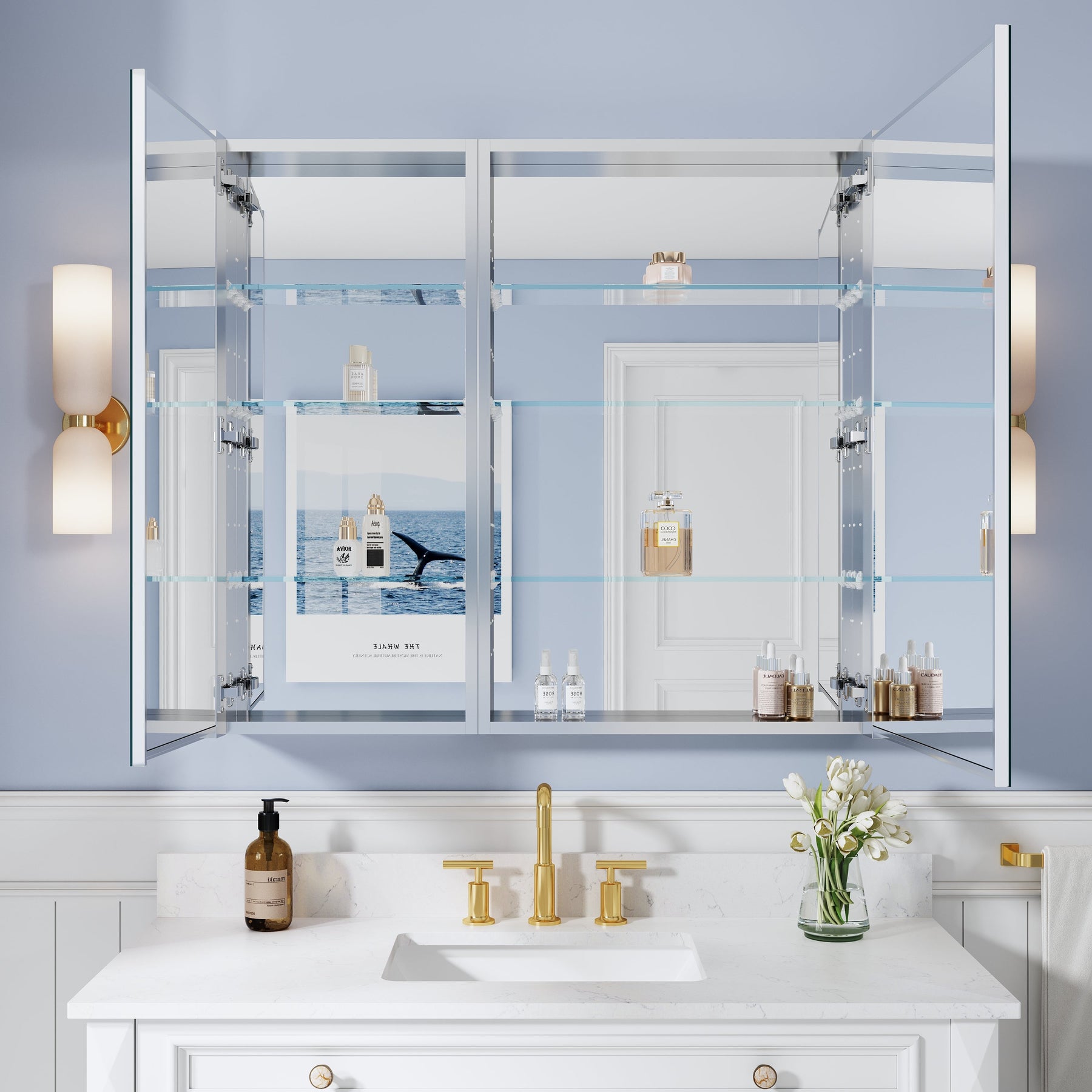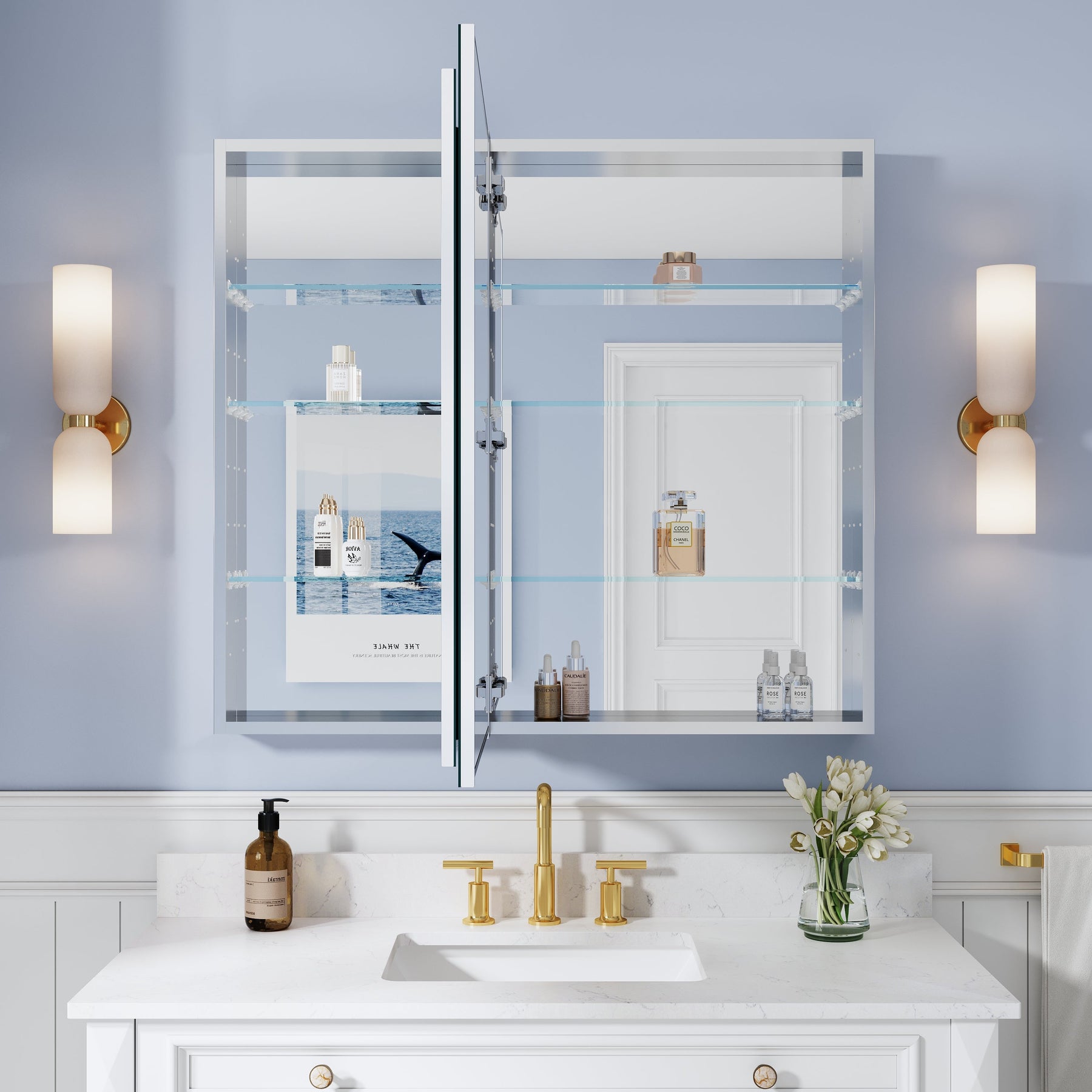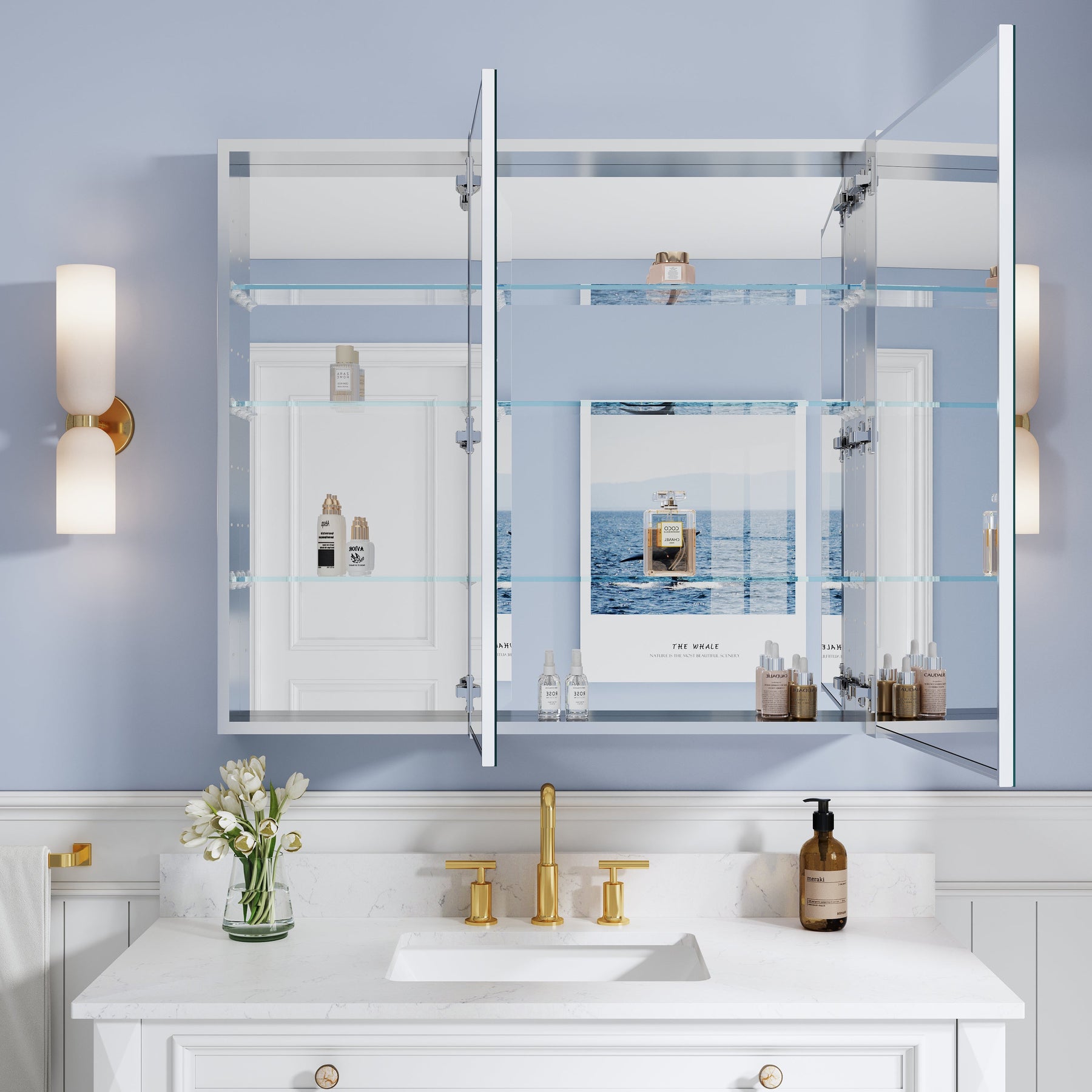 - Reversible Door Design: Copper-free tri-view mirror cabinet with 180° reversible installation, allowing the door to open from either the left or right side for flexible bathroom layouts.
