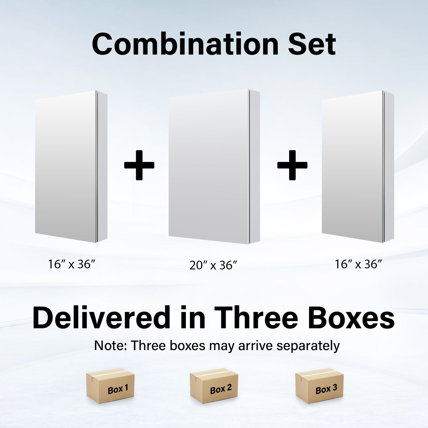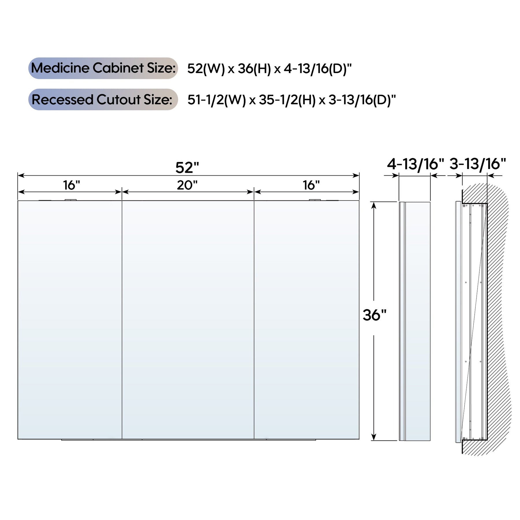 52 in. ×36 in. Copper-Free Tri-Views Mirror Medicine Cabinet with Adjustable Shelves and 3 Doors