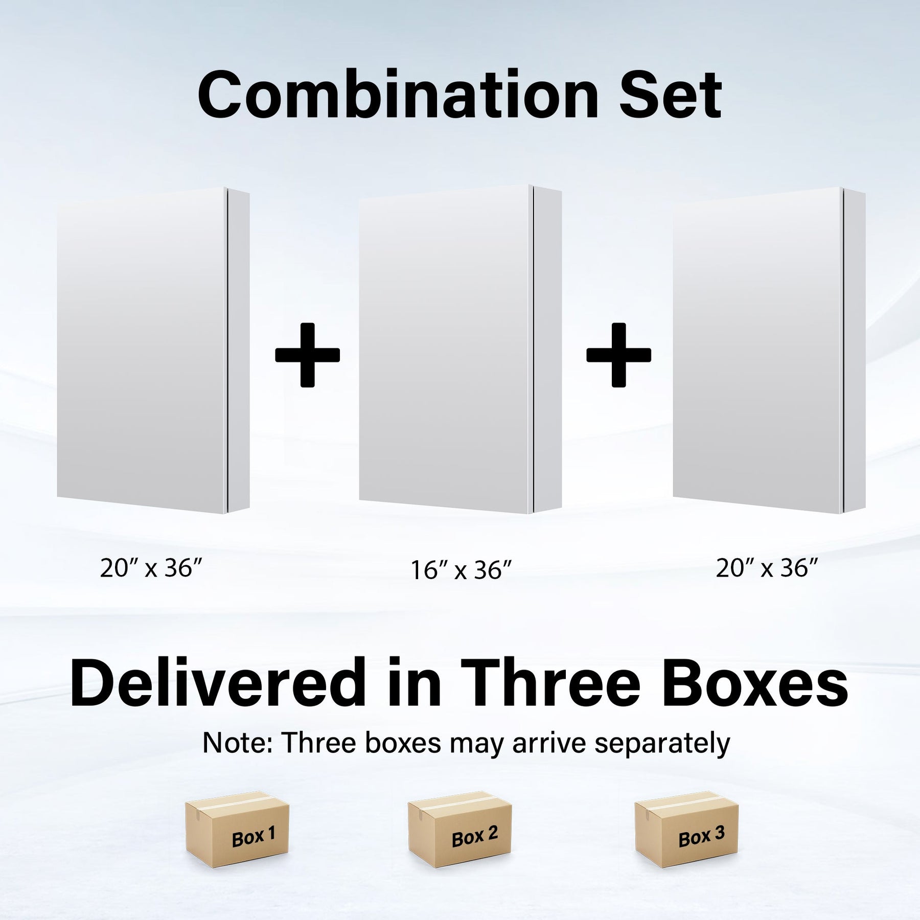 56 in. ×36 in. Copper-Free Tri-Views Mirror Medicine Cabinet with Adjustable Shelves and 3 Doors