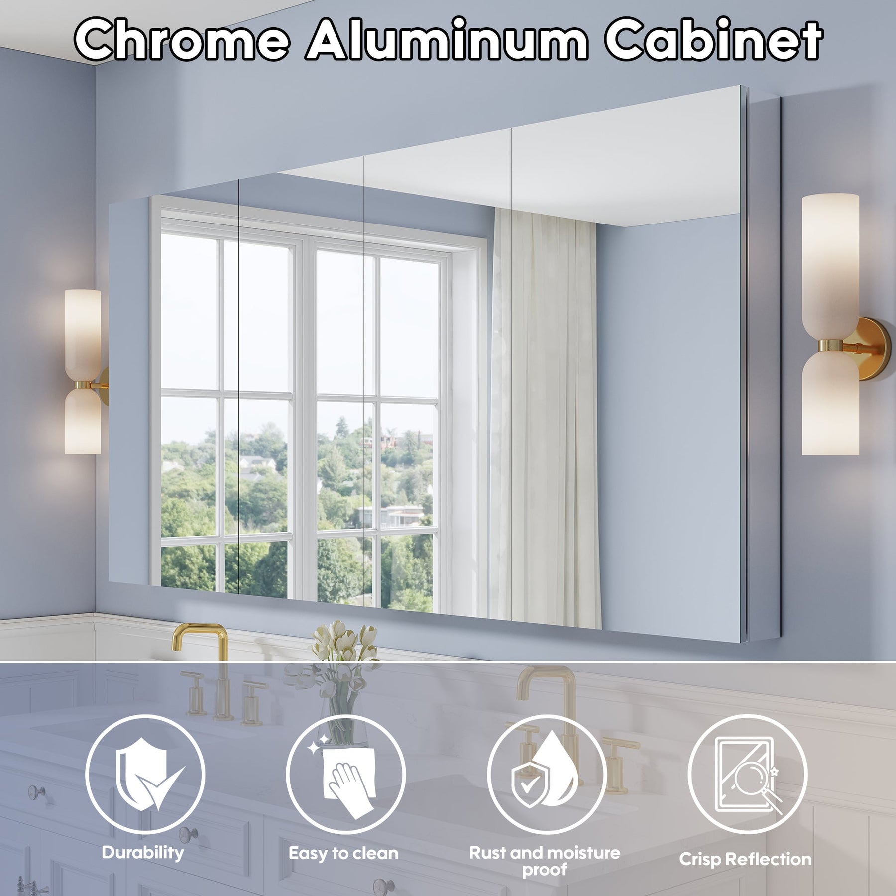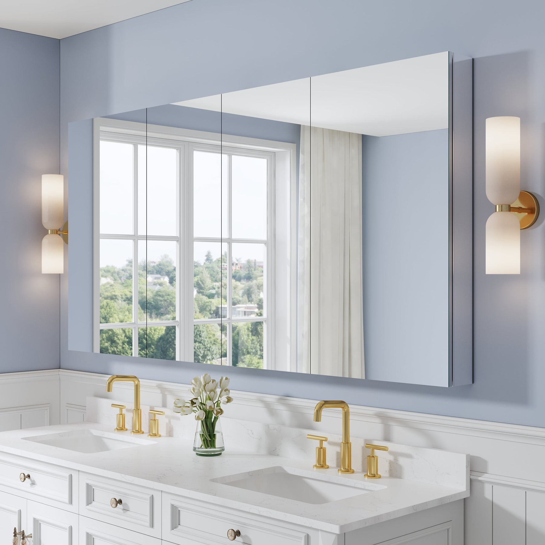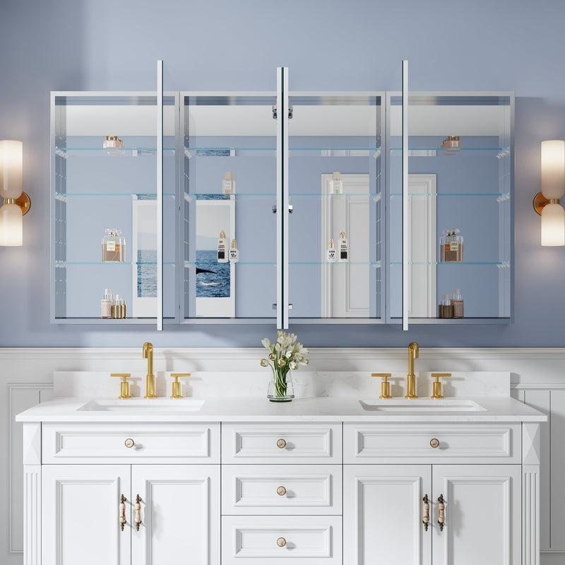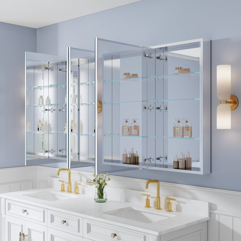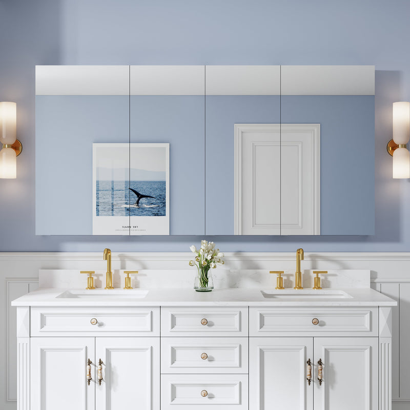 72 in. ×36 in. Copper-Free Tri-Views Mirror Medicine Cabinet with Adjustable Shelves and 4 Swing Doors