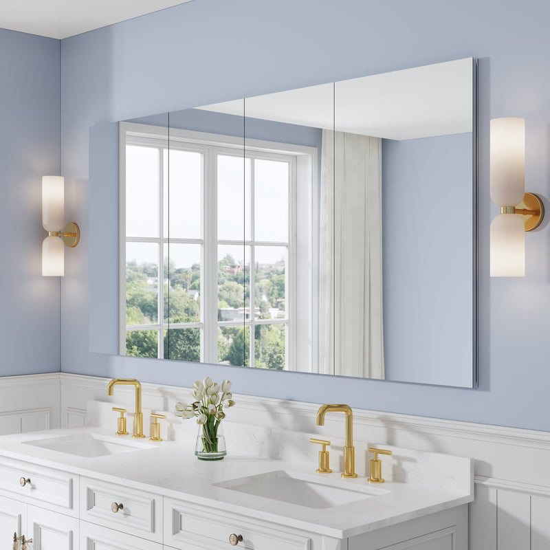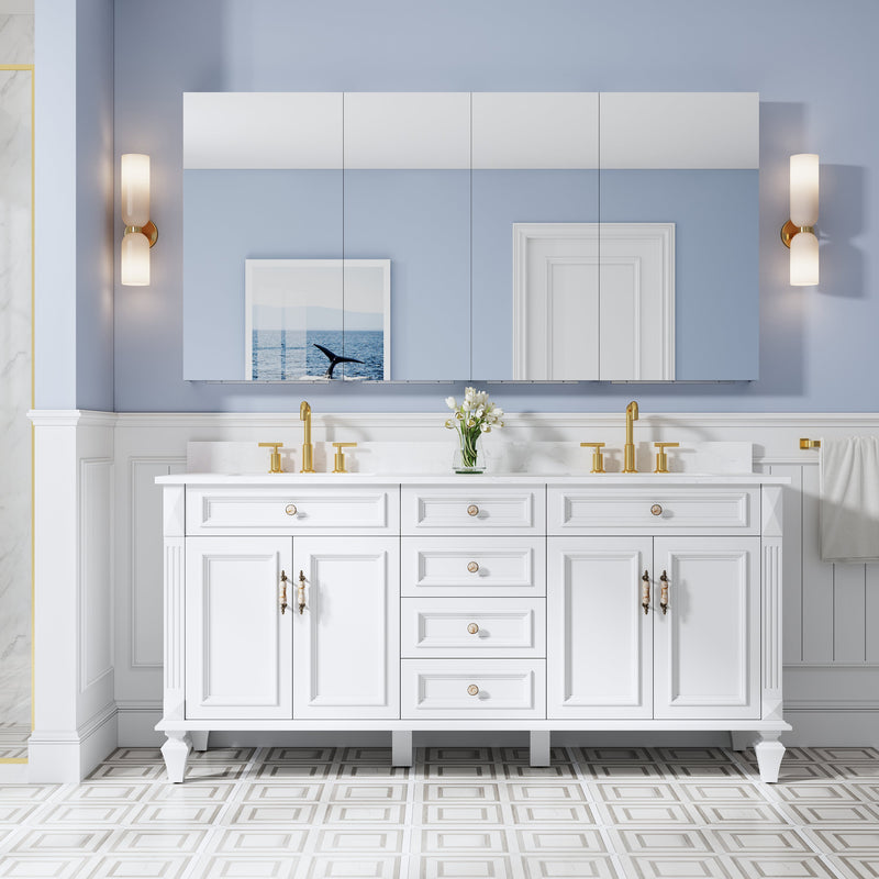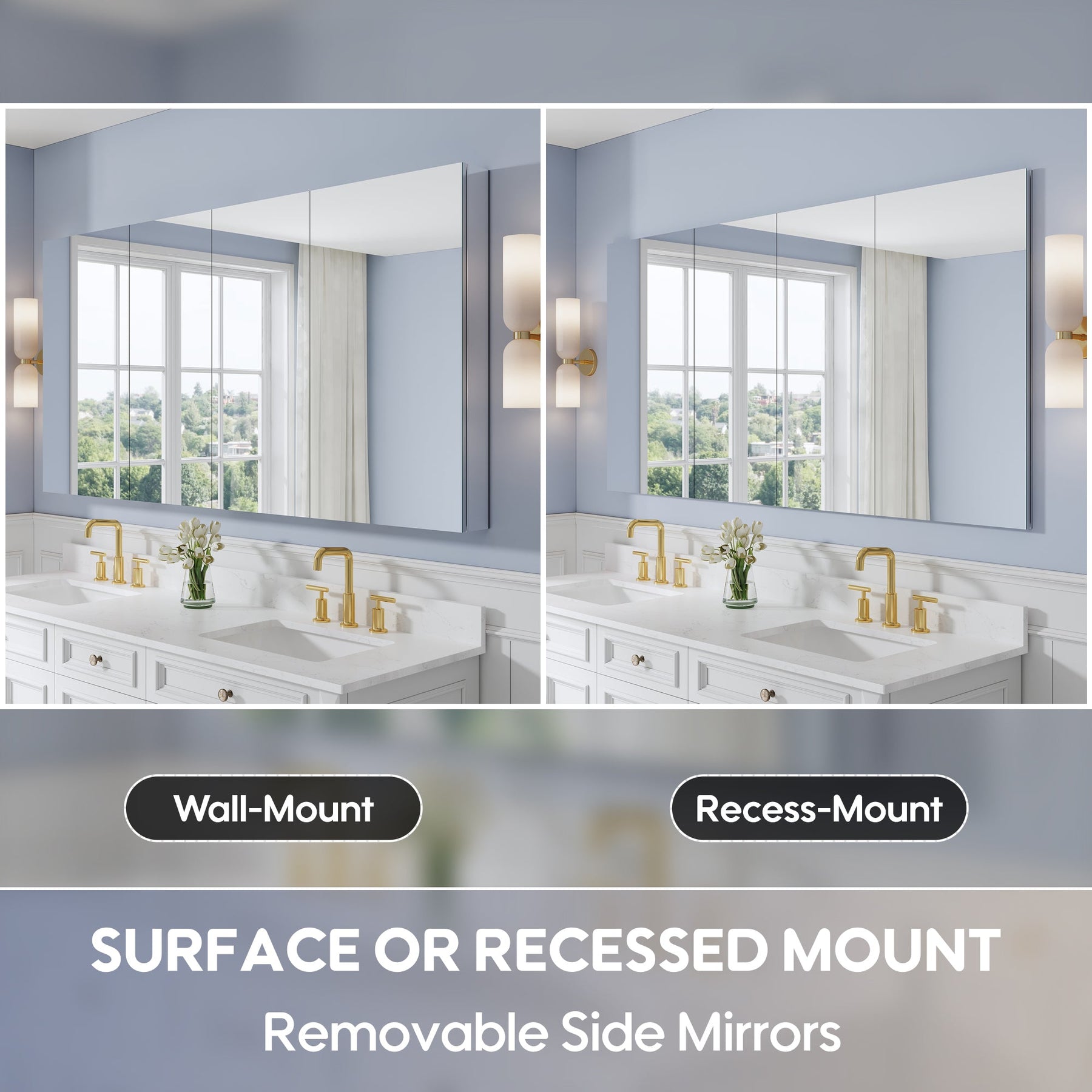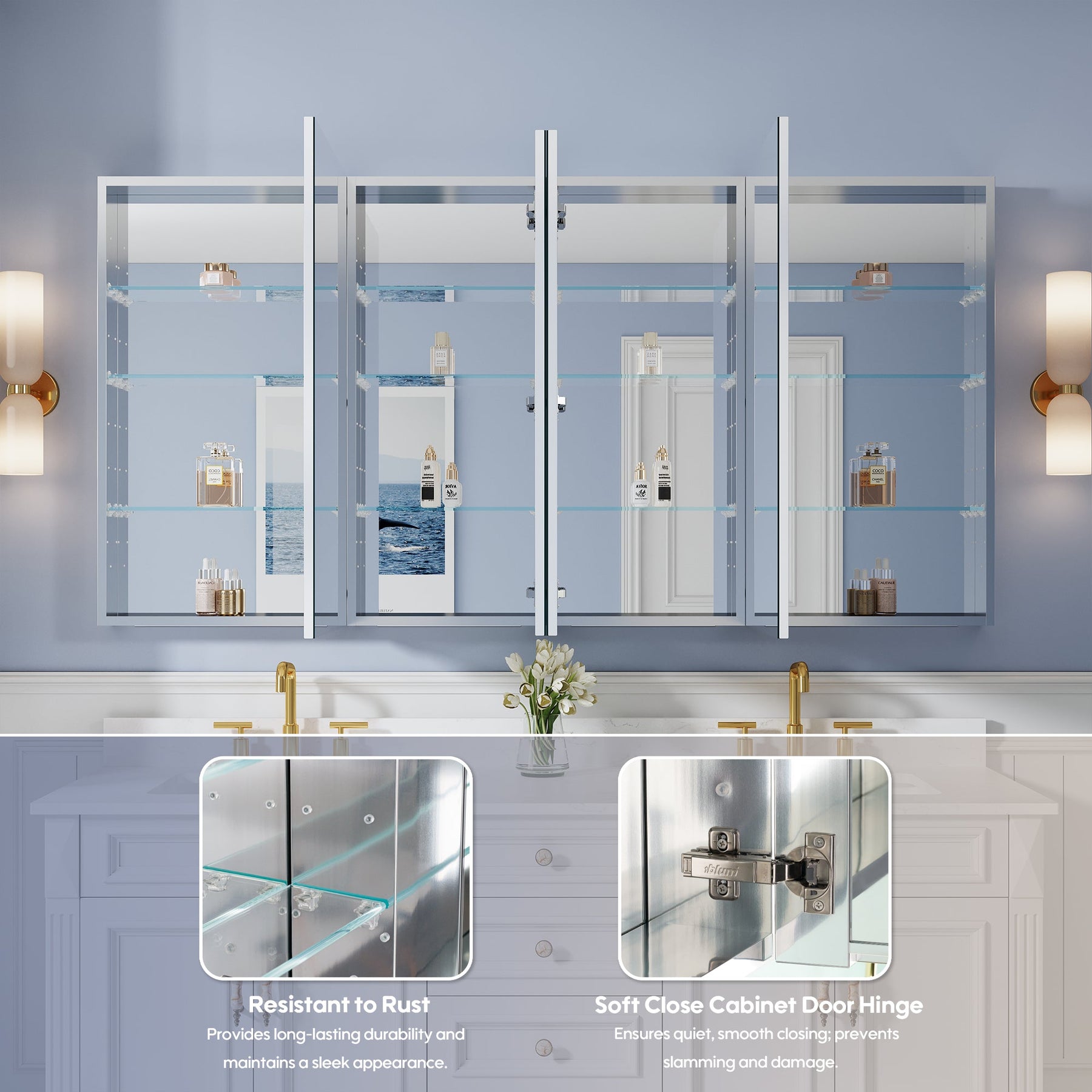 72 in. ×36 in. Copper-Free Tri-Views Mirror Medicine Cabinet with Adjustable Shelves and 4 Swing Doors