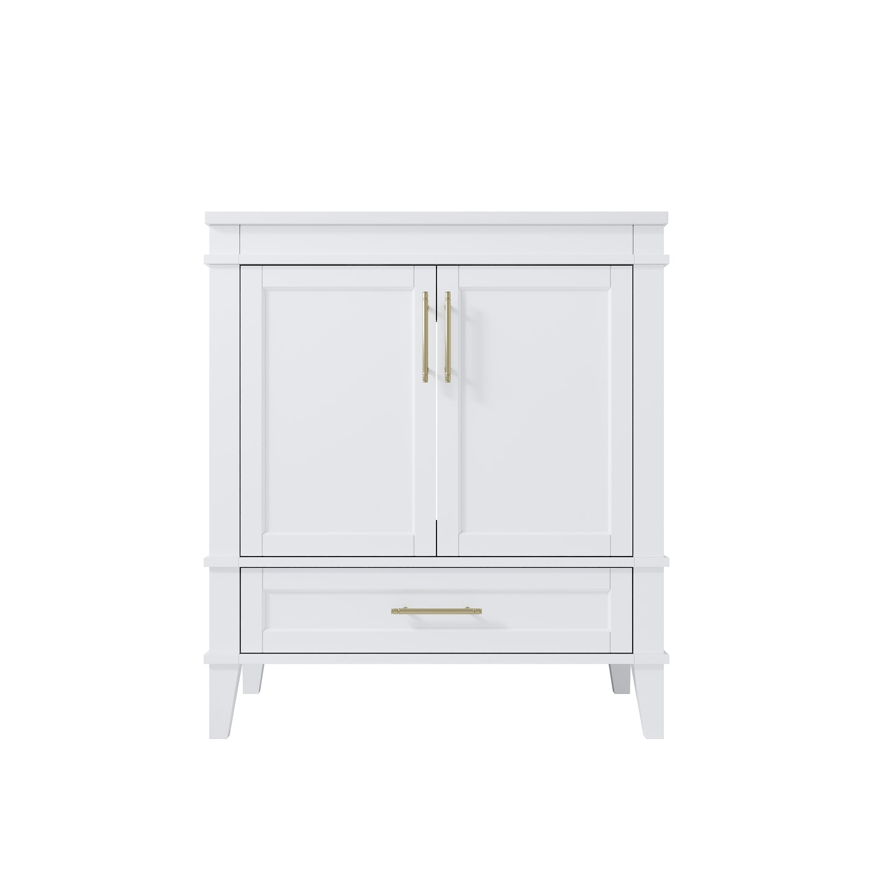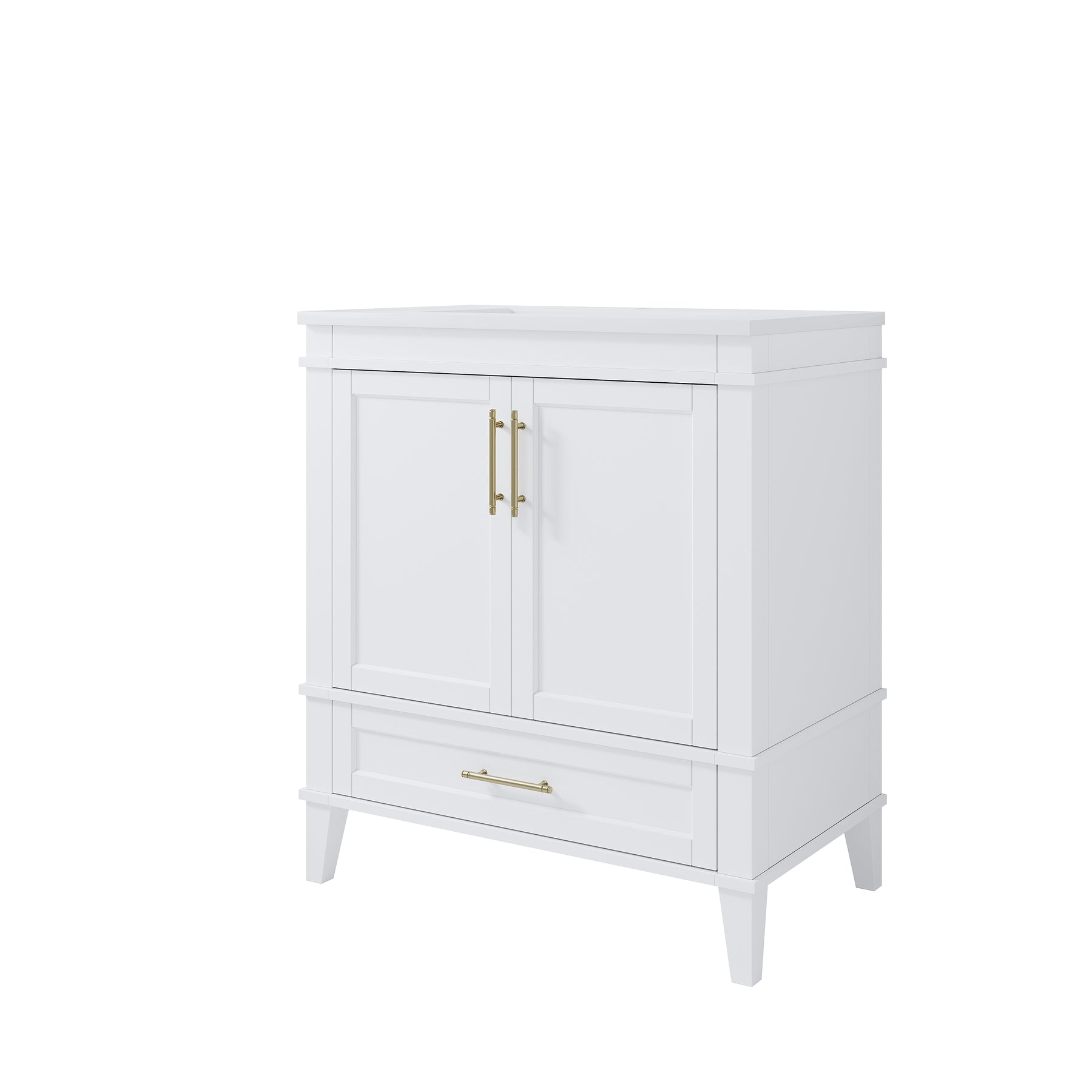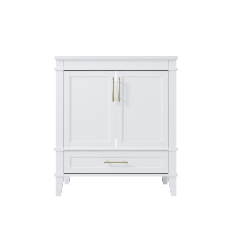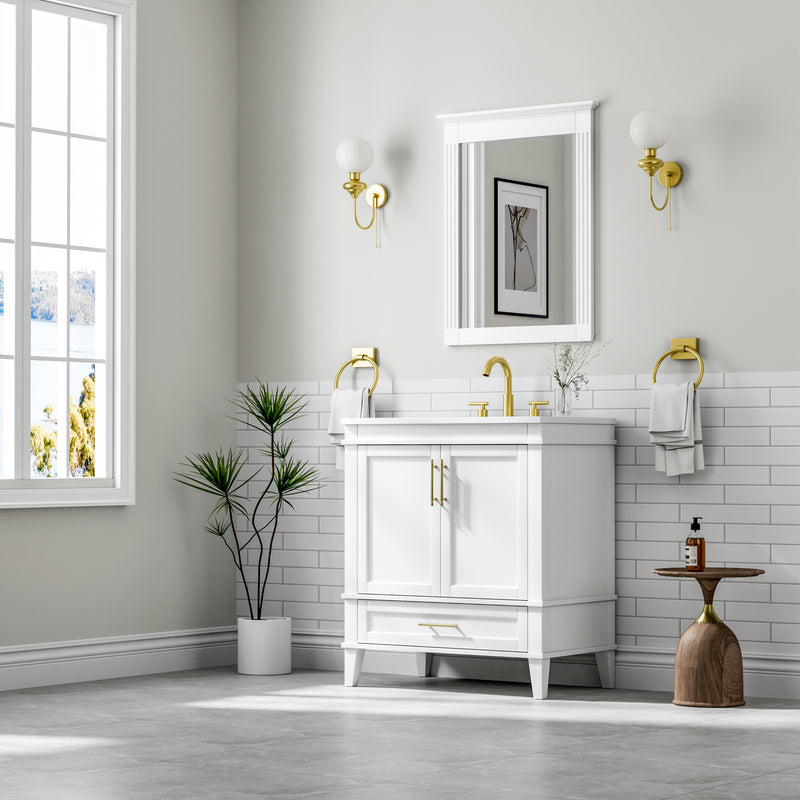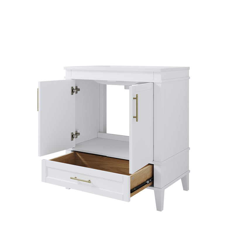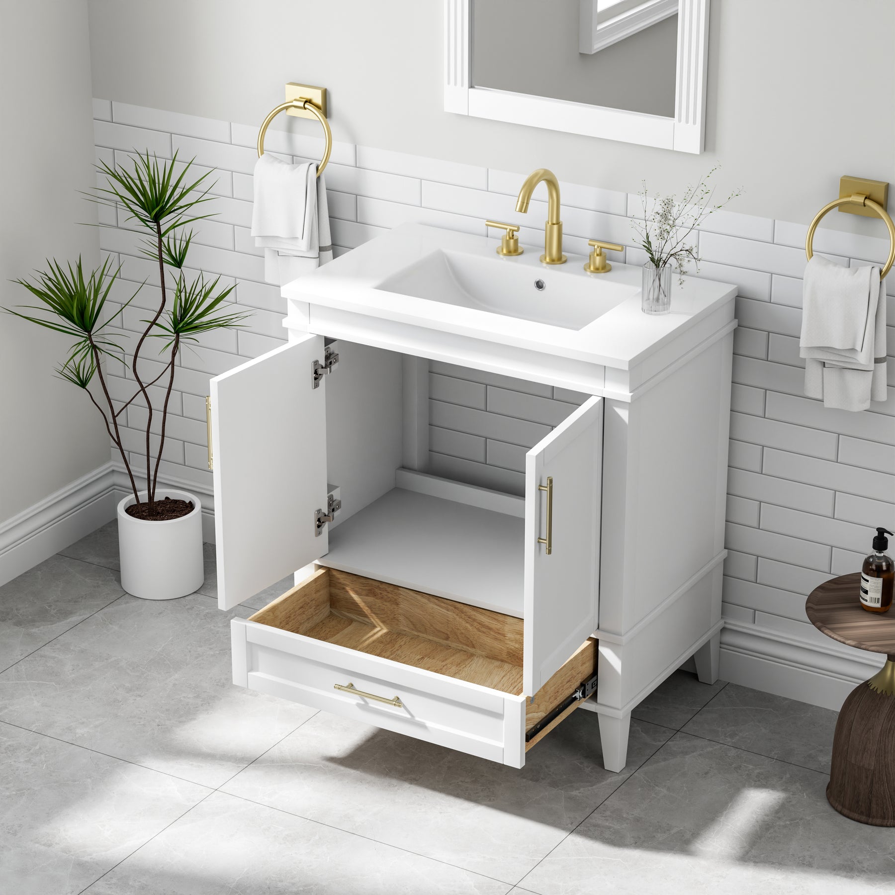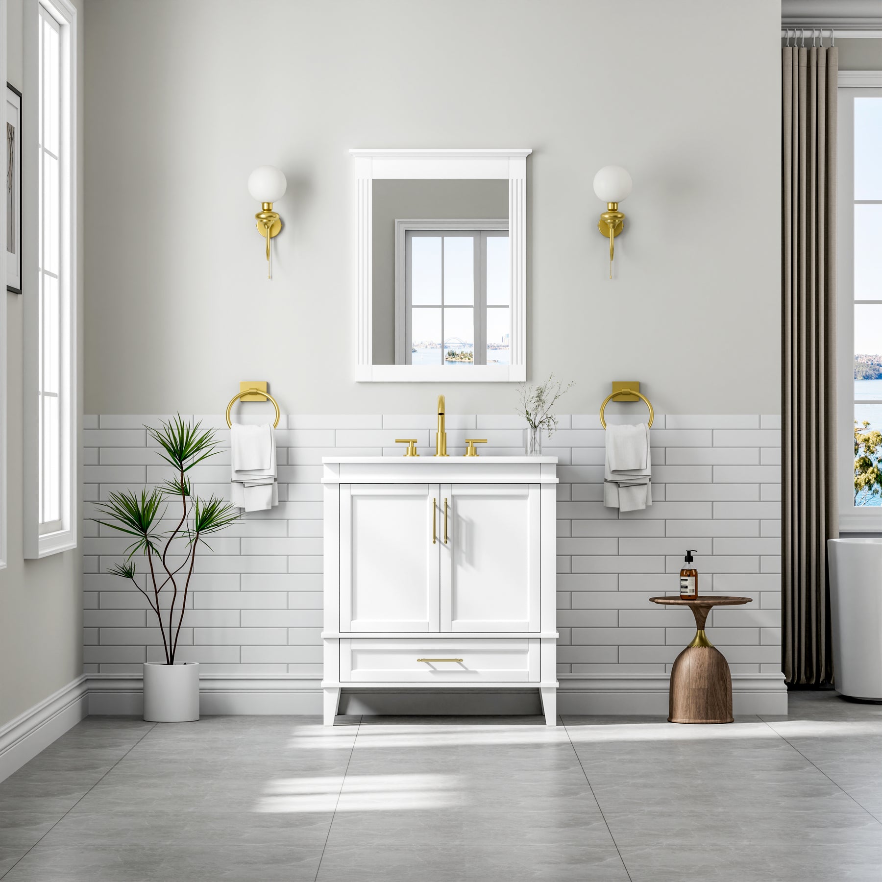 30 Inch Solid Wood Bathroom Vanity with cUPC Ceramic Sink, Gold Anodized Aluminum Handles, and Soft-Close DTC Hinges