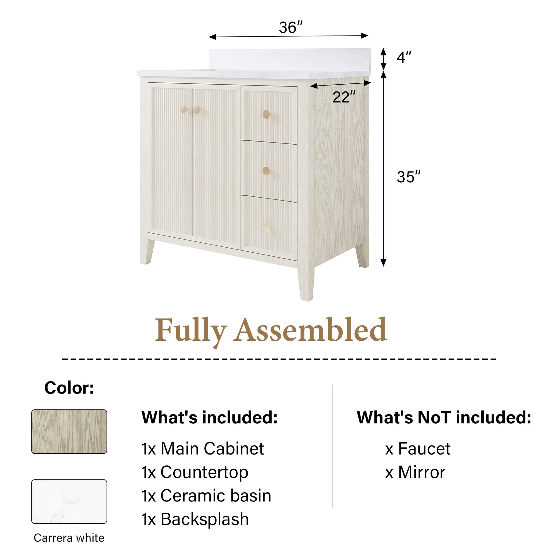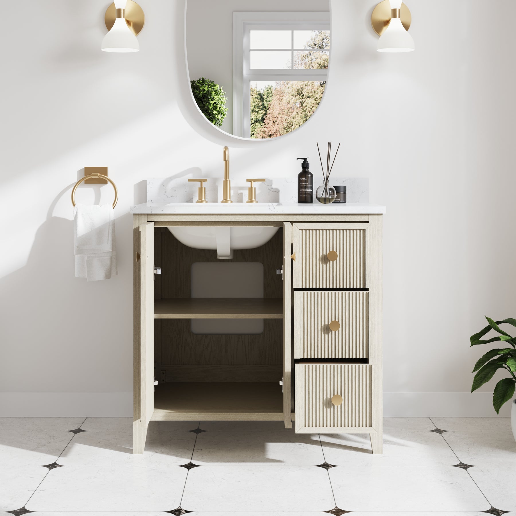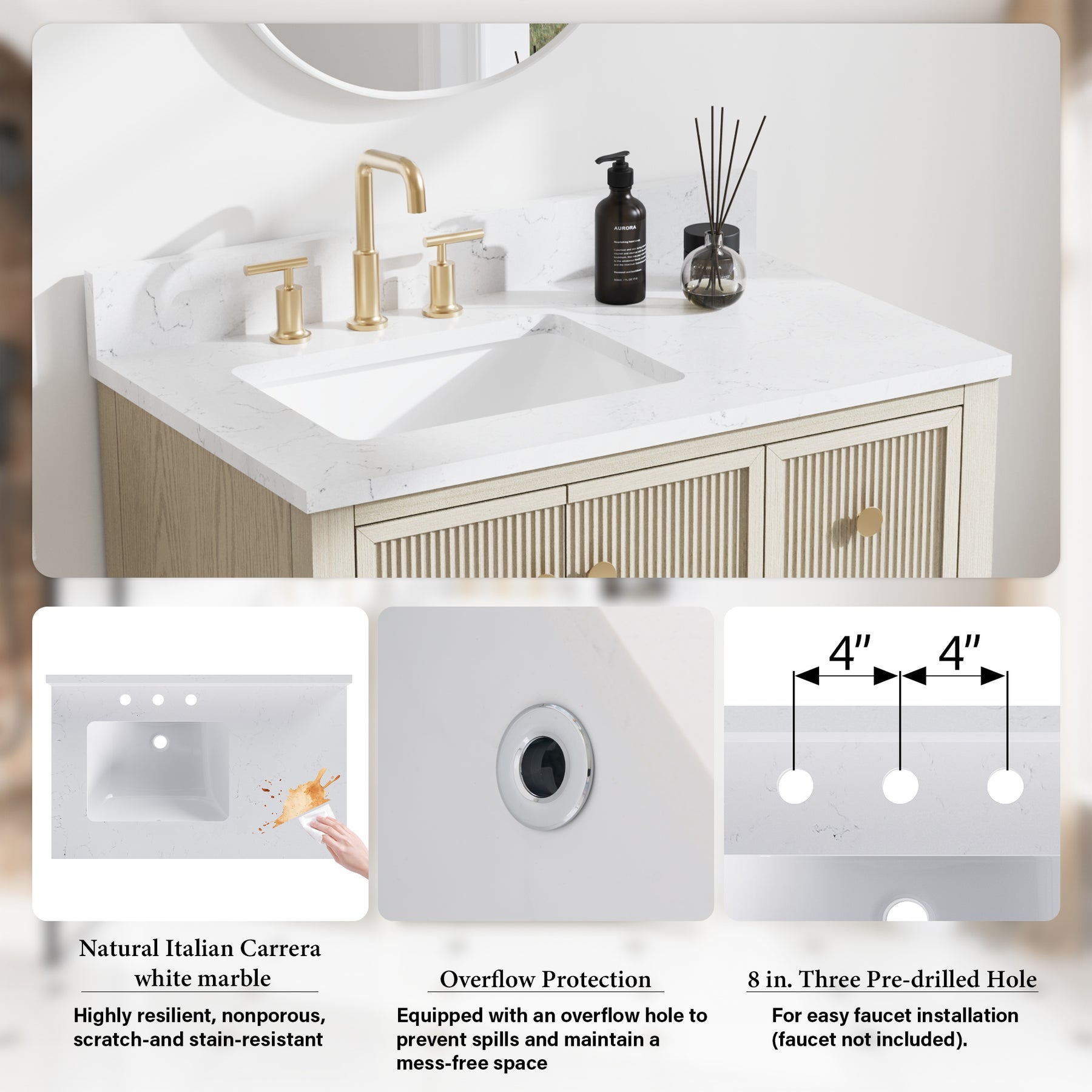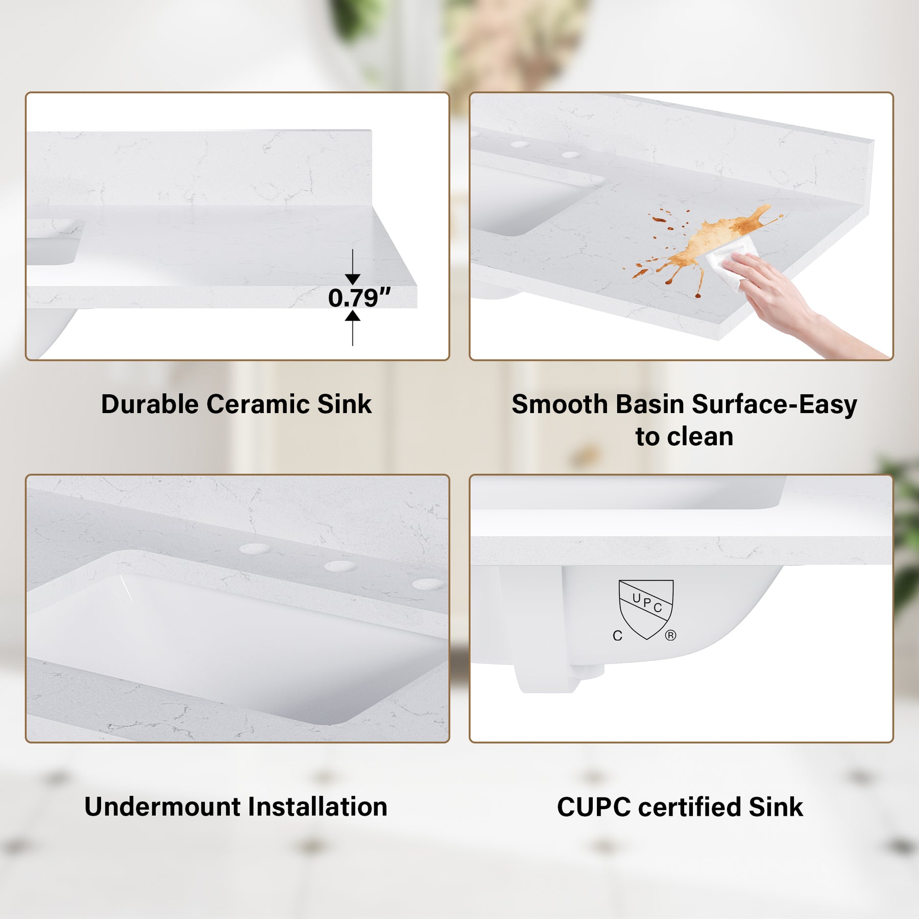- High-Quality Quartz Countertop: Comes with a durable quartz vanity top featuring a sleek single undermount sink, offering superior scratch resistance, easy cleaning, and a premium modern aesthetic.
