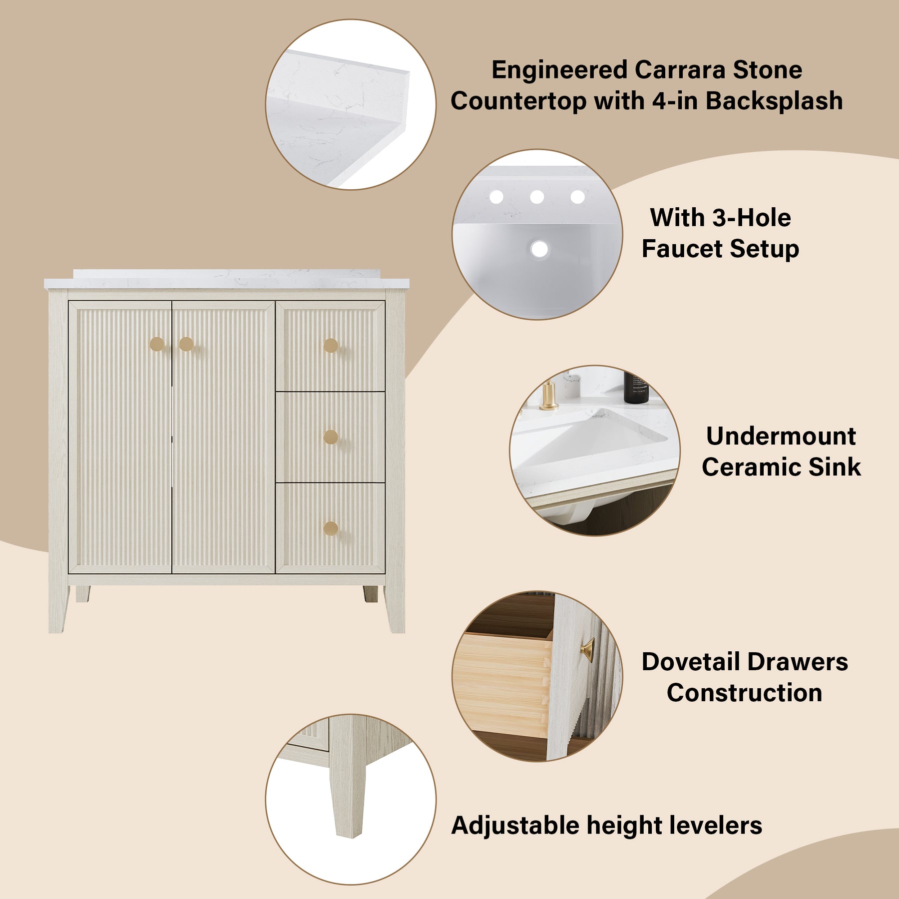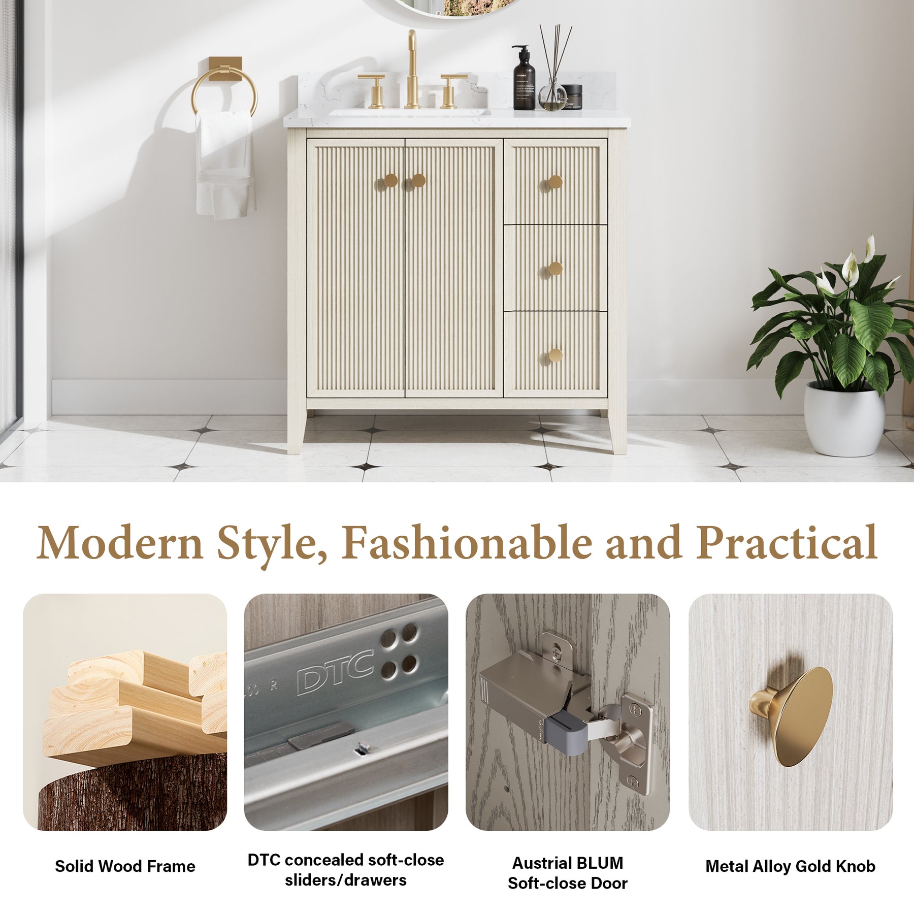 - Thoughtful Storage Design with Dovetail Drawers: Designed with 2 doors + 3 dovetail-constructed drawers, providing ample organized storage space for your daily bathroom essentials.