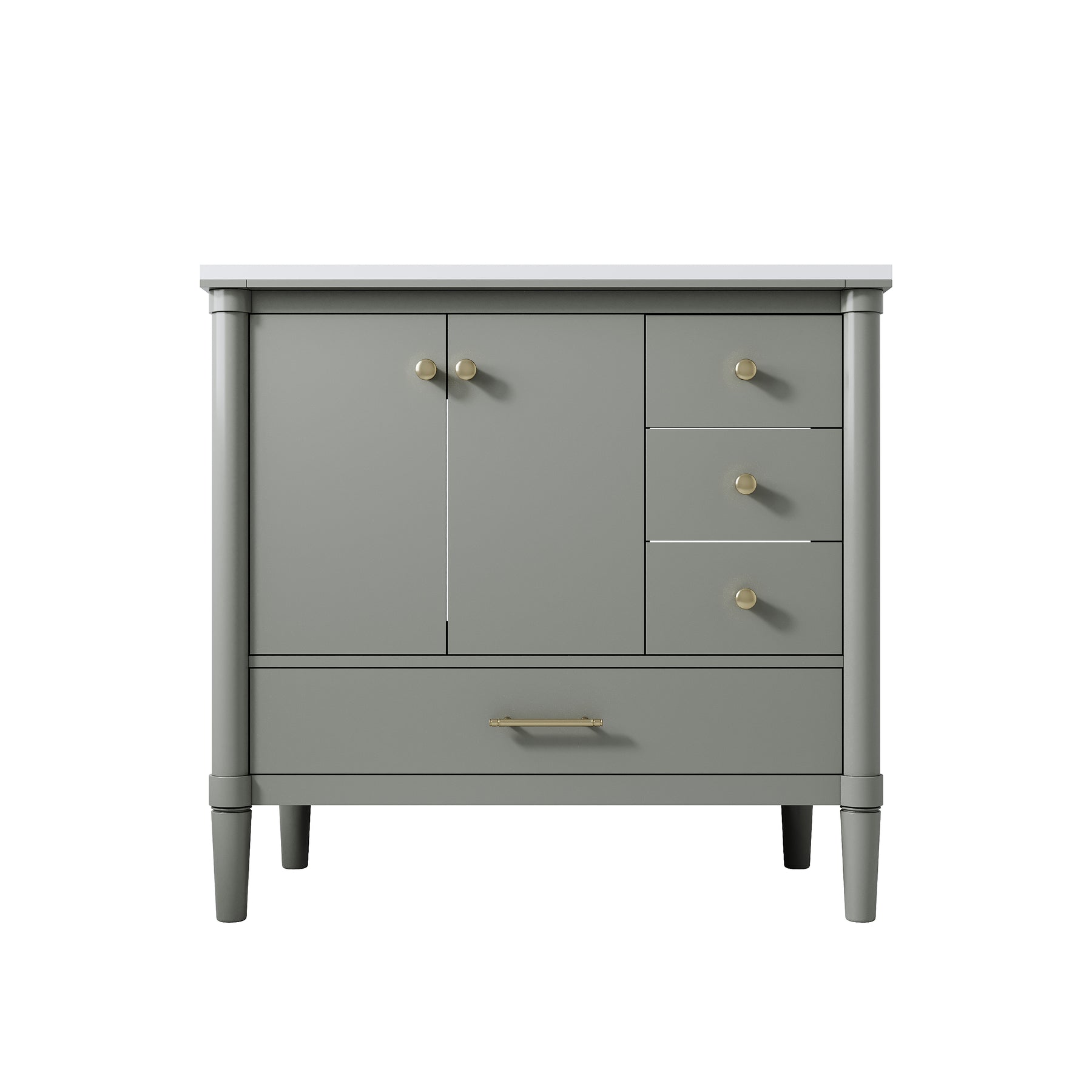36 inch Bathroom Vanity with Single Sink, Solid Wood Freestanding Bathroom Cabinet with Soft-Closing Doors & 4 Drawers, Green