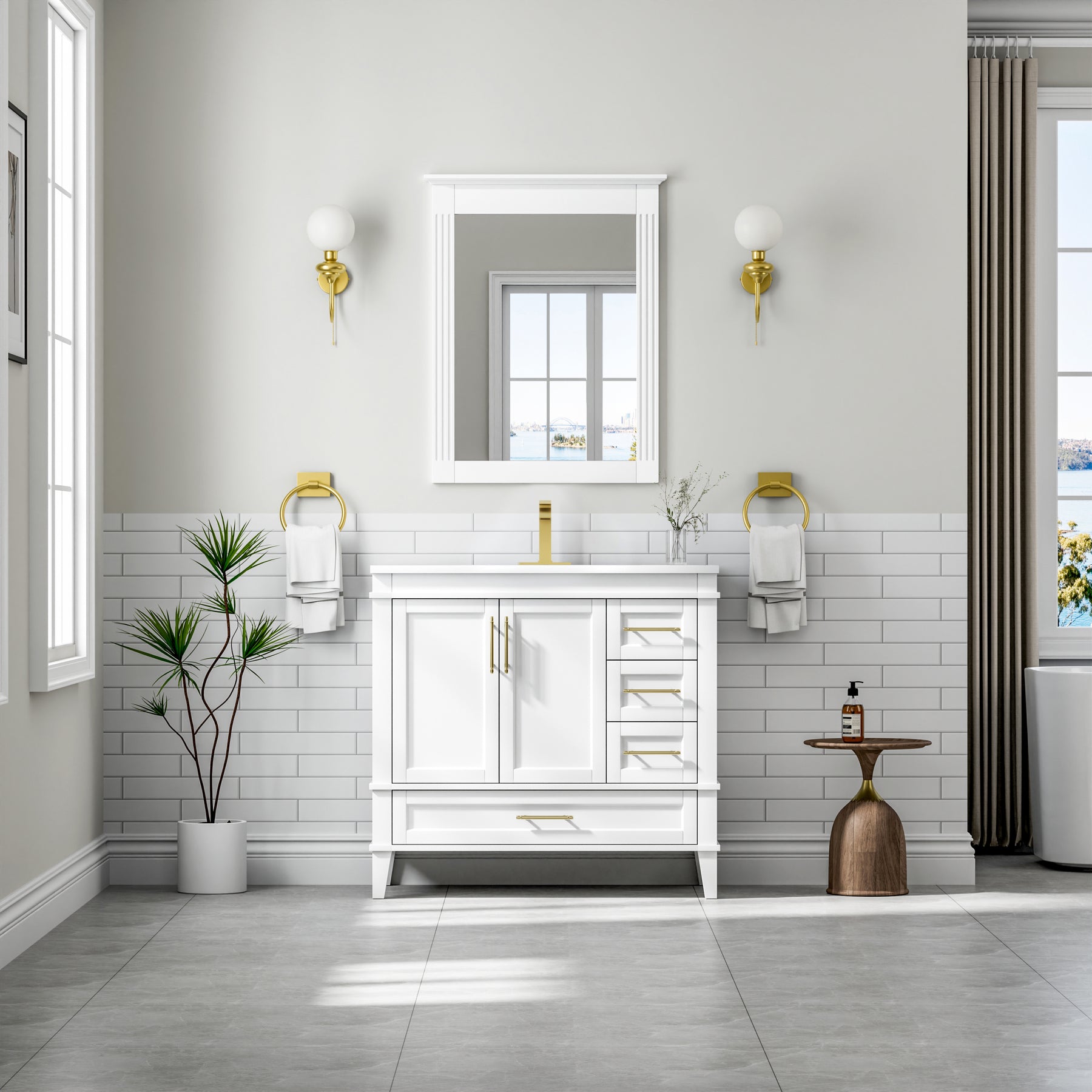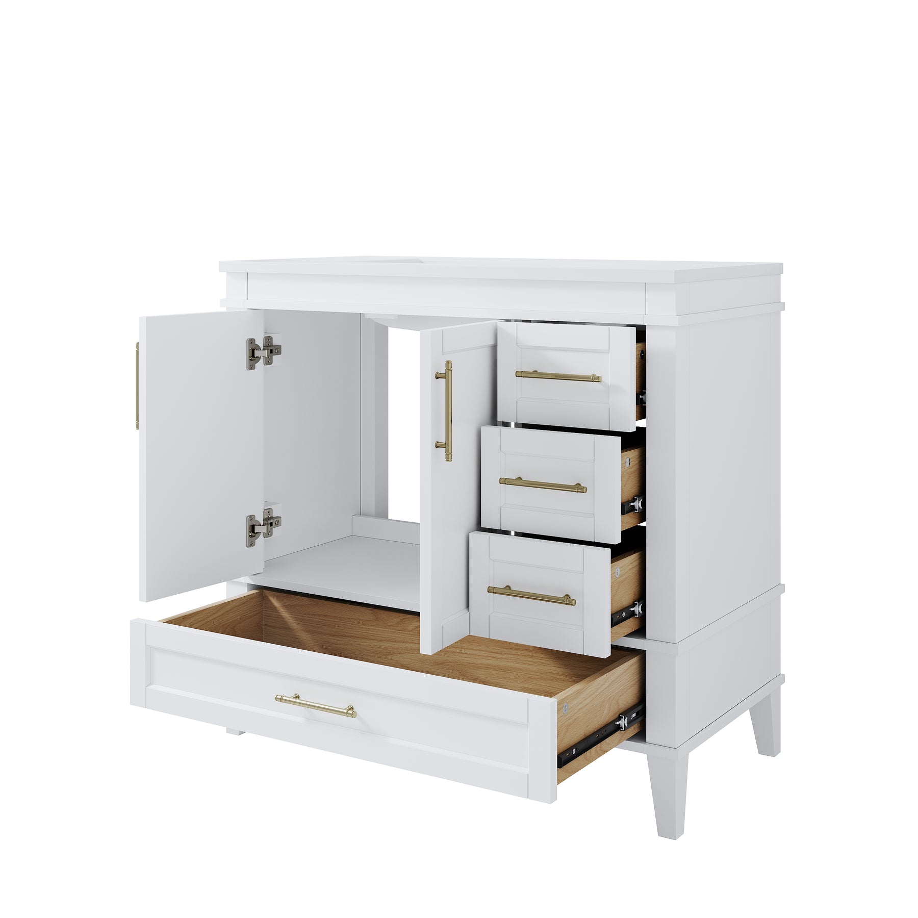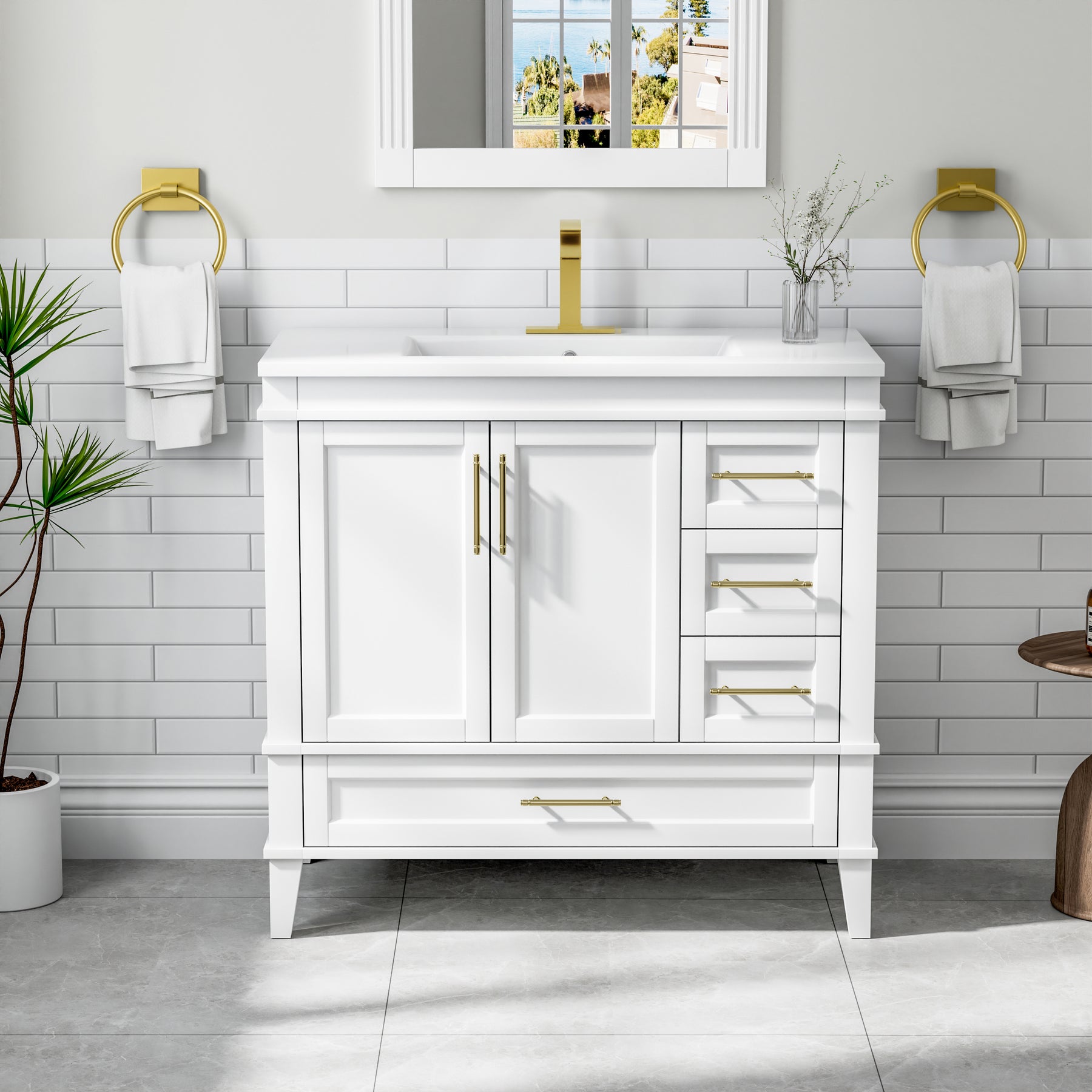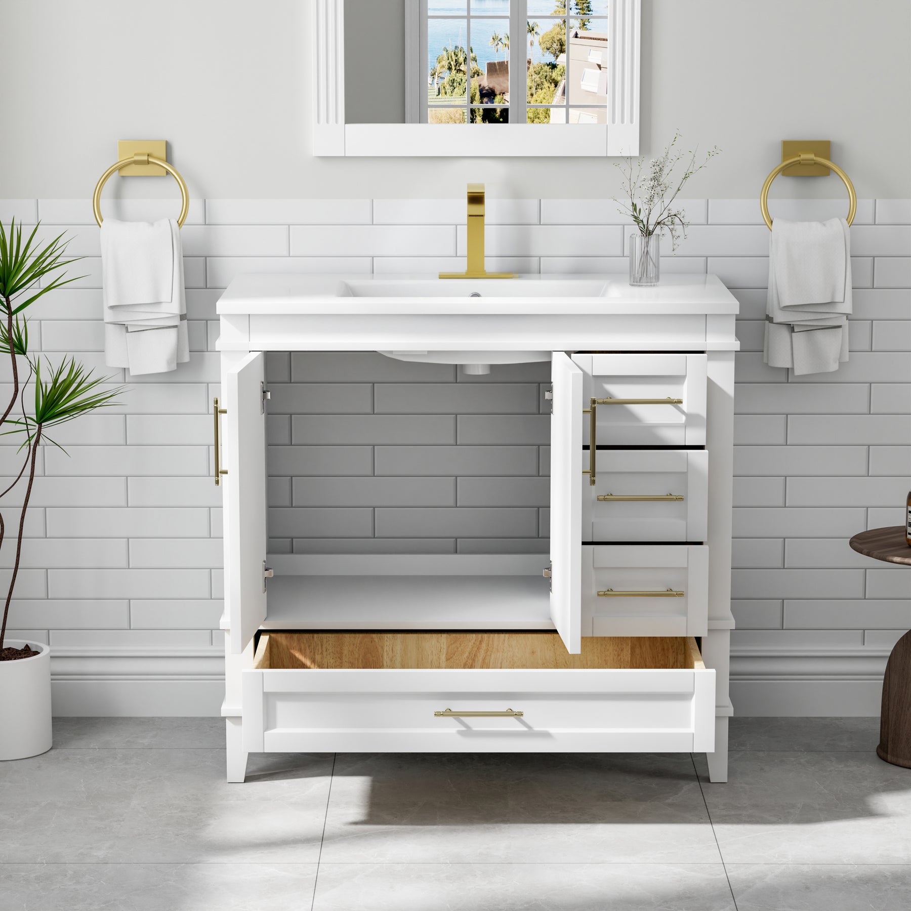- Maximize Storage Space: The white bathroom vanity with ceramic basin features 4 drawers and 1 cabinet, providing convenient storage for daily essentials such as tissues, towels, and shower gel. Easy to access and well-organized, it offers ample storage even in compact spaces.