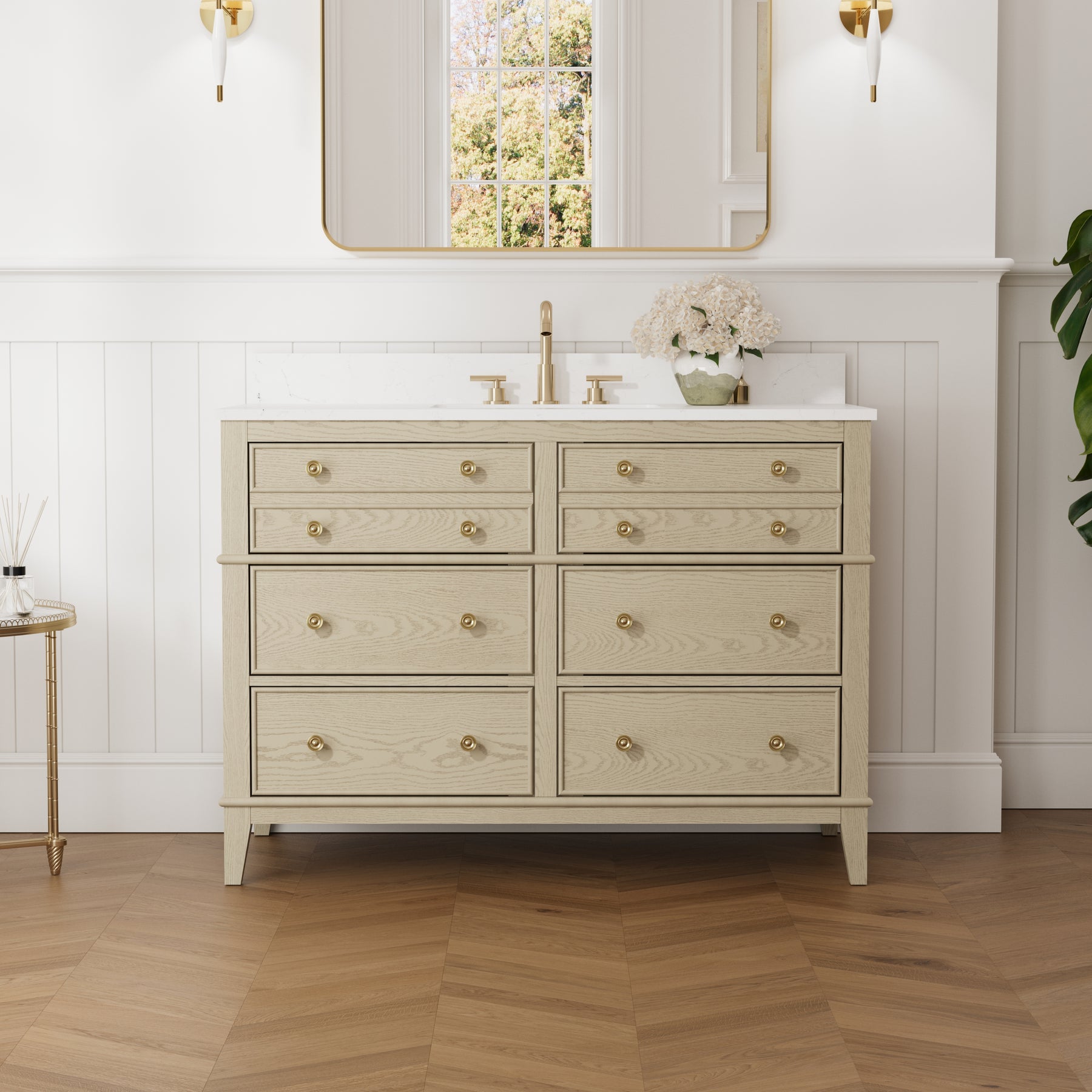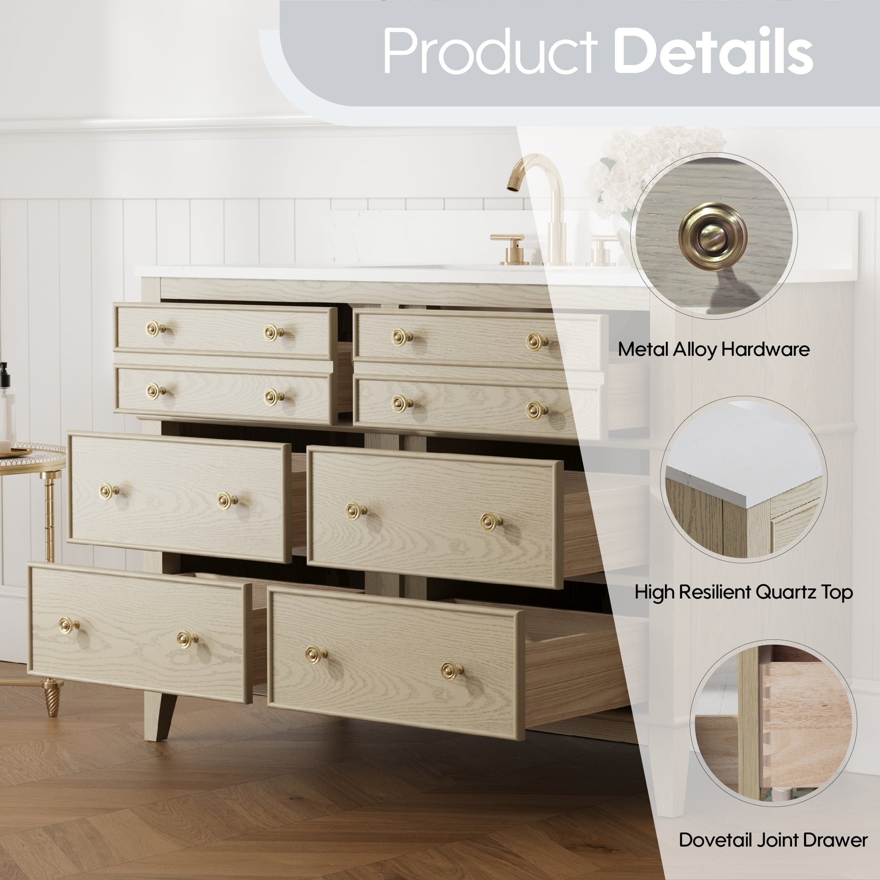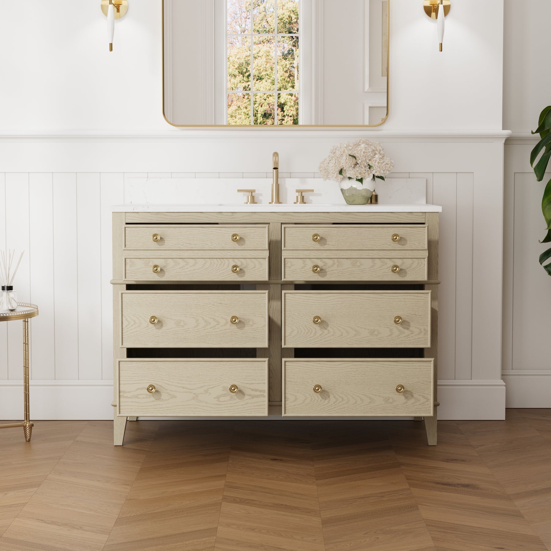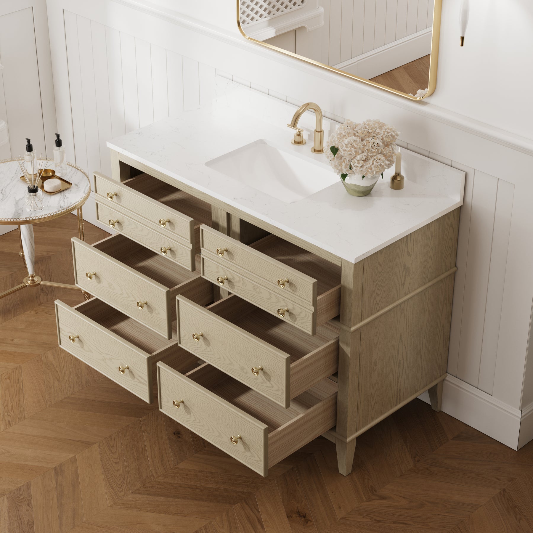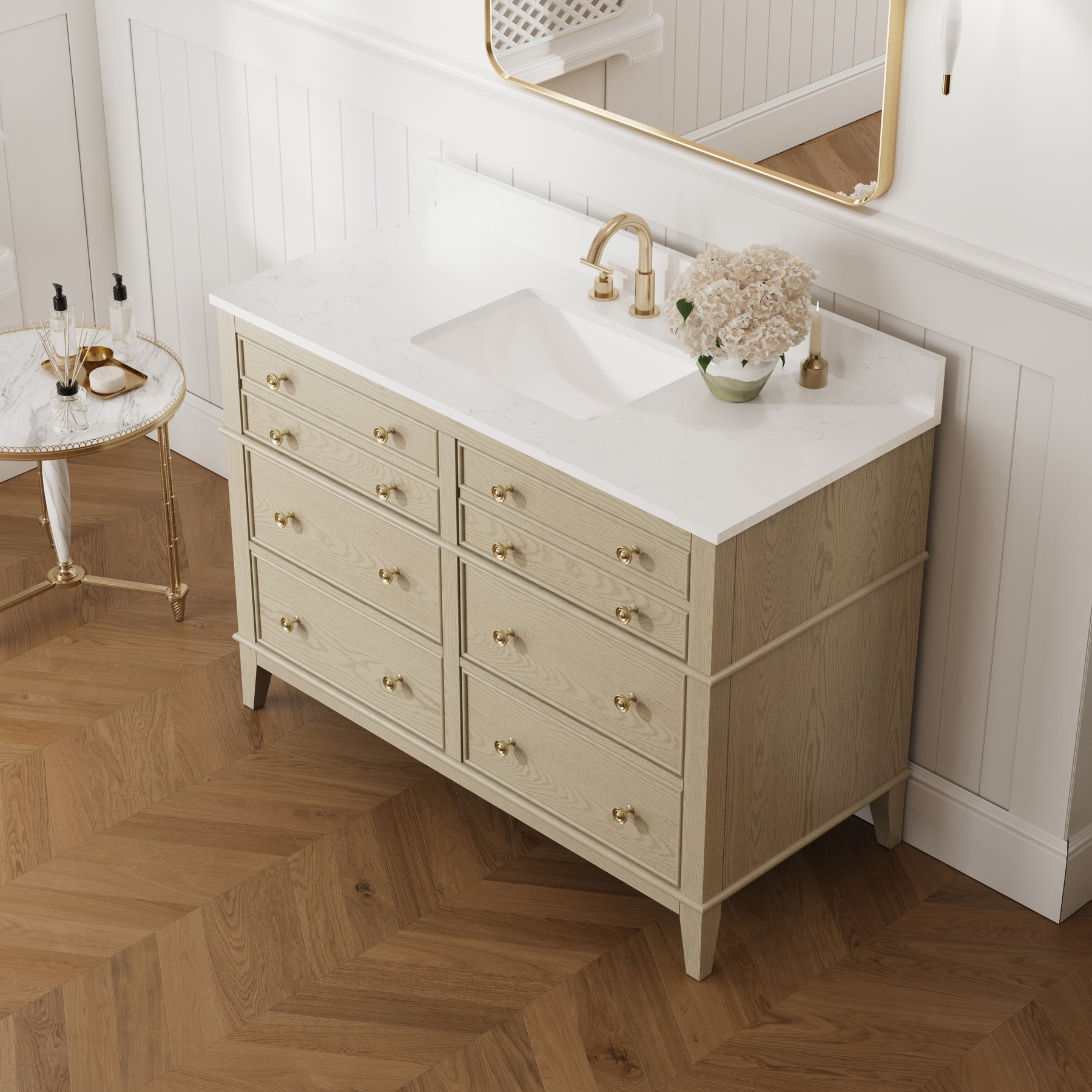 - Unique Craftsmanship: 48" bathroom vanity for bathroom offers a clean, contemporary look while its capacious size offers ample storage space for accessories and other bathroom must-haves. Stylish metal alloy hardware provide additional allure, transforming your décor.
