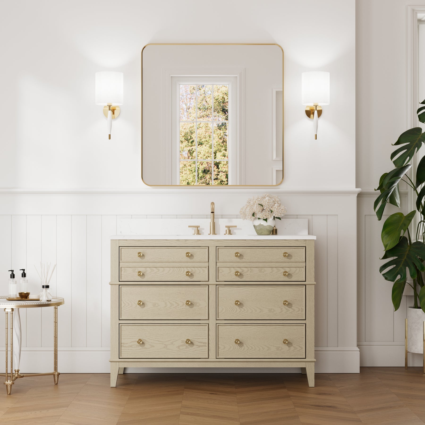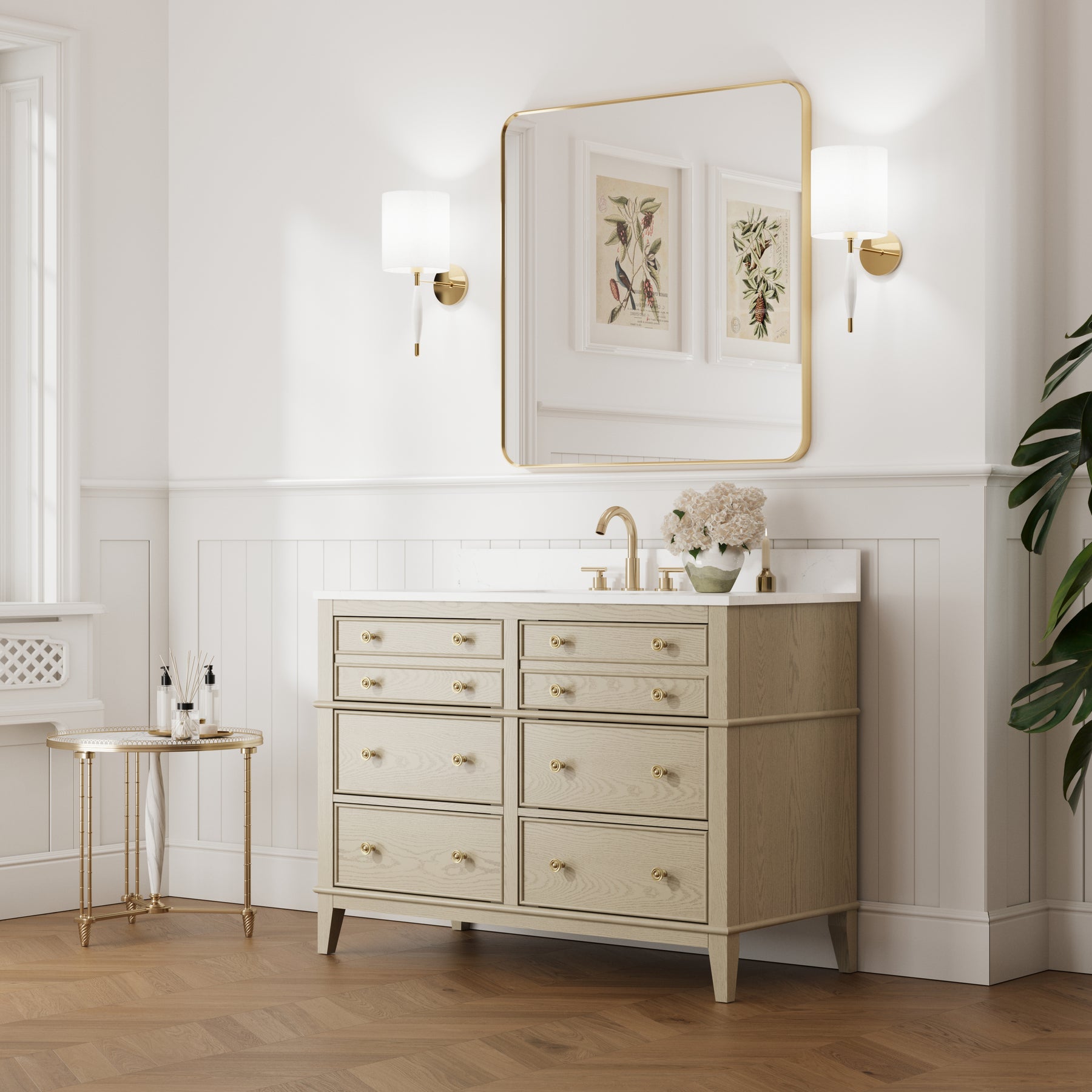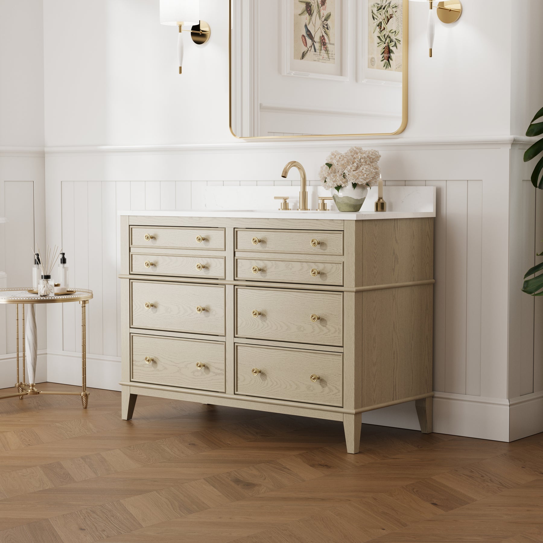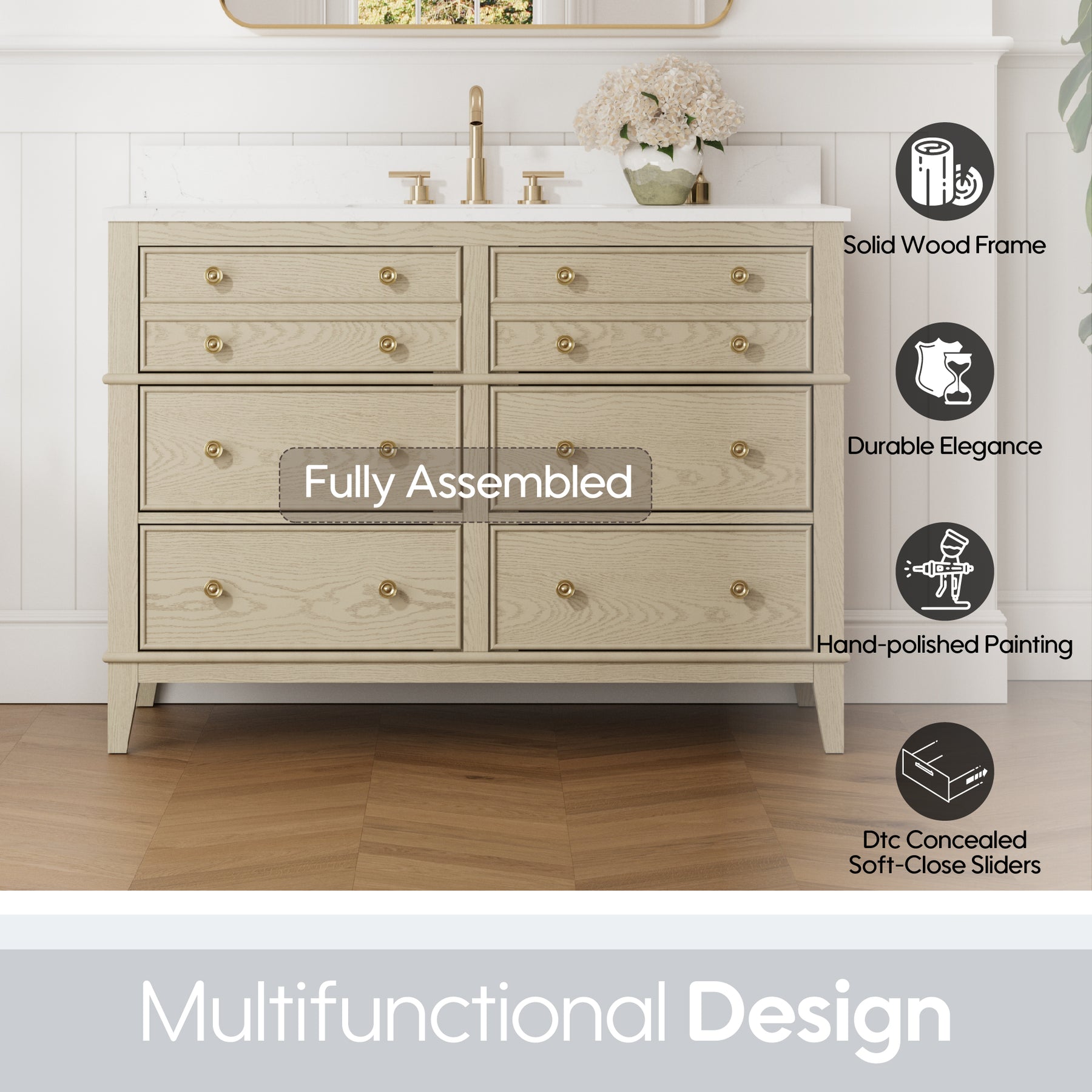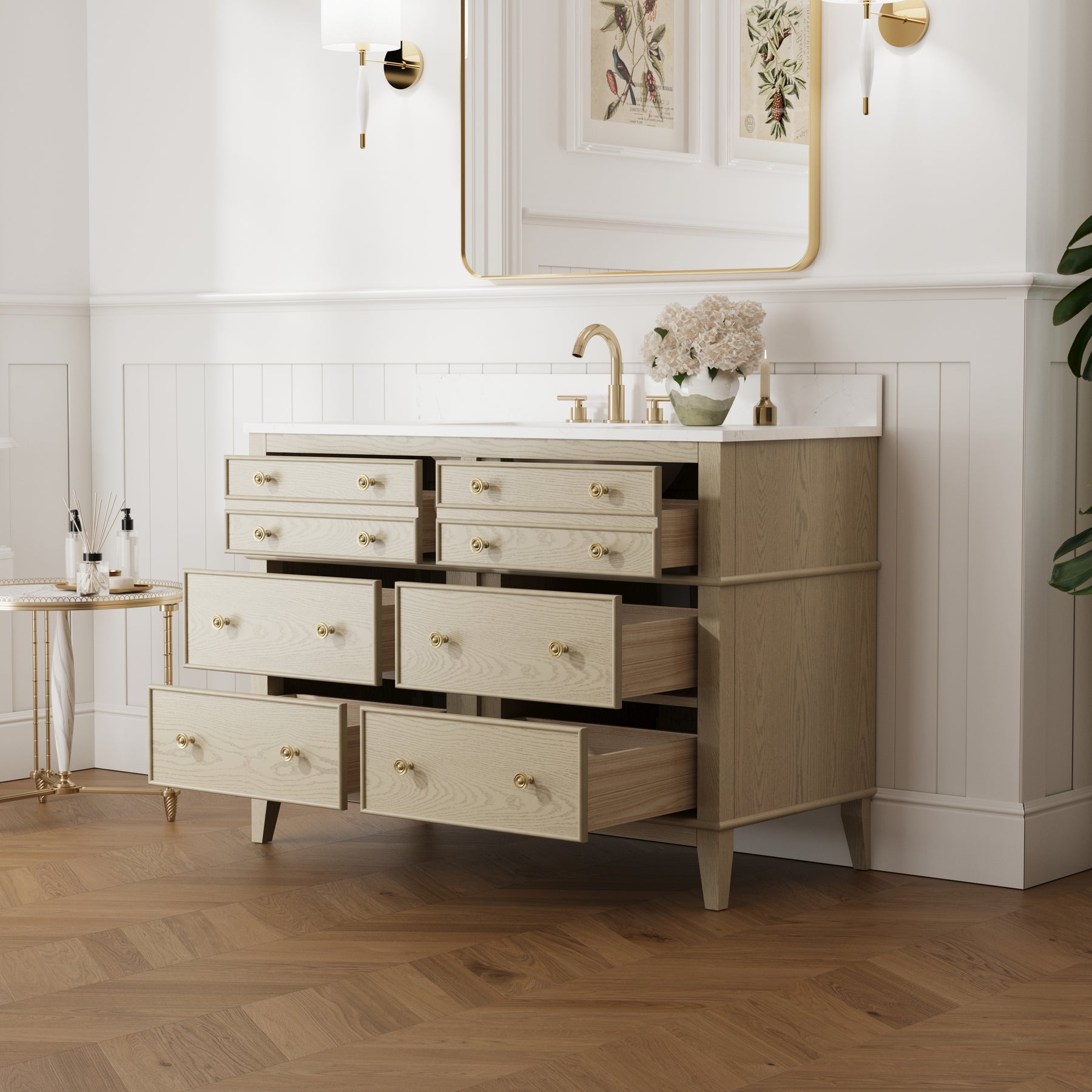 - Unique Craftsmanship: 48" bathroom vanity for bathroom offers a clean, contemporary look while its capacious size offers ample storage space for accessories and other bathroom must-haves. Stylish metal alloy hardware provide additional allure, transforming your décor.