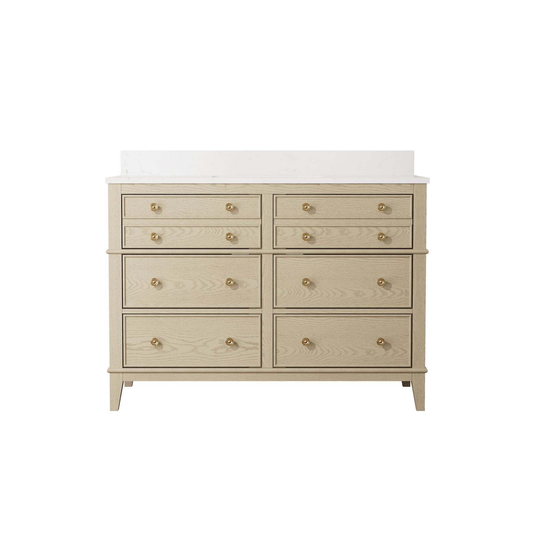 - Premium Vanity Top: Highly resilient, nonporous, scratch-and stain-resistant quartz, or natural Italian Carrera white marble. Comes pre-installed on the storage cabinet.