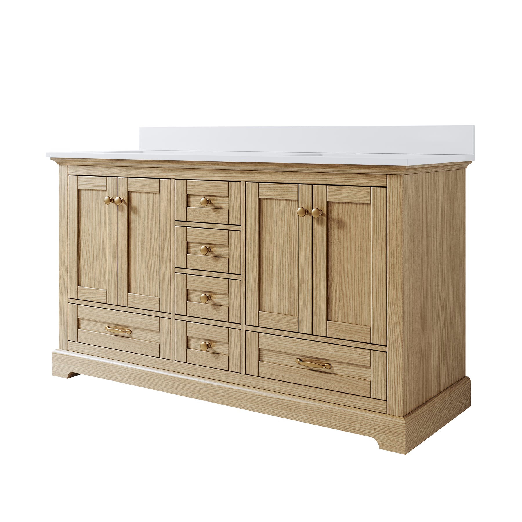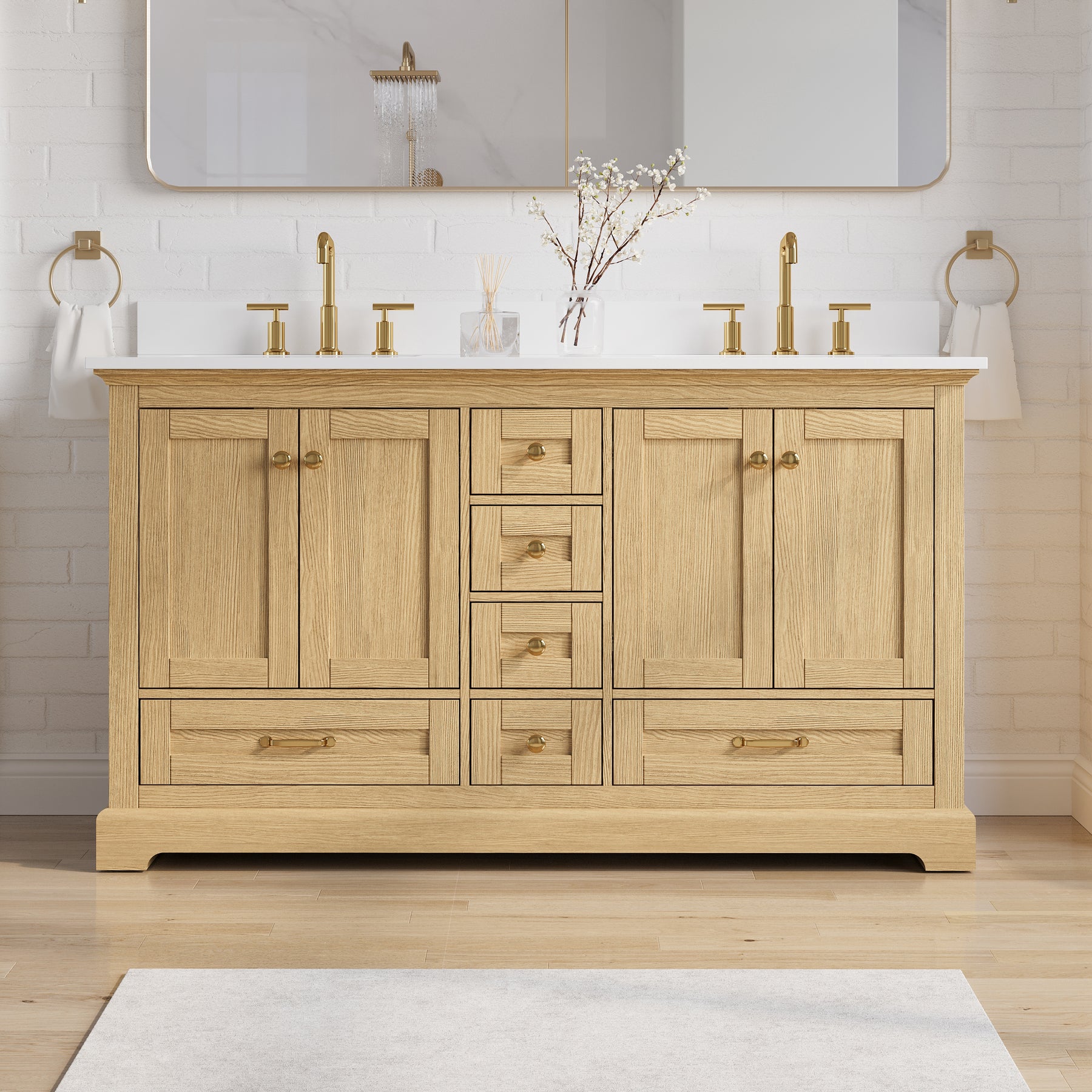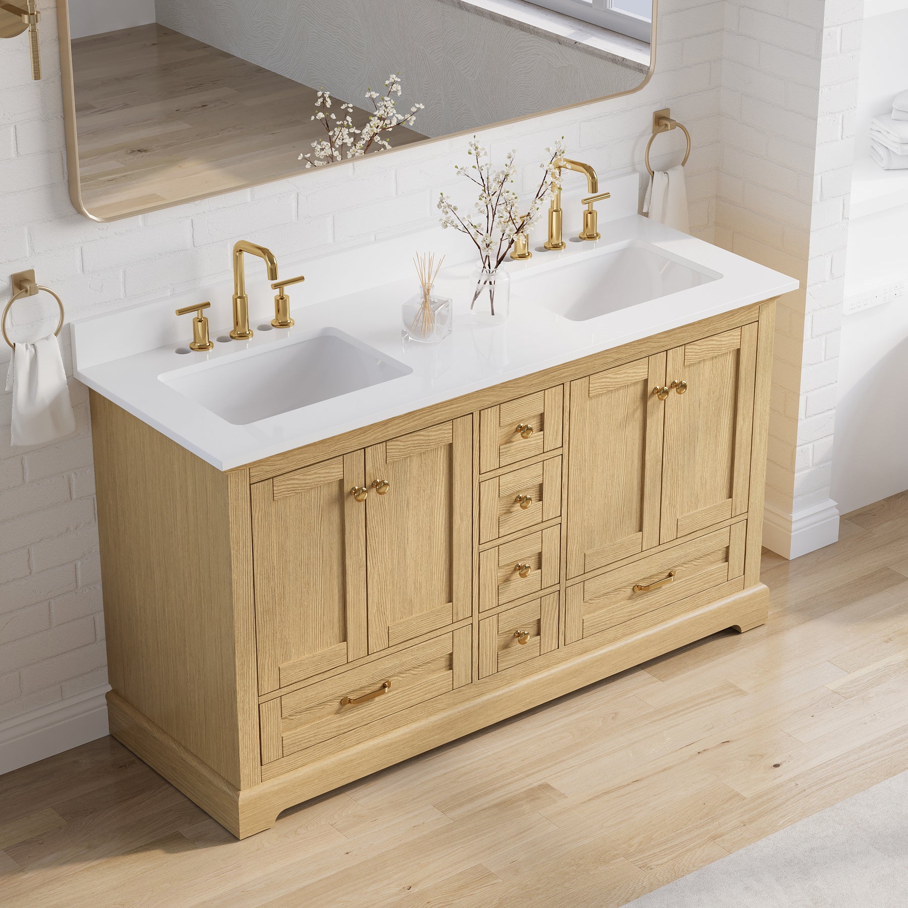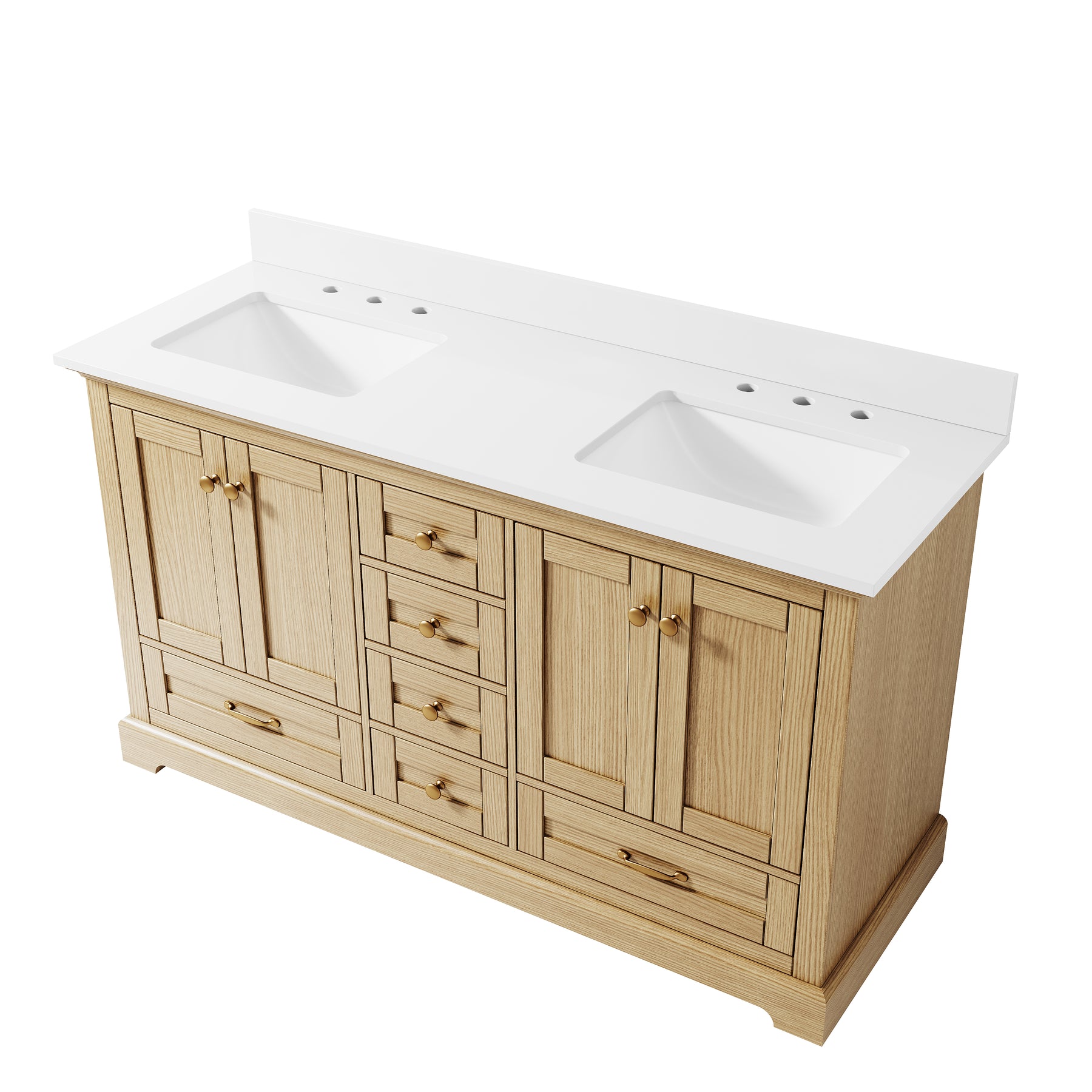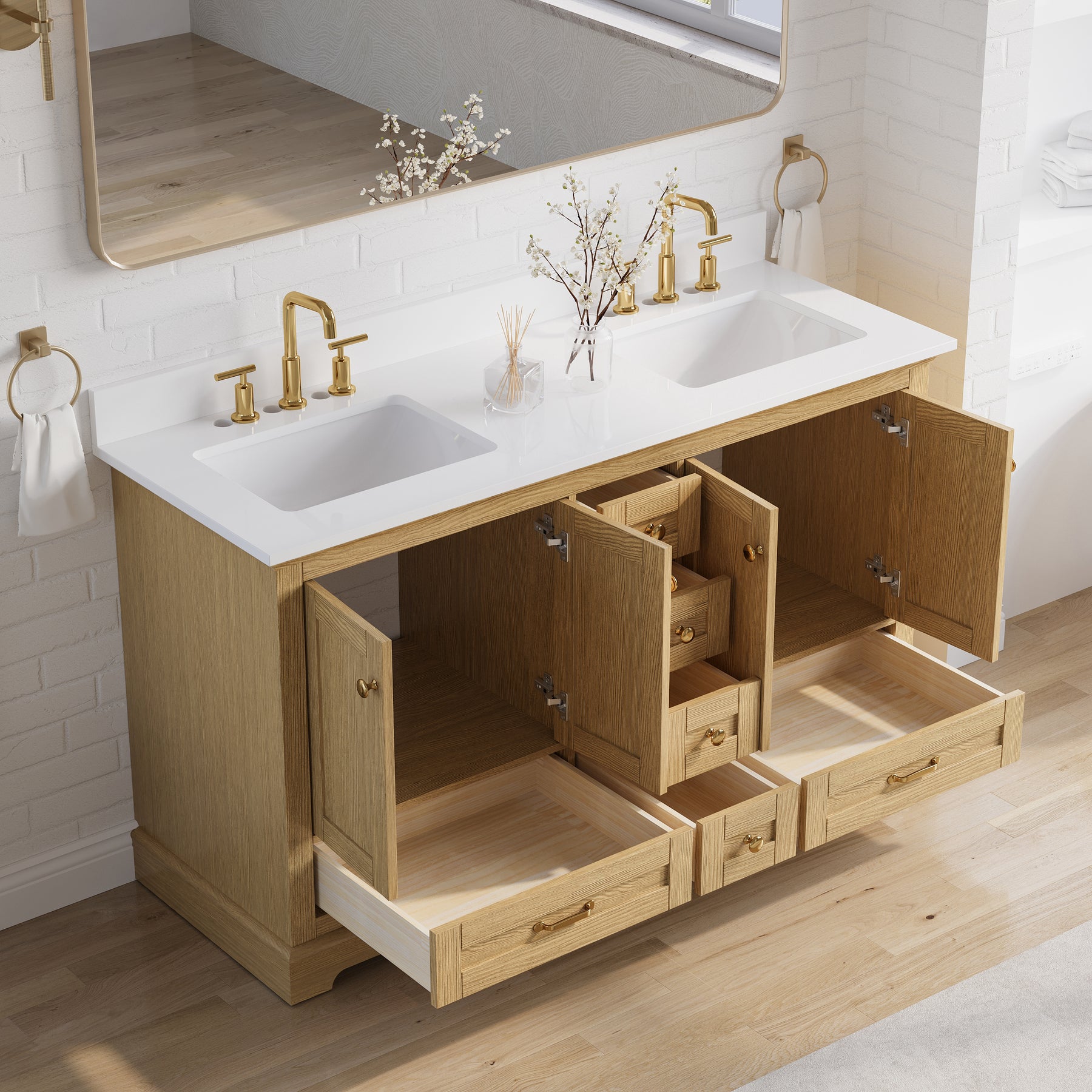 - Included Components: Backsplash, Basins, Drawers, Floor Cabinet, Hardware, Pull Handles