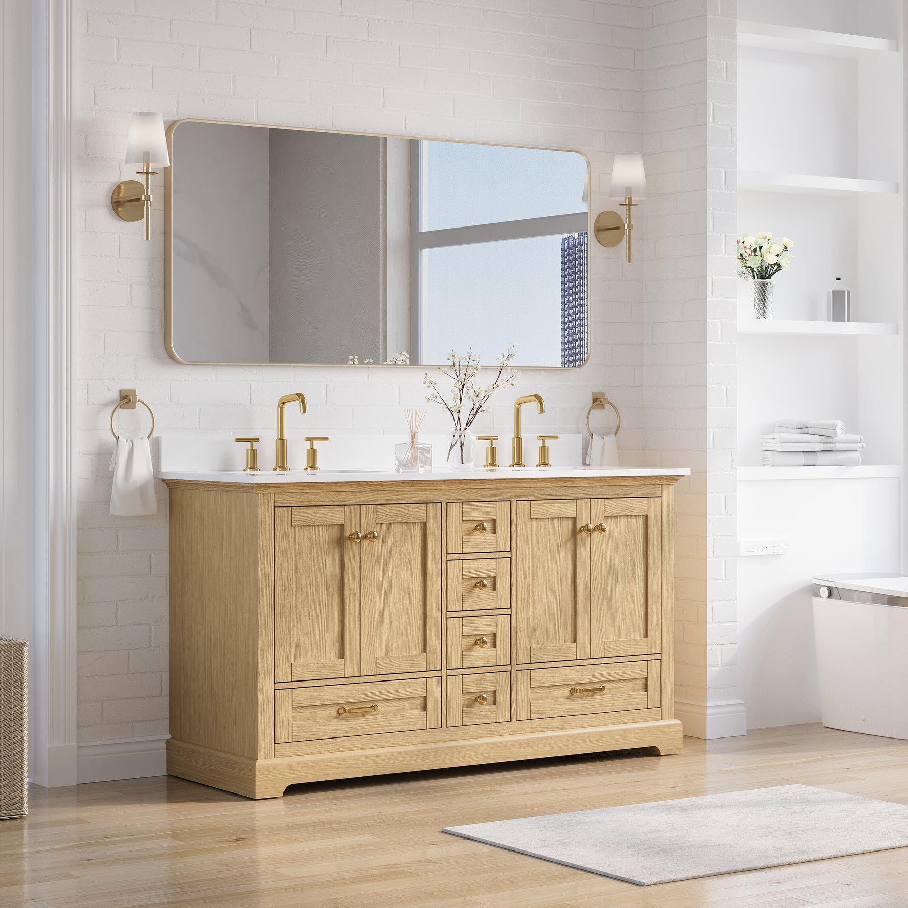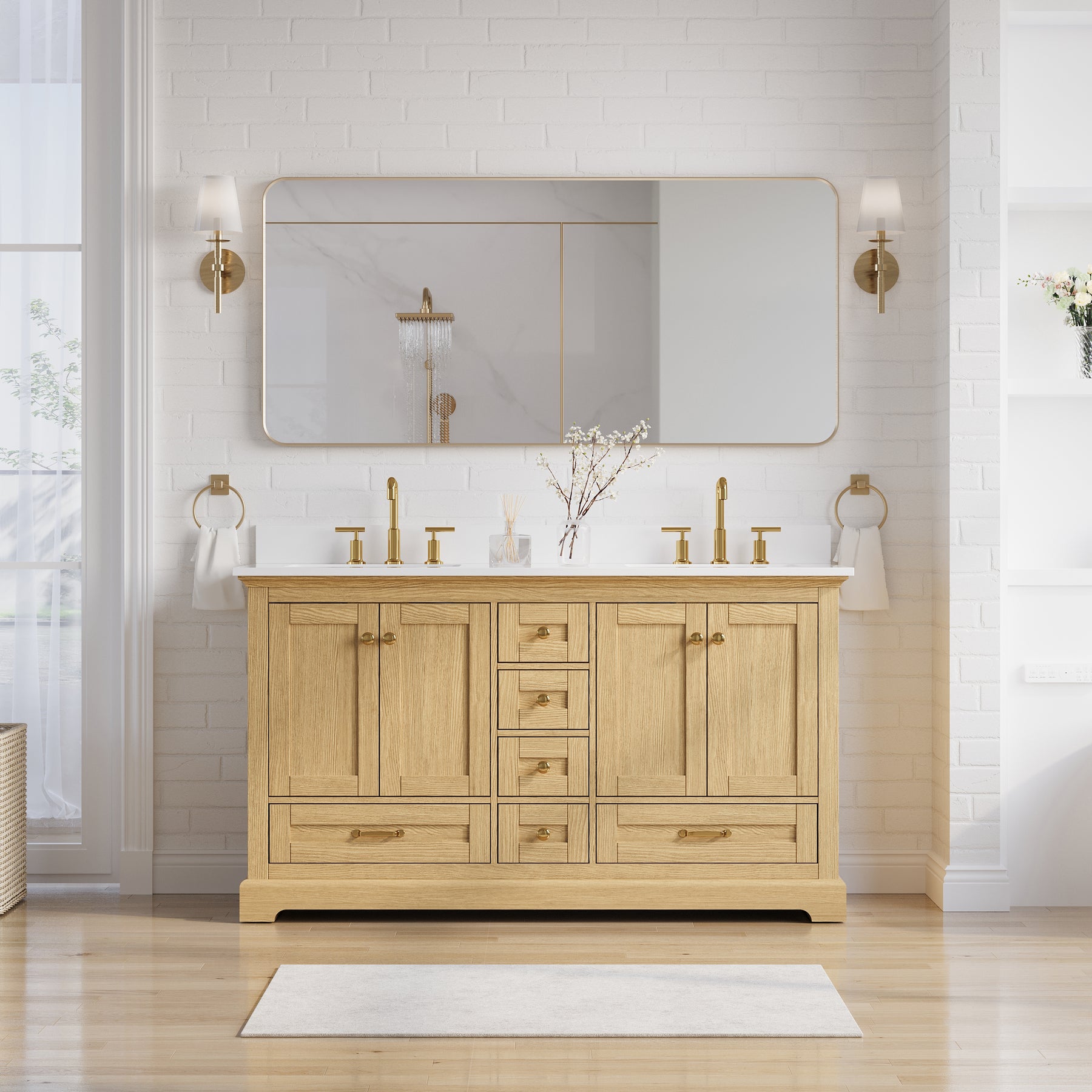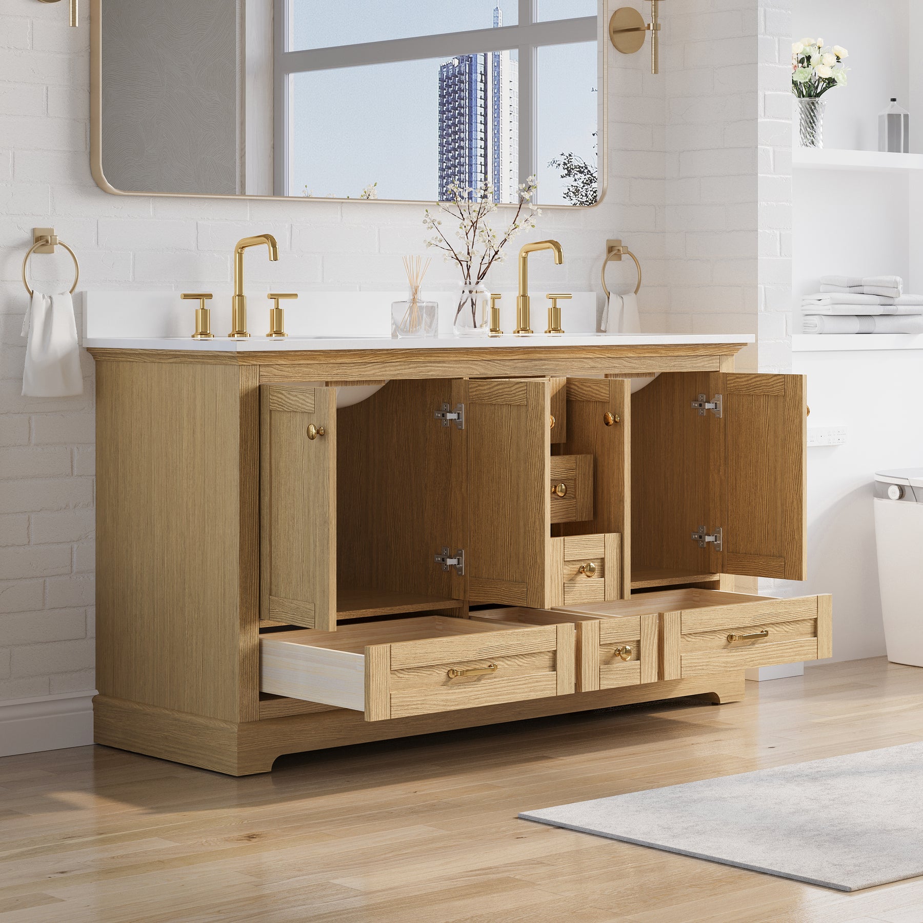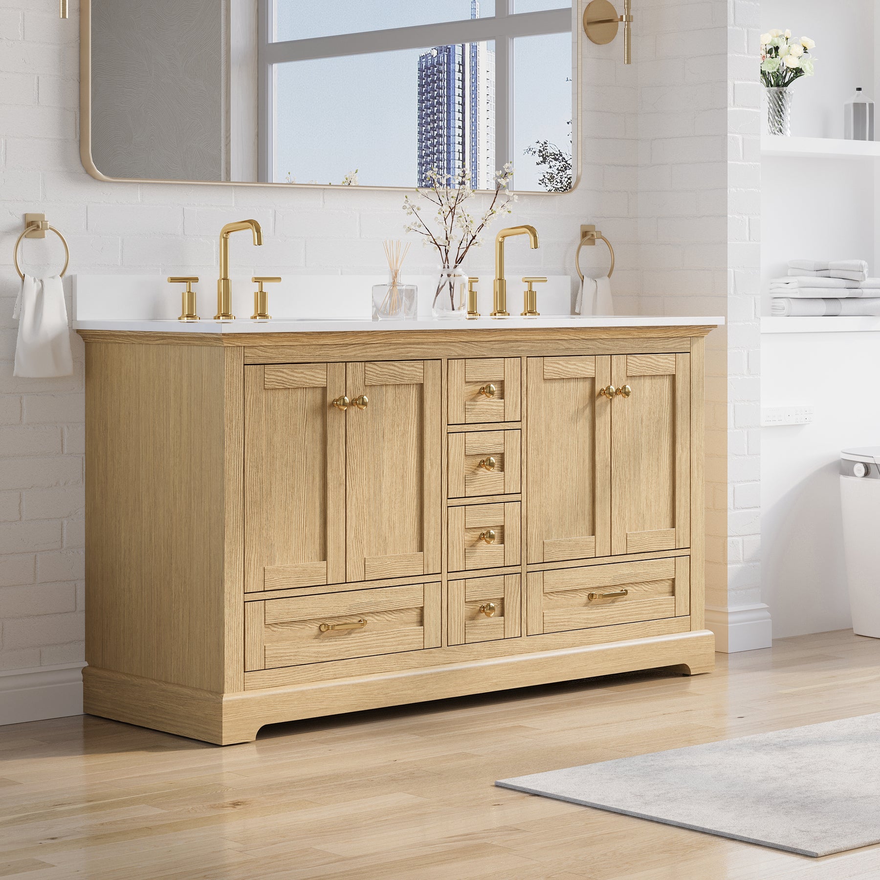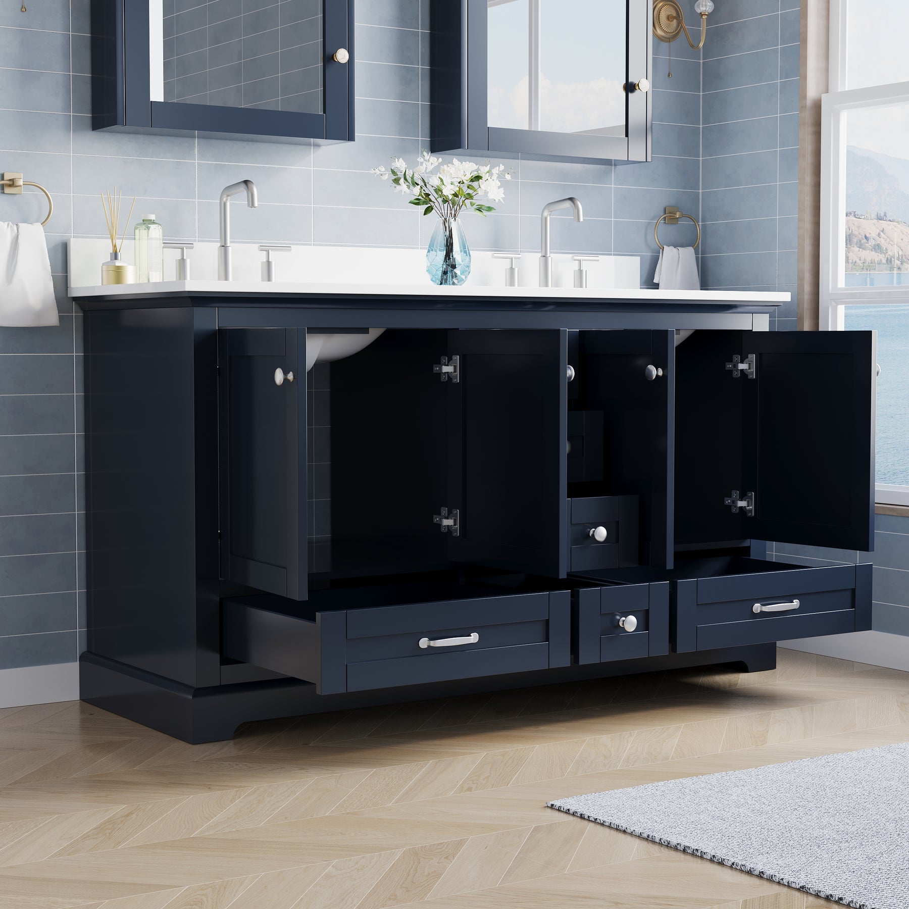 - Included Components: Backsplash, Basins, Drawers, Floor Cabinet, Hardware, Pull Handles