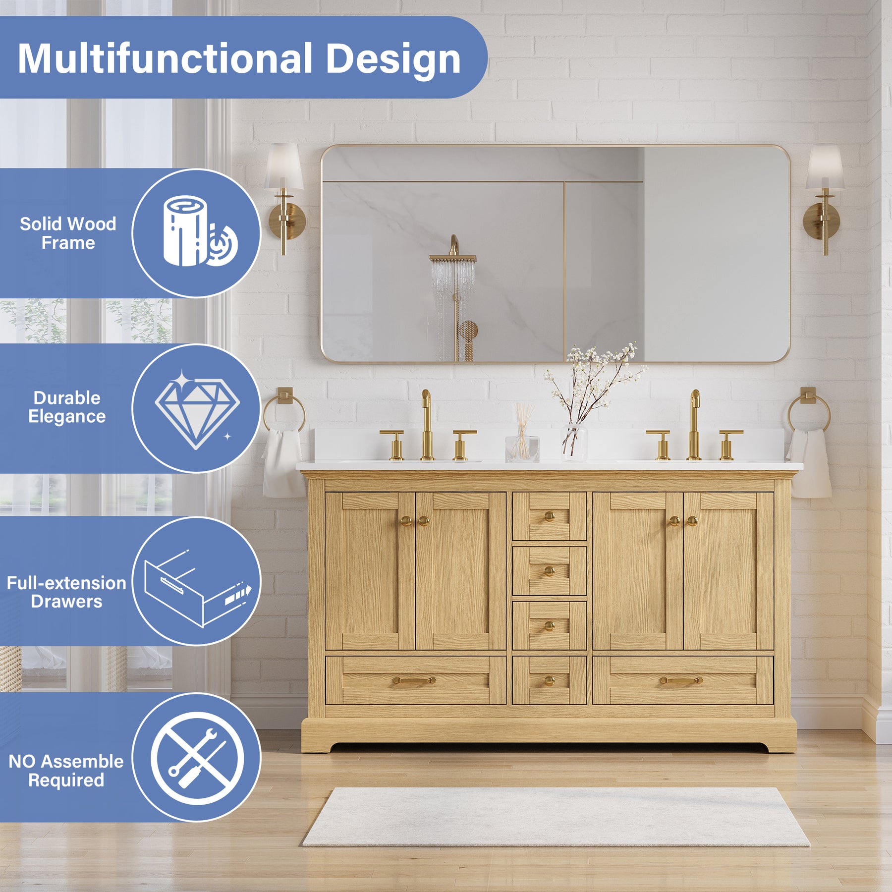 - Premium Solid Wood Construction: This solid wood bathroom vanity is crafted from durable solid wood and plywood for exceptional strength and long-term use.