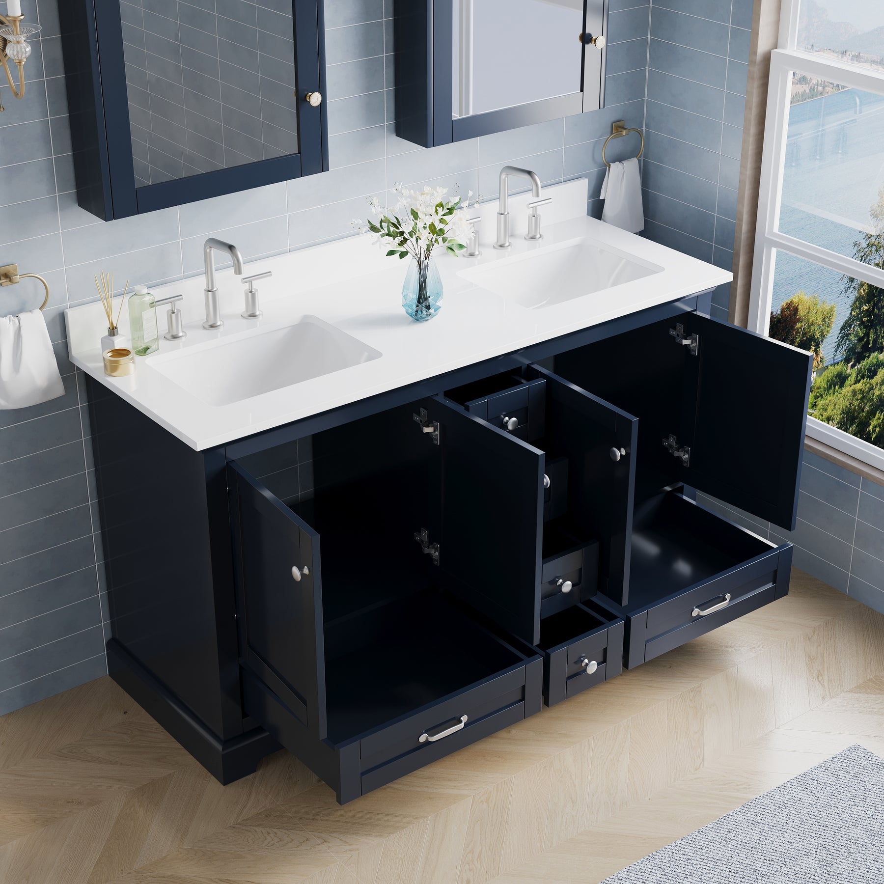 - Click here to view the instruction manual for the 60 inch LVD Bathroom Vanity.