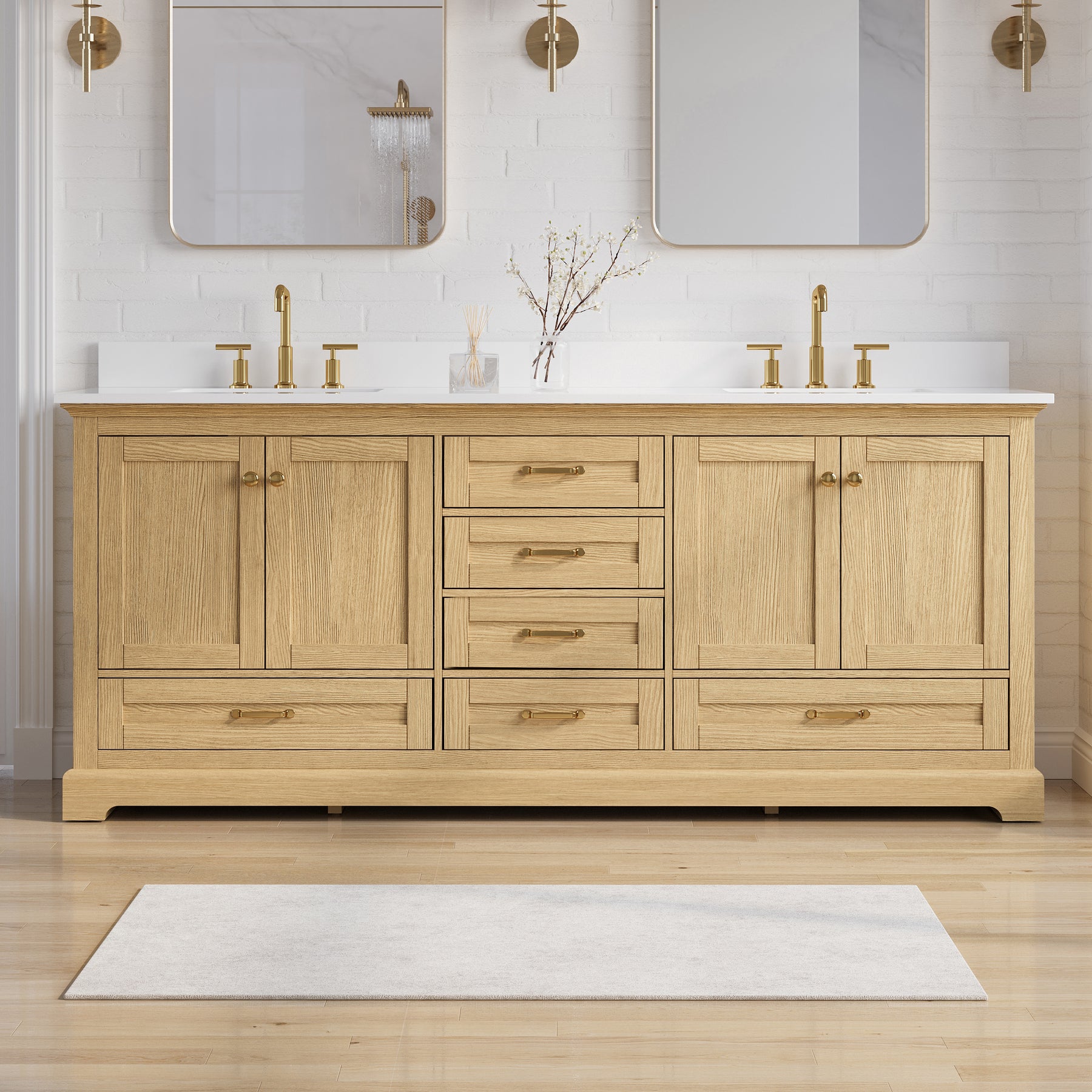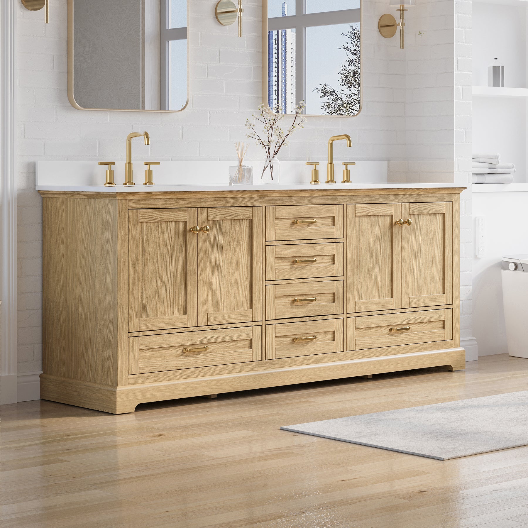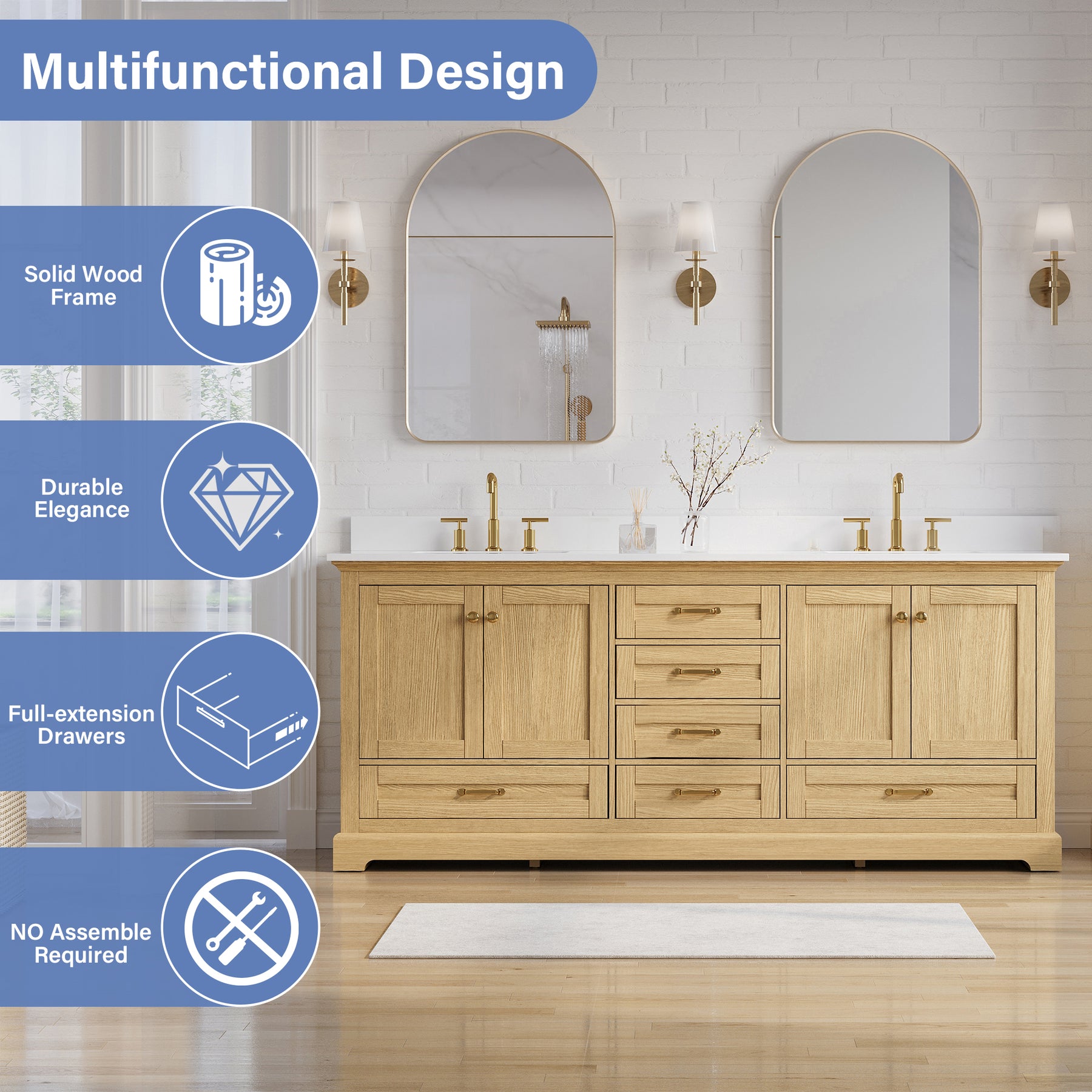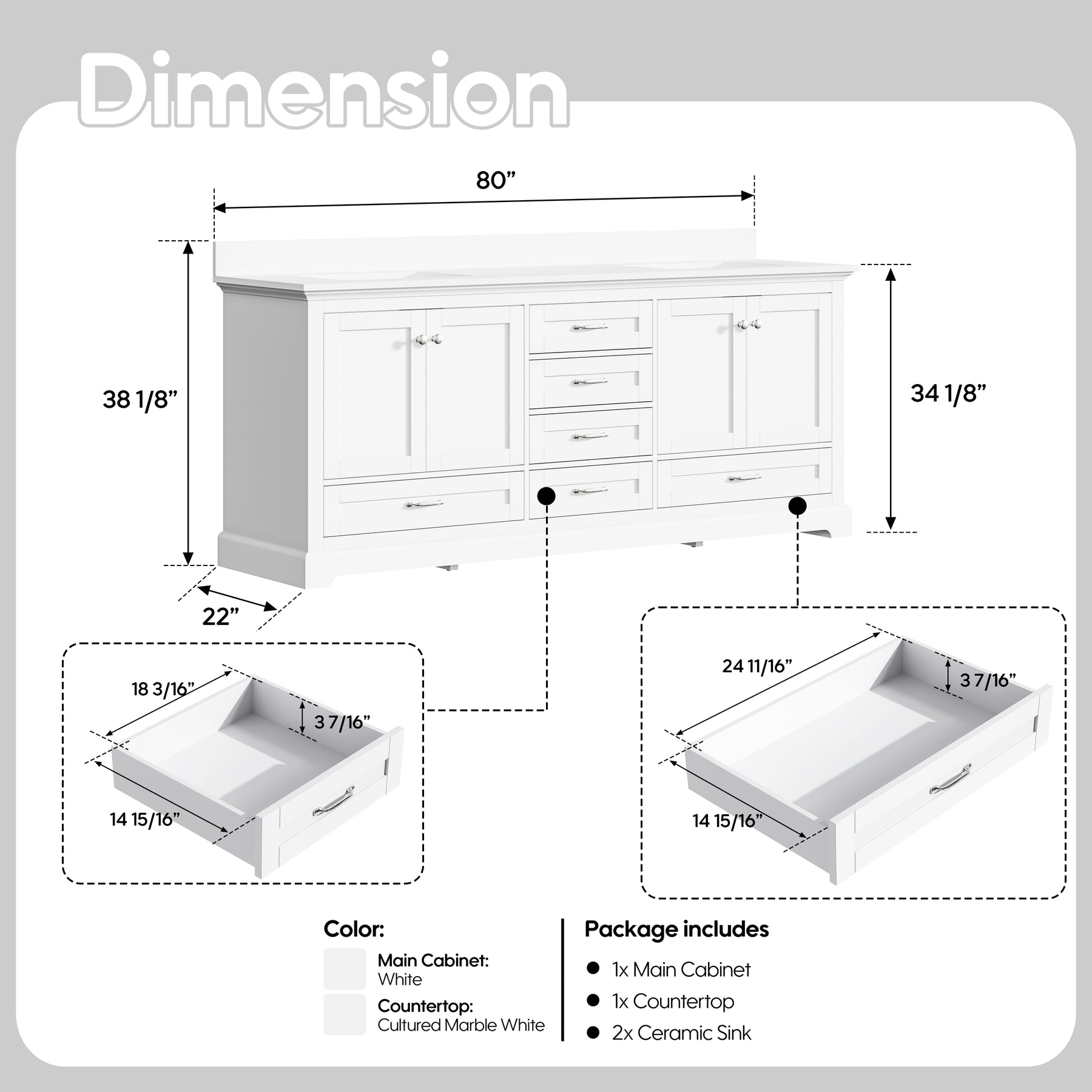 - Ample Organized Storage: Designed as a spacious double sink bathroom vanity, it features 4 cabinet doors and 6 soft-closing drawers, providing exceptional storage for towels, toiletries, and daily essentials.