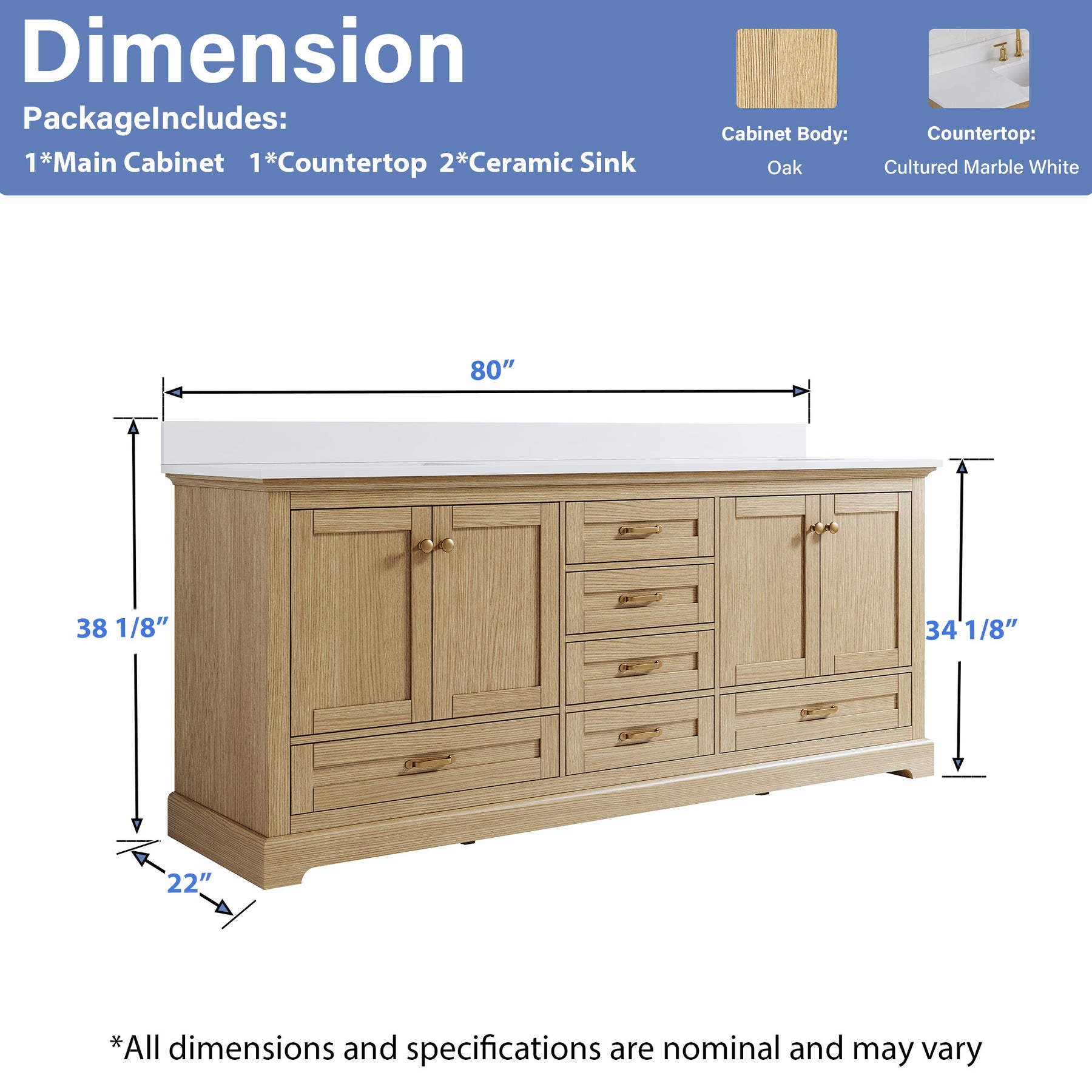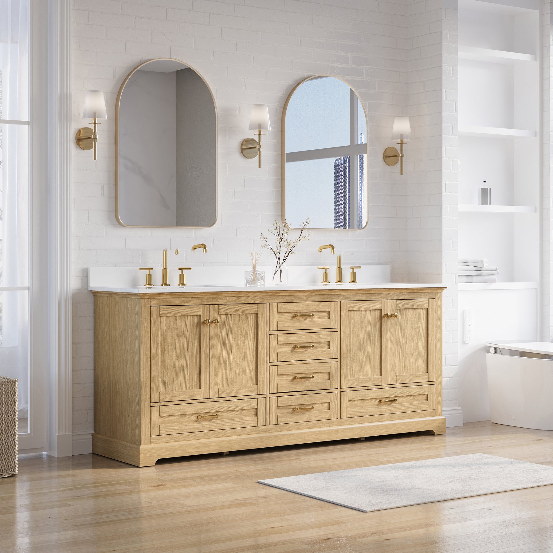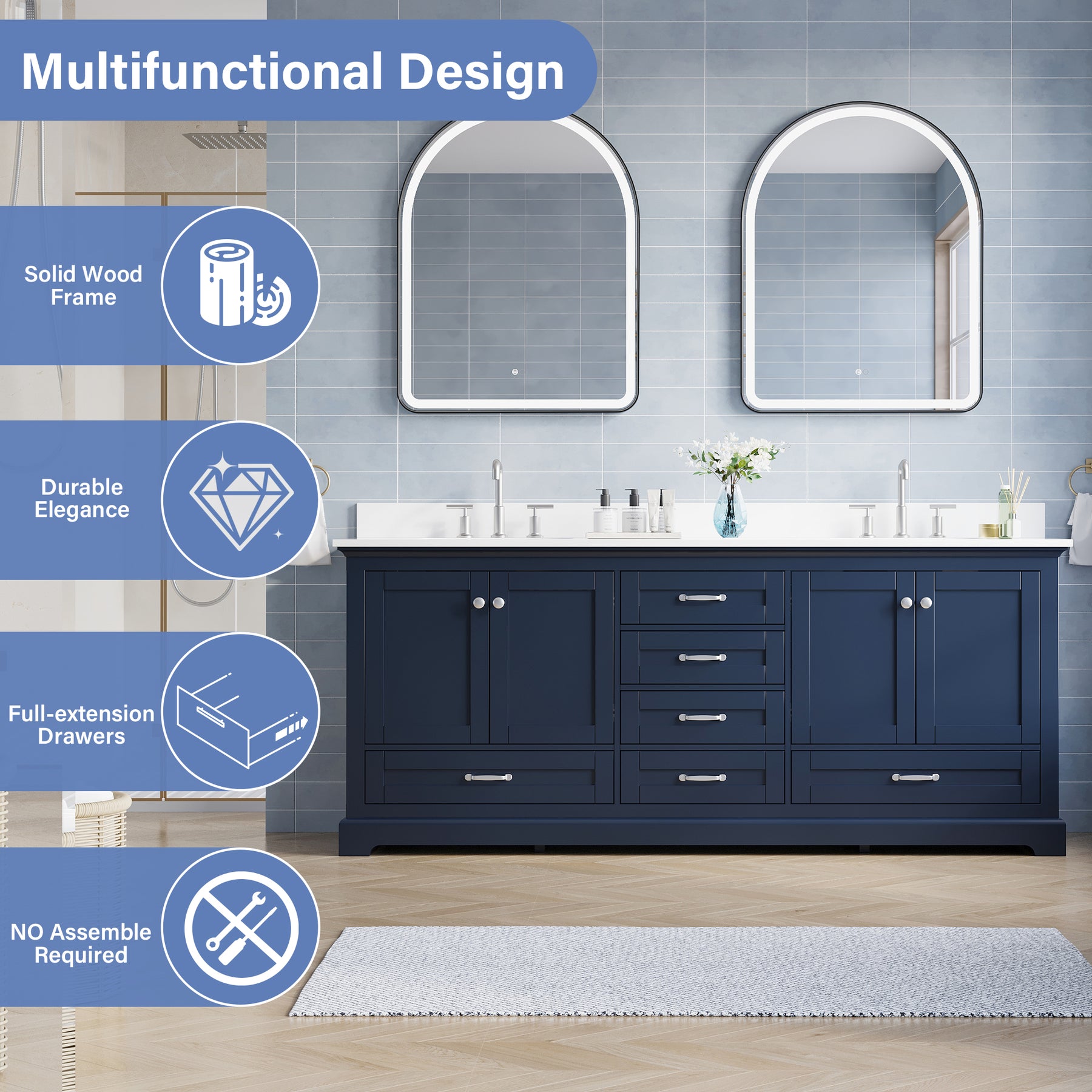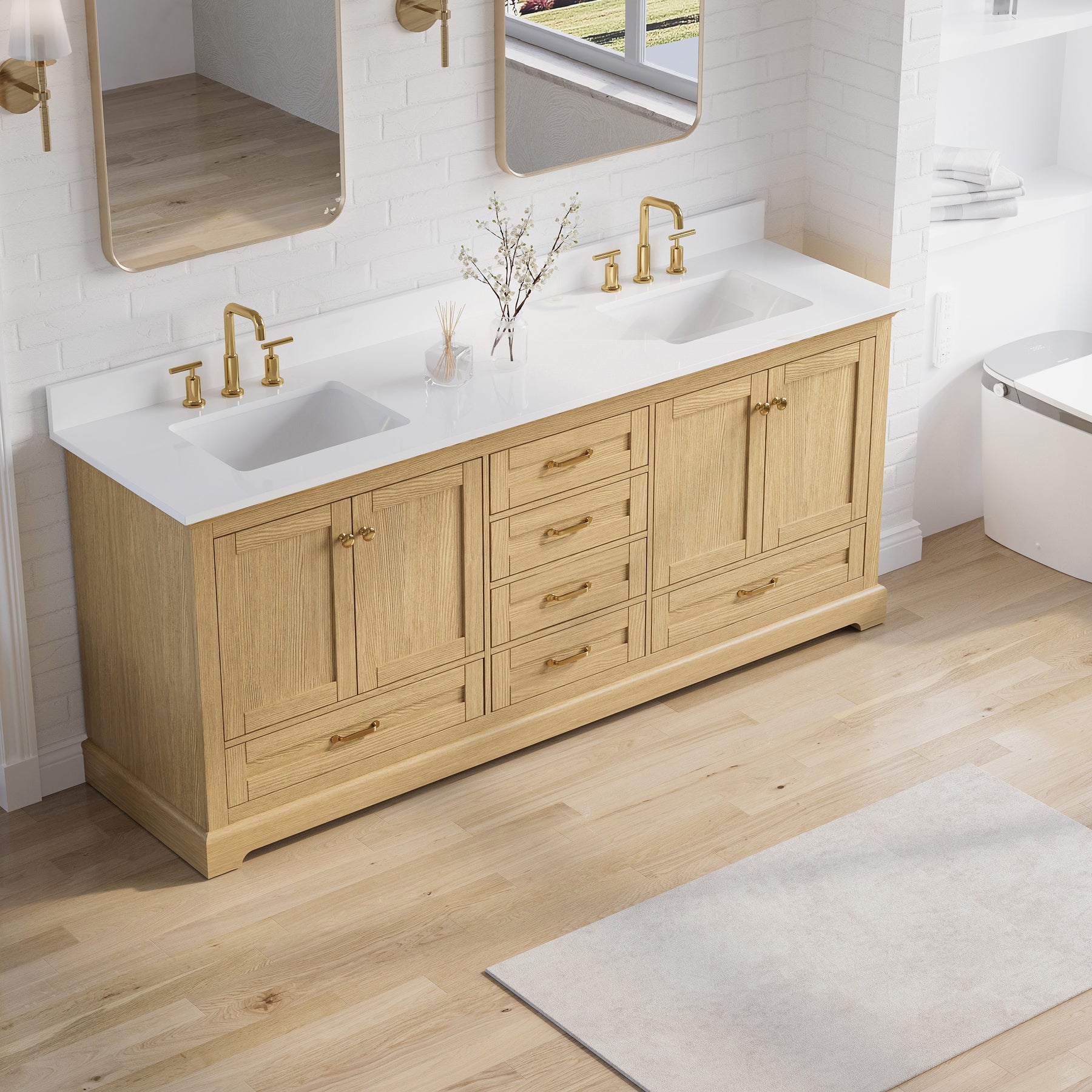 - Ample Organized Storage: Designed as a spacious double sink bathroom vanity, it features 4 cabinet doors and 6 soft-closing drawers, providing exceptional storage for towels, toiletries, and daily essentials.