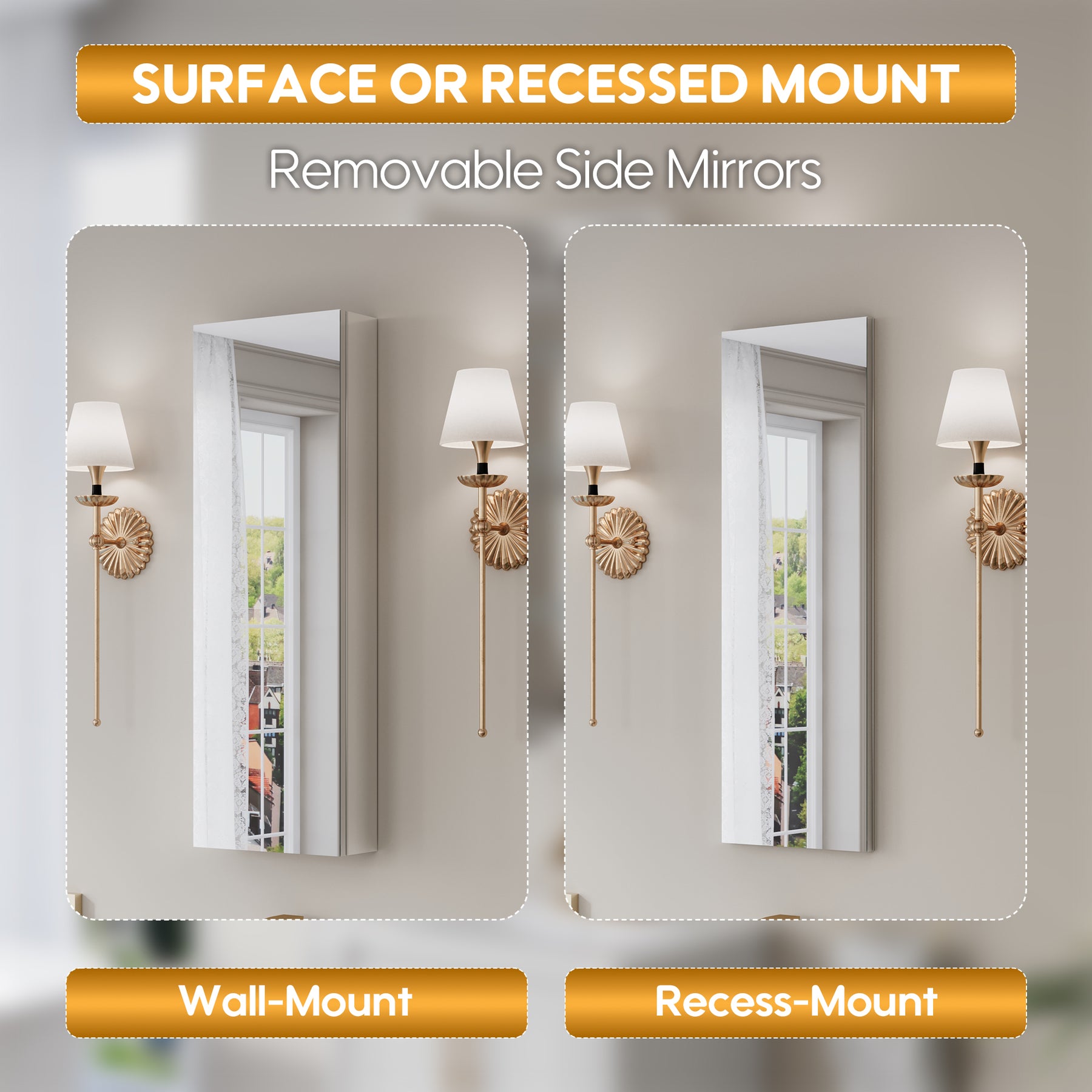 Flexible Installation Options: Suitable for both wall-mounted and recessed setups, with a surface mount kit included for added versatility.