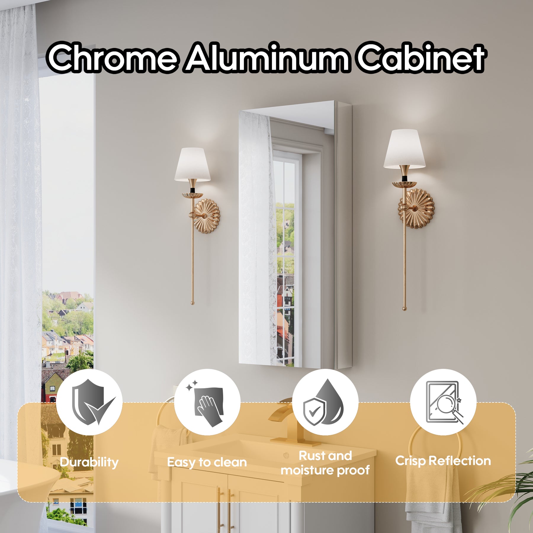 16 in. ×36 in. Copper-Free Tri-Views Mirror Medicine Cabinet, Recessed/Surface Mount and Left Swing Door