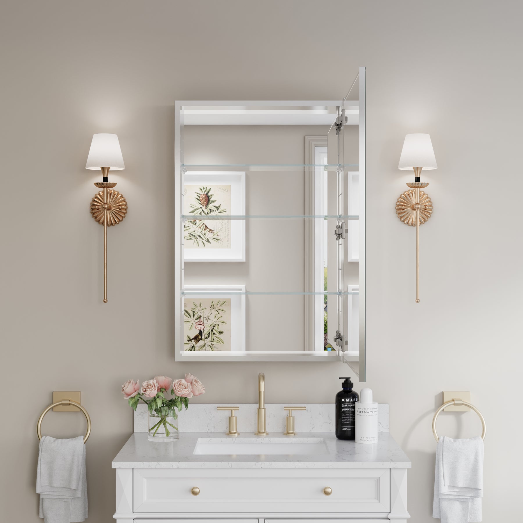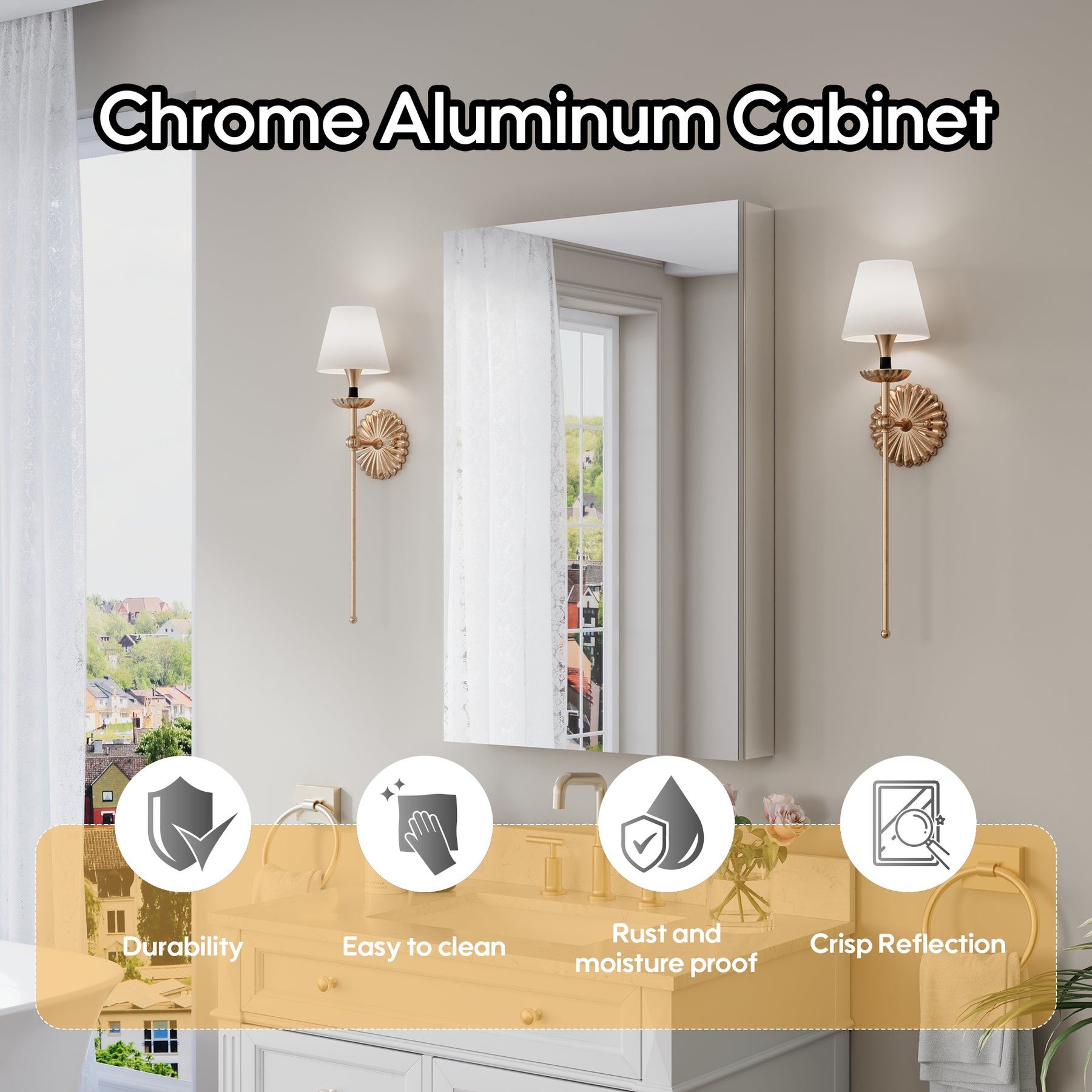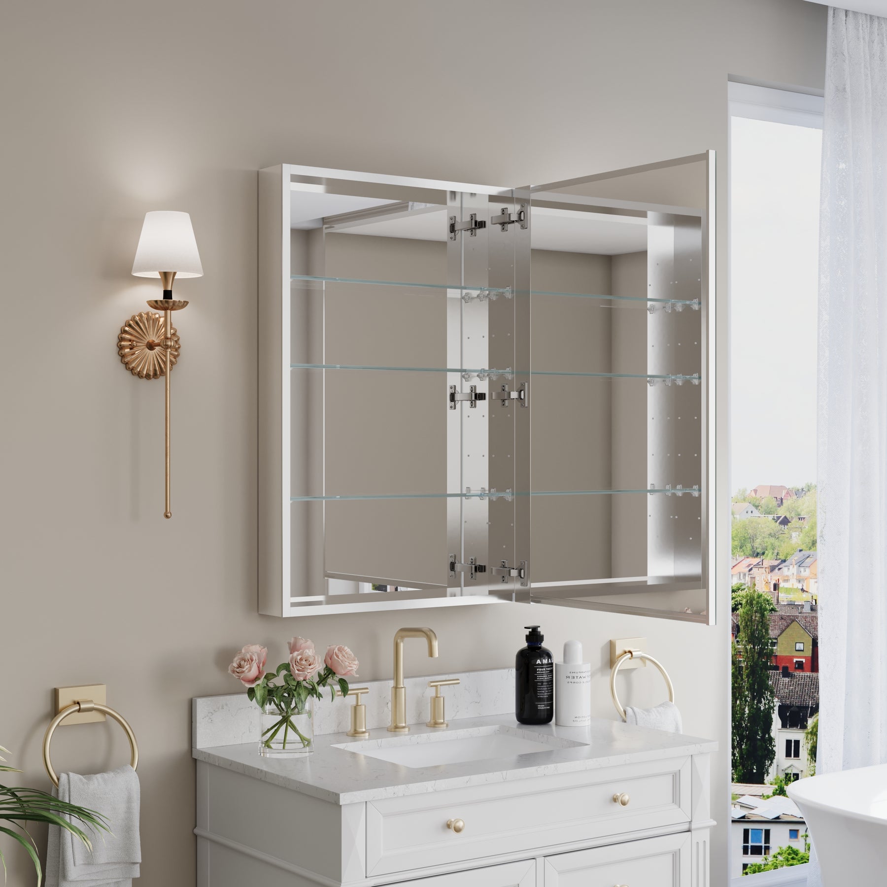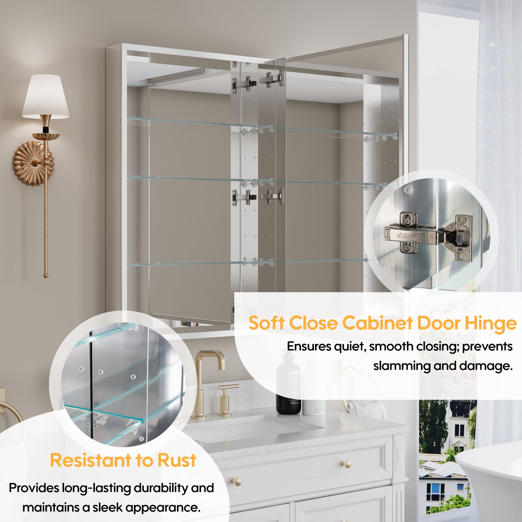 - Reversible Door Design: Copper-free tri-view mirror cabinet with 180° reversible installation, allowing the door to open from either the left or right side for flexible bathroom layouts.