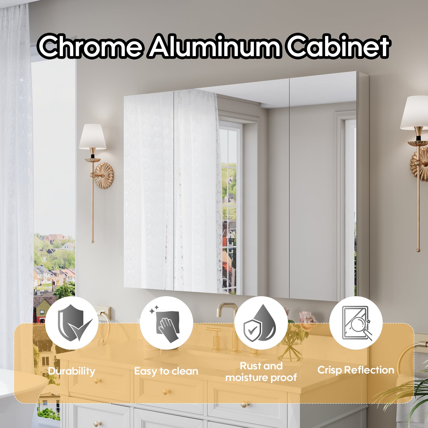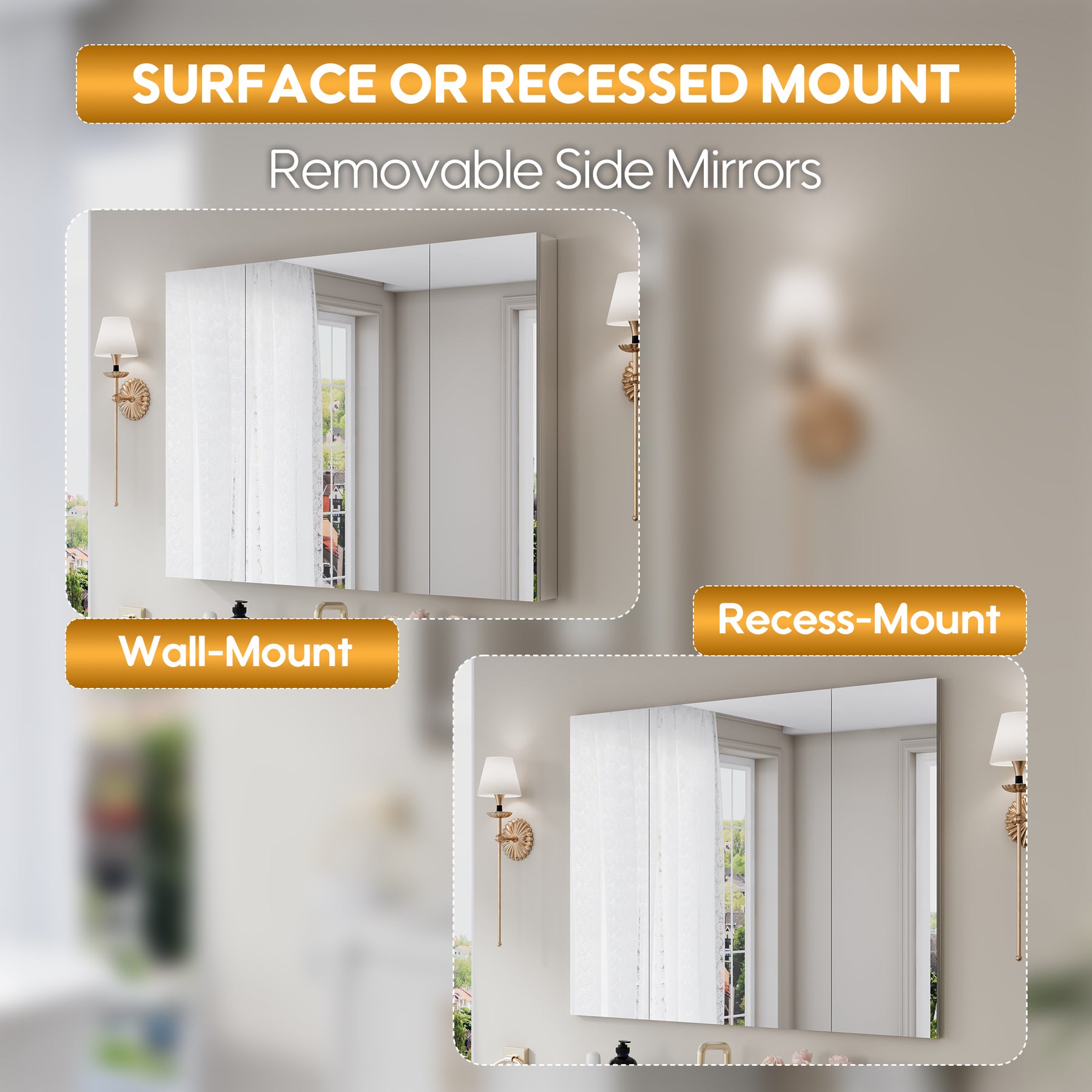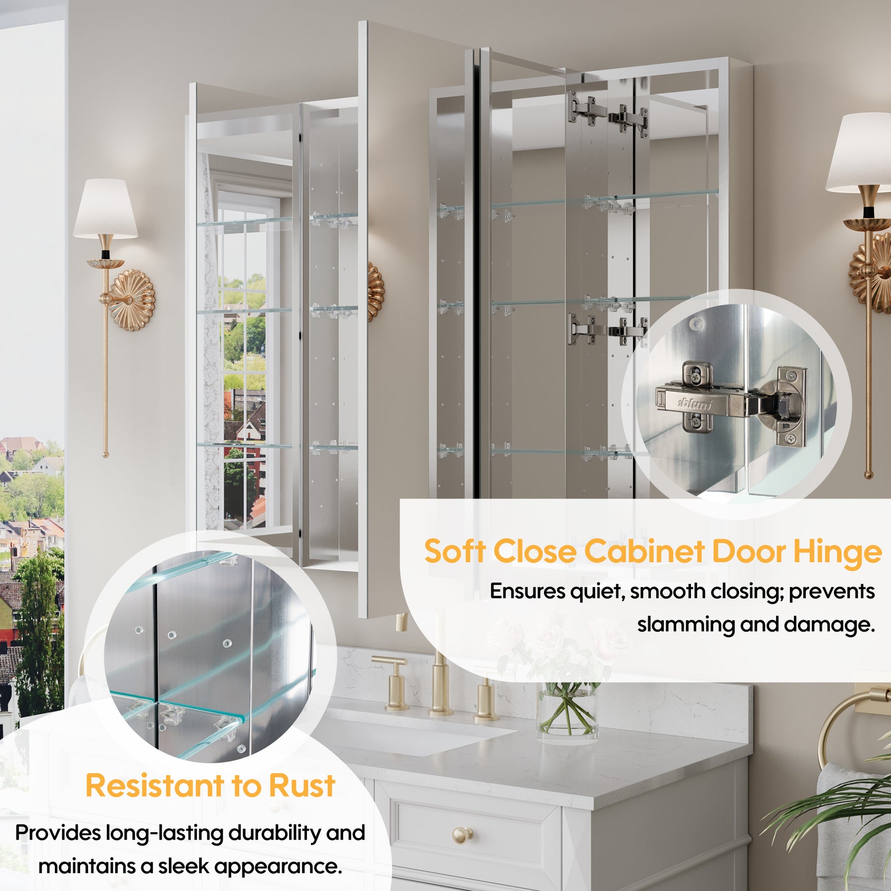 - Reversible Door Design: Copper-free tri-view mirror cabinet with 180° reversible installation, allowing the door to open from either the left or right side for flexible bathroom layouts.