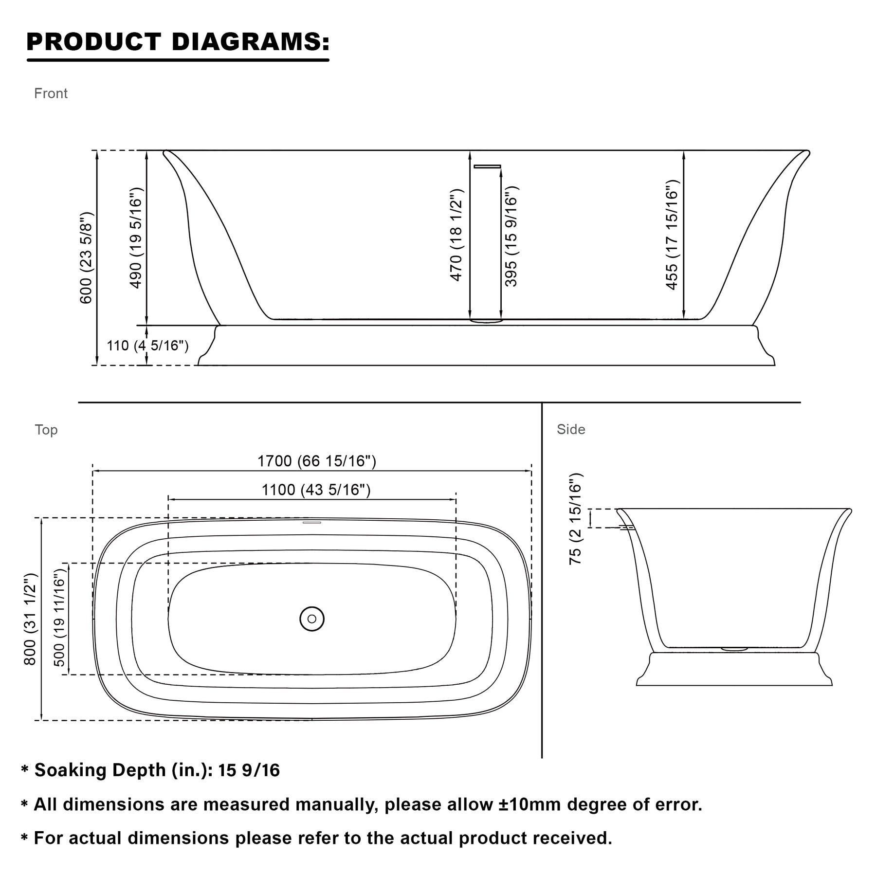 - Ergonomic Design: Designed with a curved back for optimal support and relaxation, the Acrylic bathtub¡¯s perfect soaking depth ensures a full-body immersion for a truly soothing experience.