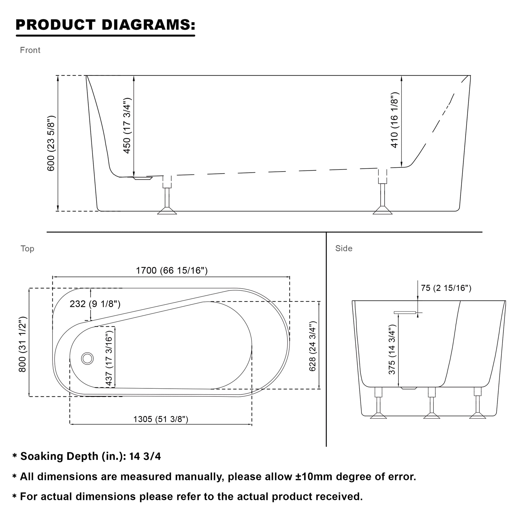 - Ergonomic Design: Designed with a curved back for optimal support and relaxation, the Acrylic bathtub¡¯s perfect soaking depth ensures a full-body immersion for a truly soothing experience.