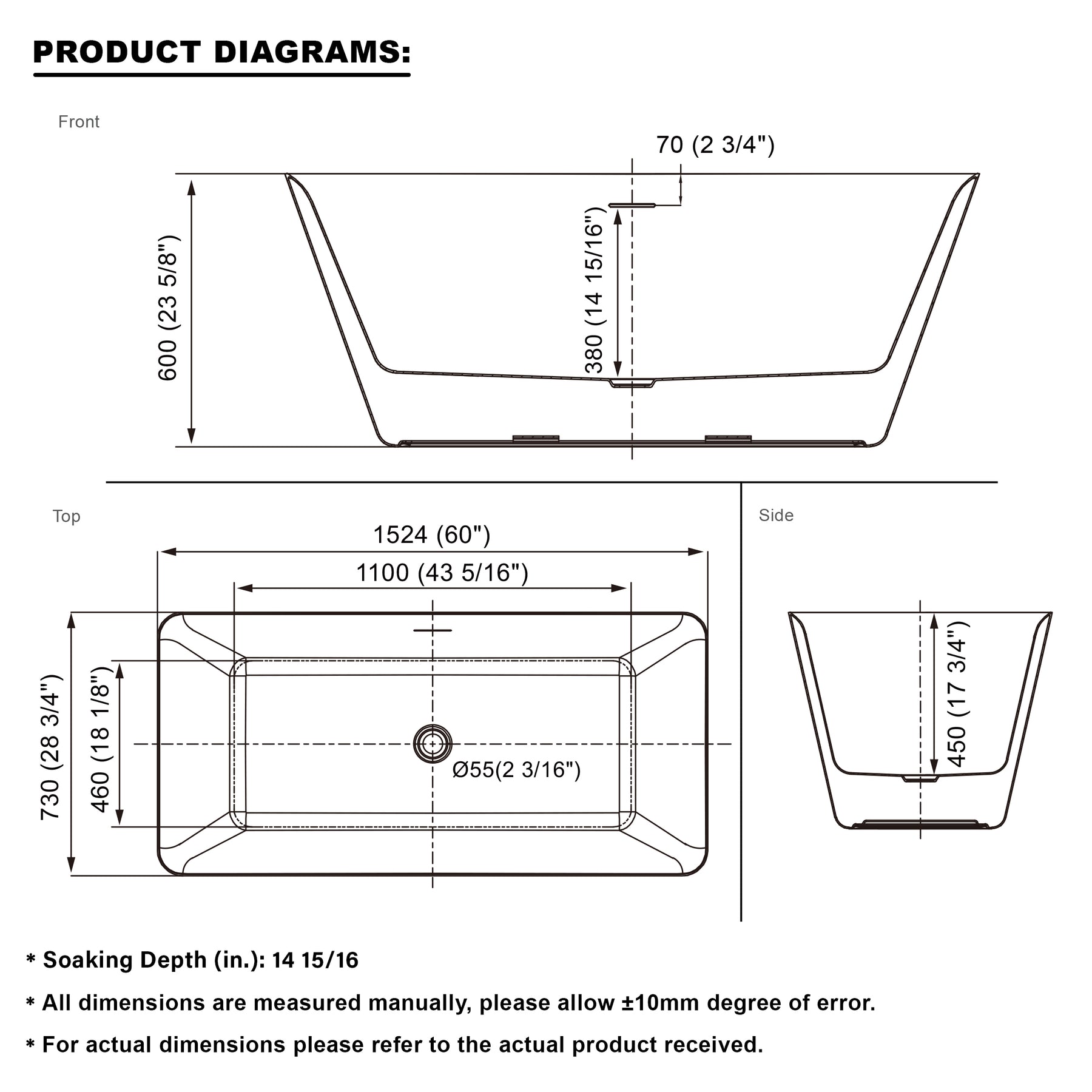 - Premium Quality Construction: The freestanding bathtub is made out of 100% pure virgin acrylic, this bathtub offers exceptional durability, and resistance to wear and discoloration over time.