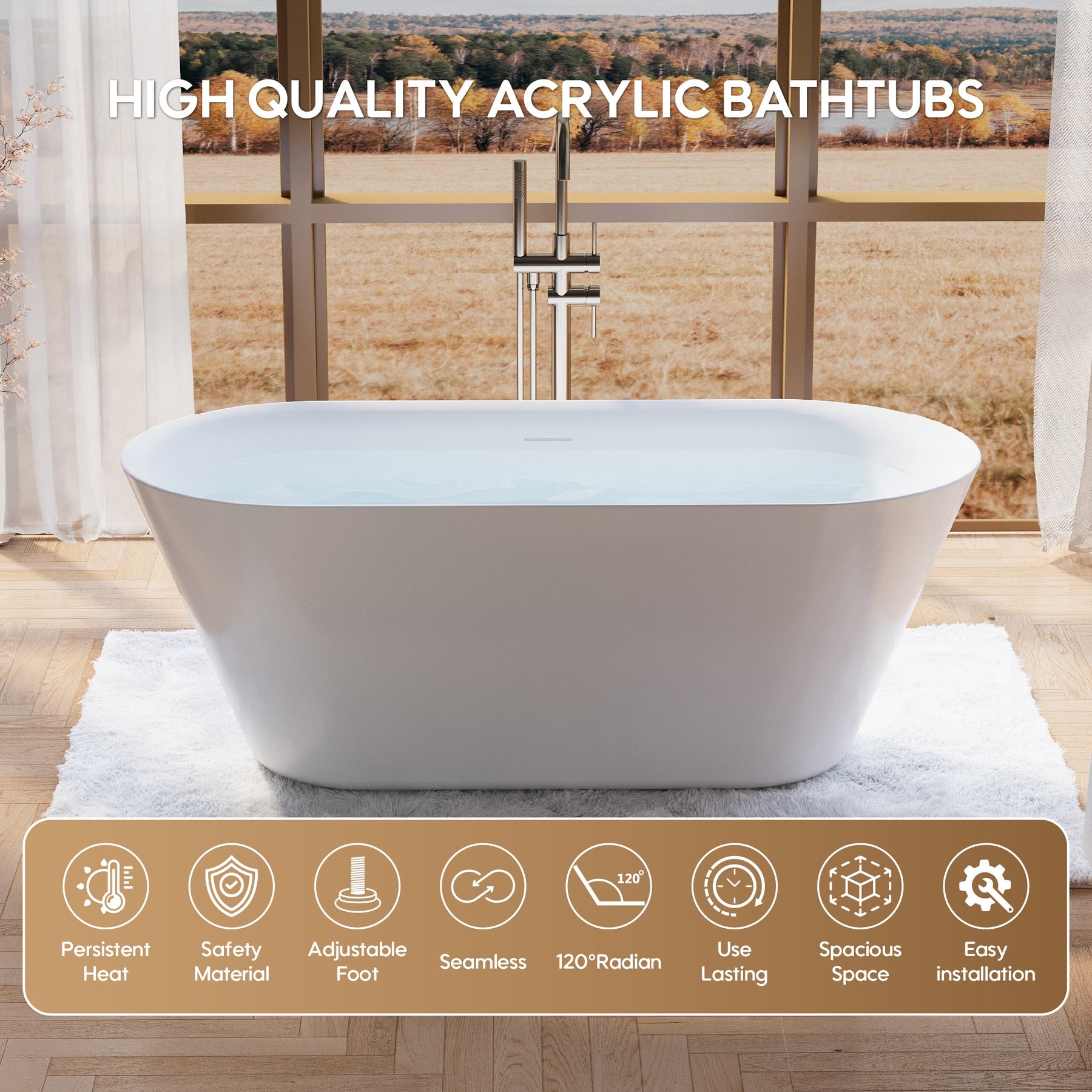 • Superior Heat Retention: Designed with a multi-layer insulated structure, this freestanding bathroom bathtub provides maximum insulation to maintain water temperature for extended periods.