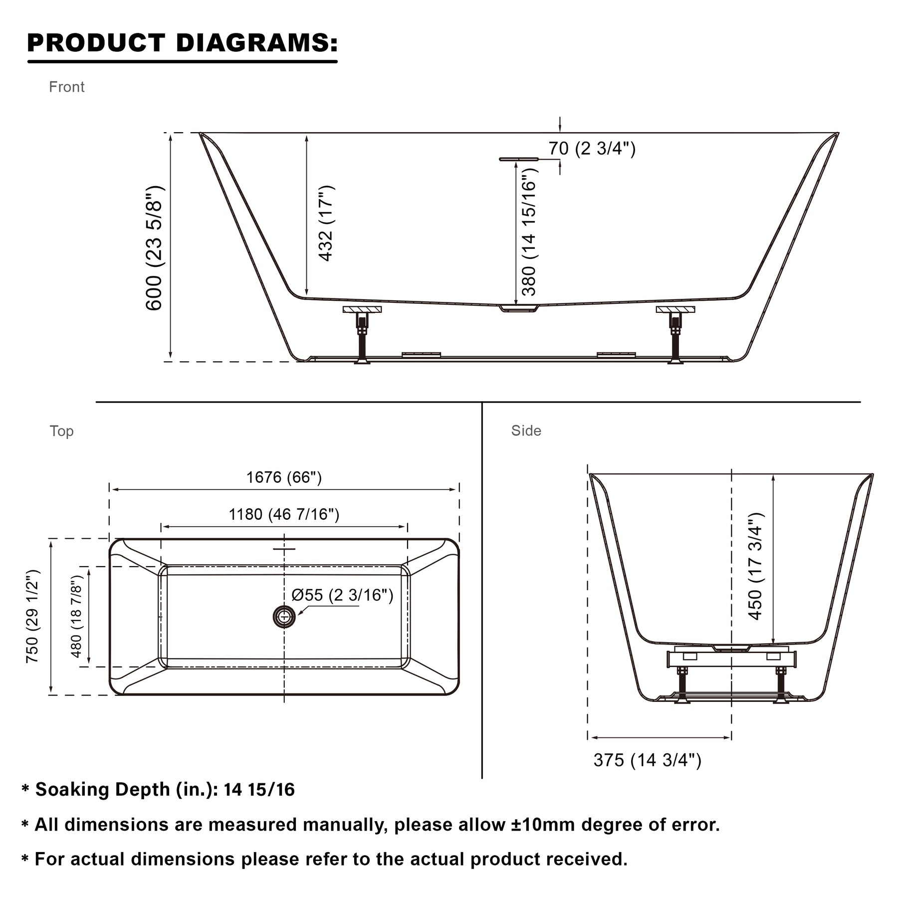 Elegant Glossy White Finish: The bathtub features a high-gloss white finish, adding a clean and modern look to your bathroom.