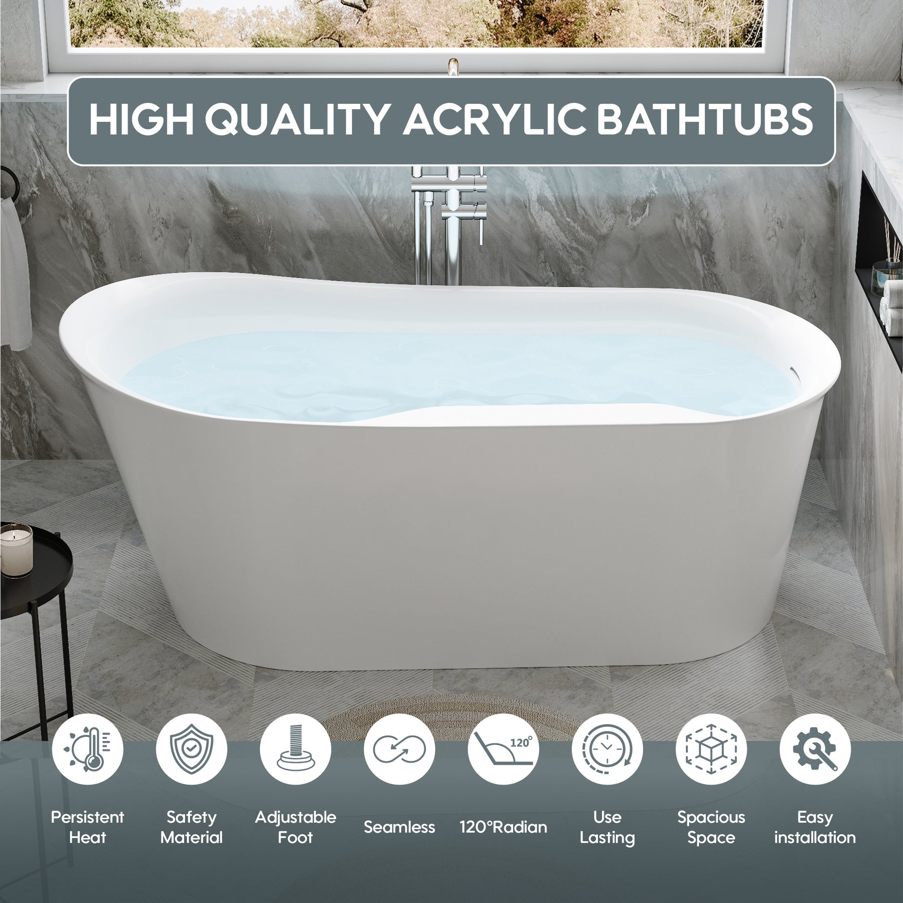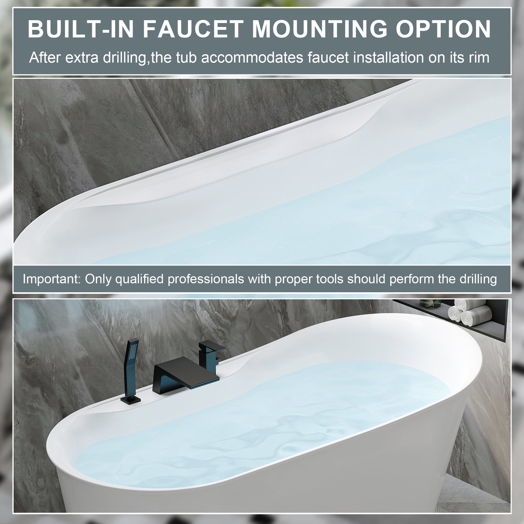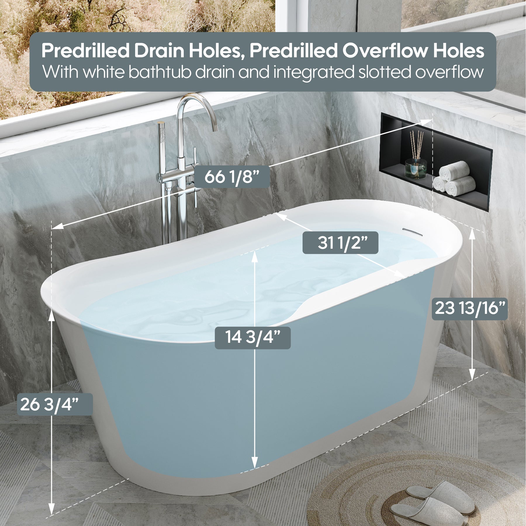 - Integrated Slotted Overflow and Matching Drain: Includes a built-in slotted overflow and a white bathtub drain for a clean, seamless design.